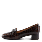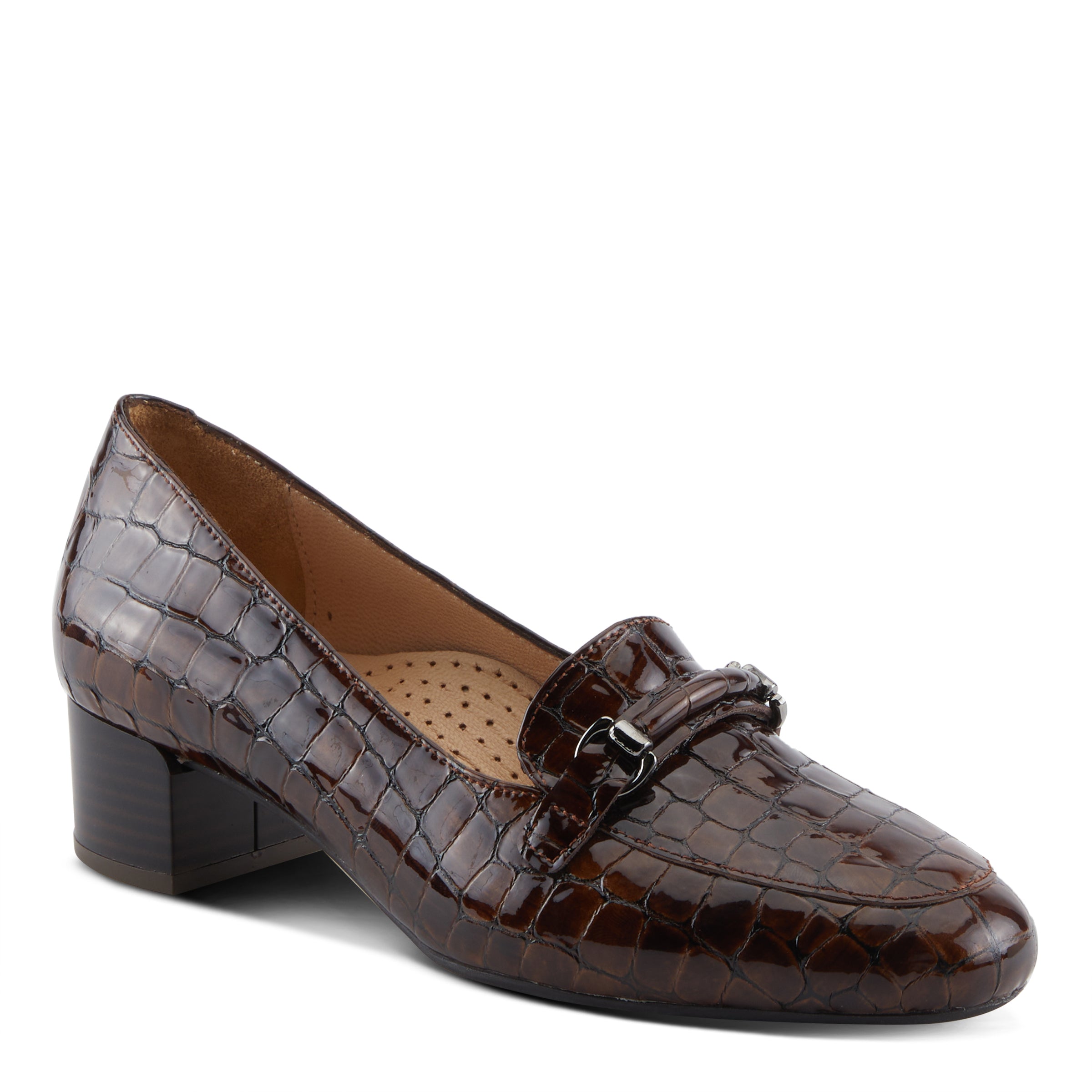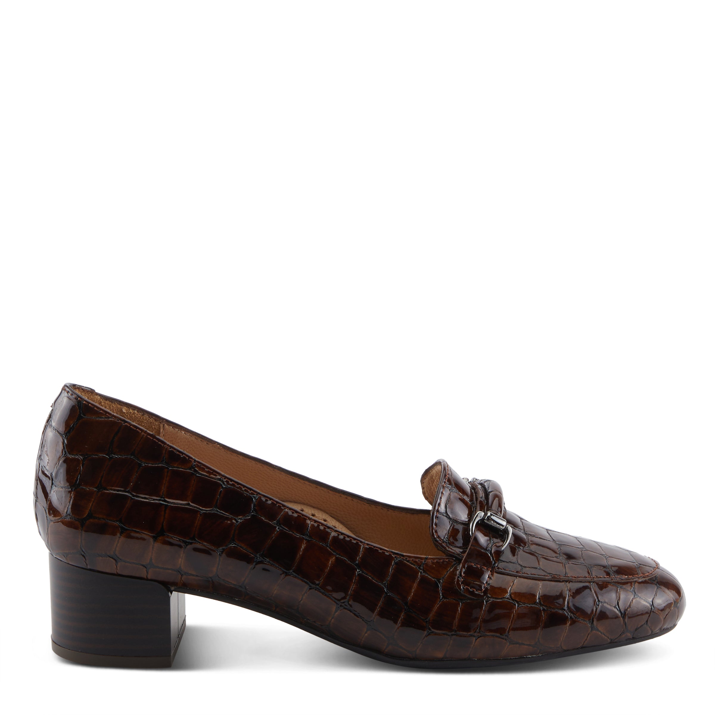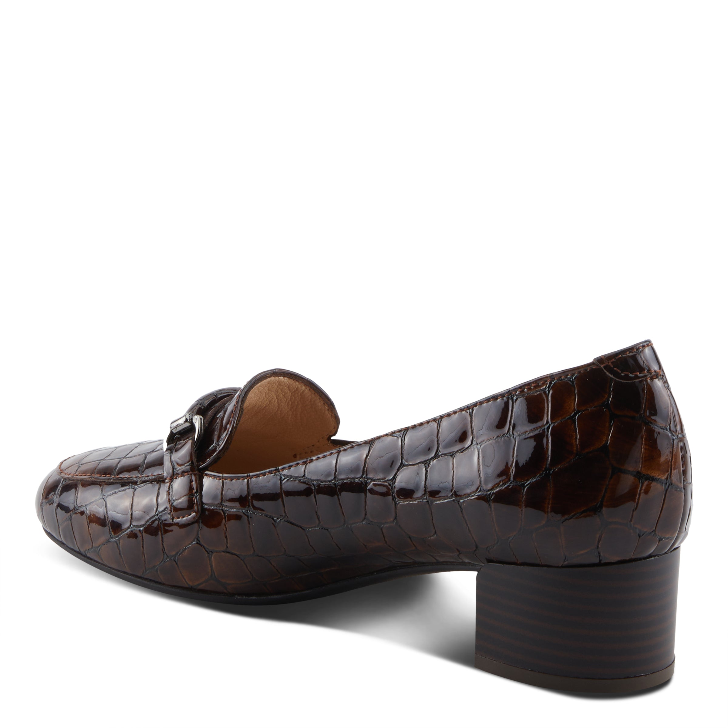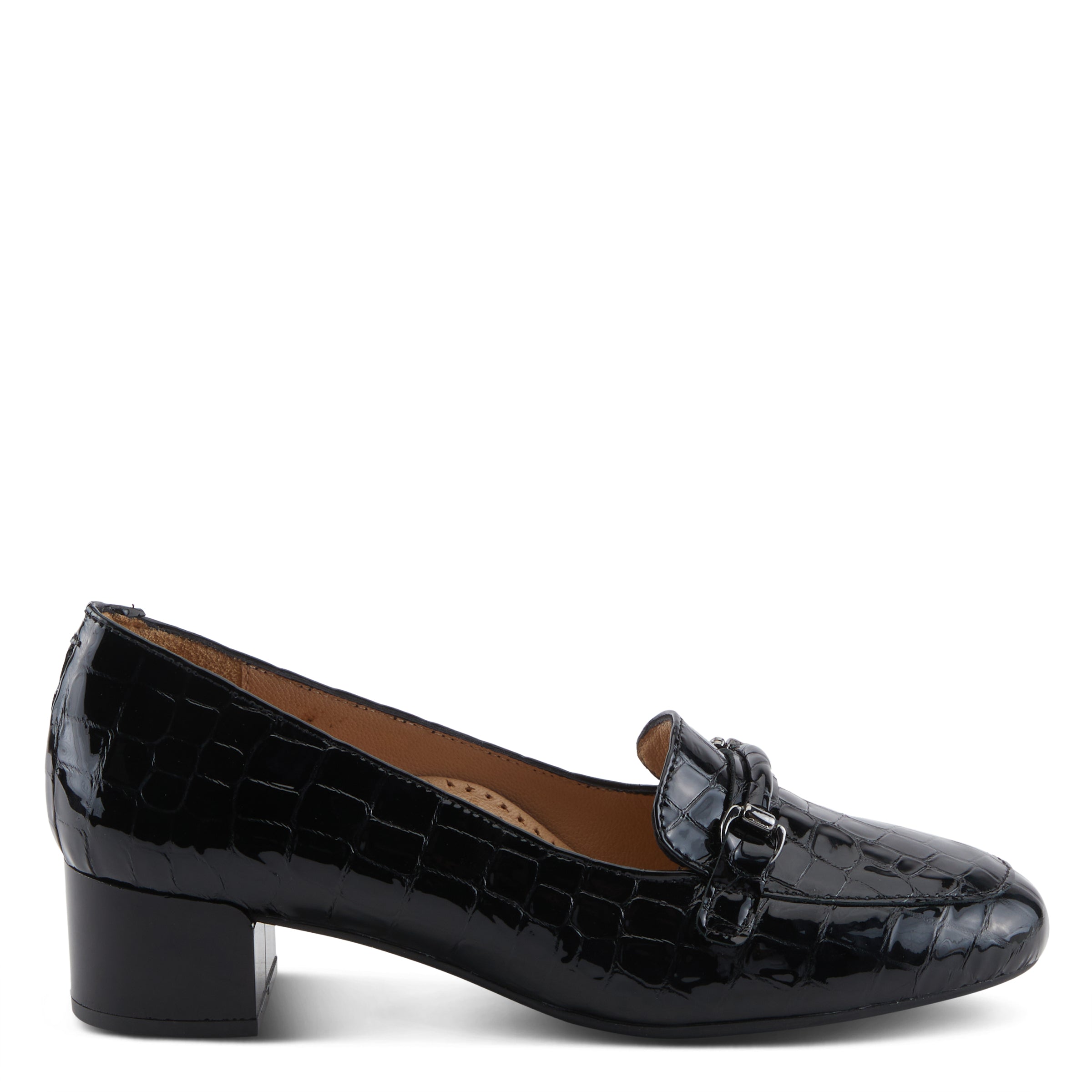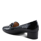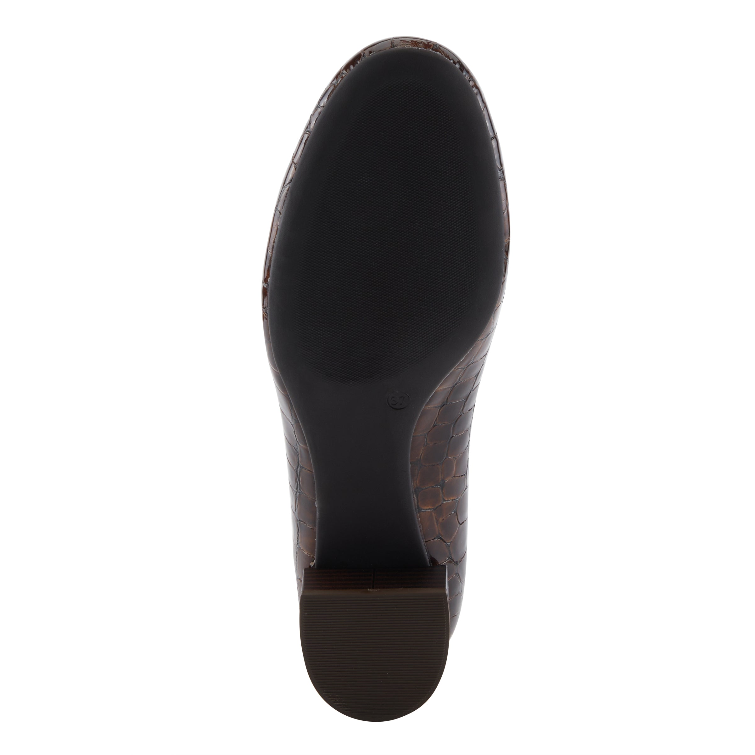 Step into timeless elegance with a sophisticated dress shoe designed to elevate any ensemble. Crafted from luxurious croco-embossed material, this shoe boasts a sleek, polished finish for a refined touch. The classic loafer silhouette is enhanced by a decorative bit on the front upper, adding a subtle hint of metallic elegance. A low block heel provides a comfortable lift, while the soft cushioned insole ensures all-day wearability. Designed for both style and comfort, this versatile shoe effortlessly complements business, casual, or evening attire, making it a must-have staple in any