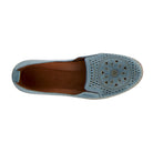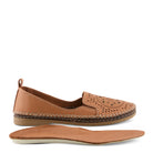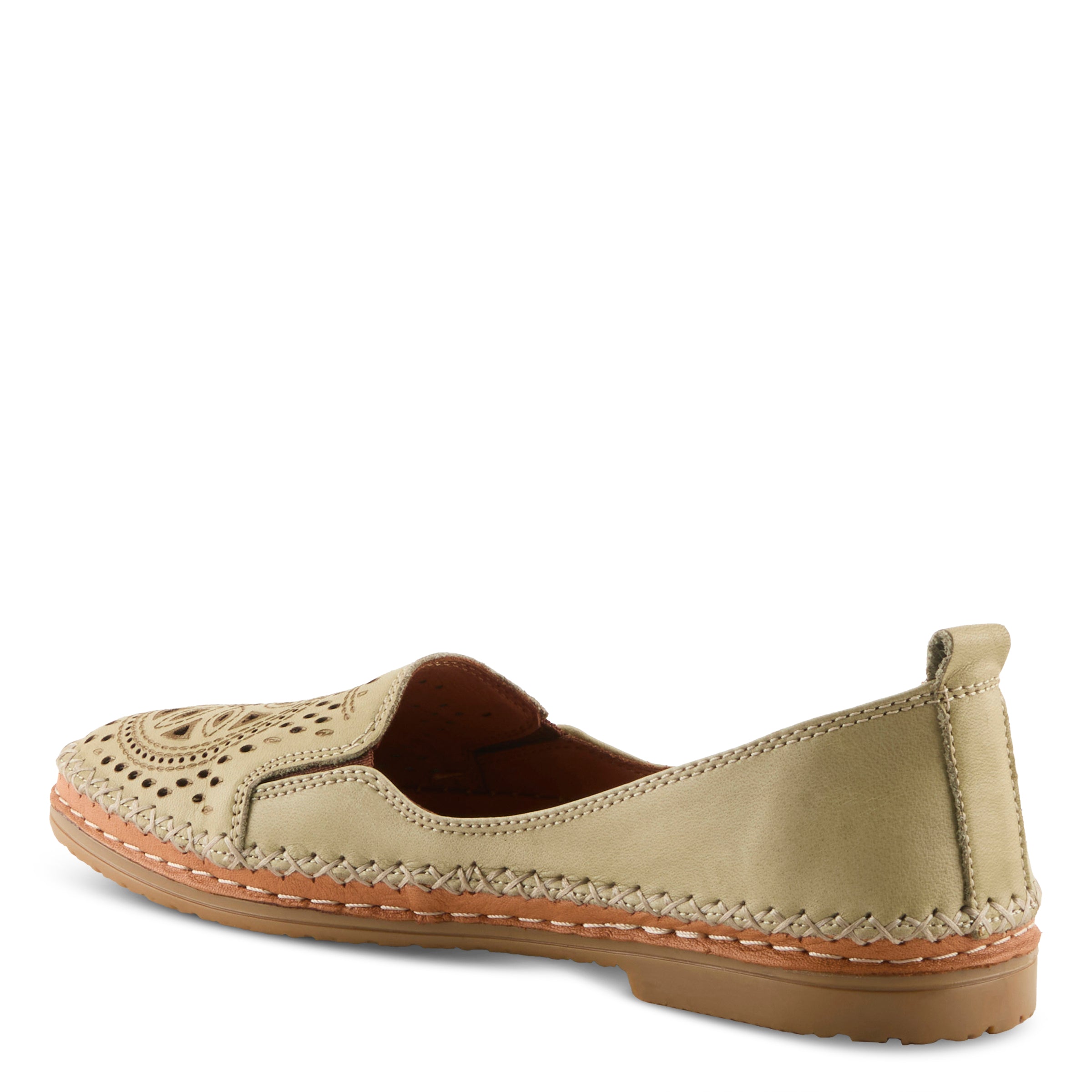 European influenced, high quality premium leather slip-on loafer featuring a notched vamp with stretch elastic goring for secure and easy-wearing, a classic laser etching/cutout pattern atop the vamp increasing breathability and flexibility, and a pull-on heel tab all on an slim-profile, molded, comfort flat with a flexible forefoot and artesian whip-stitch welt design.