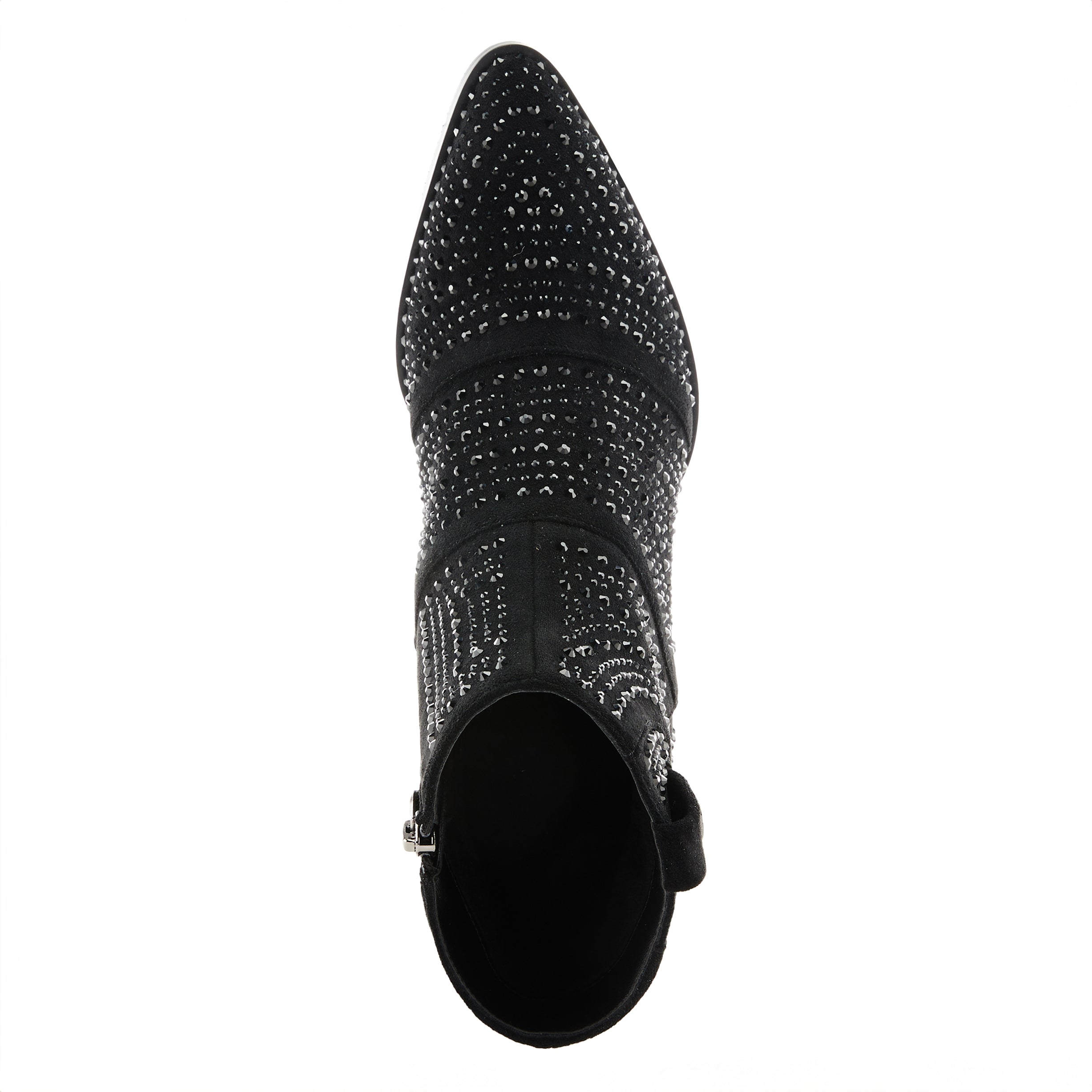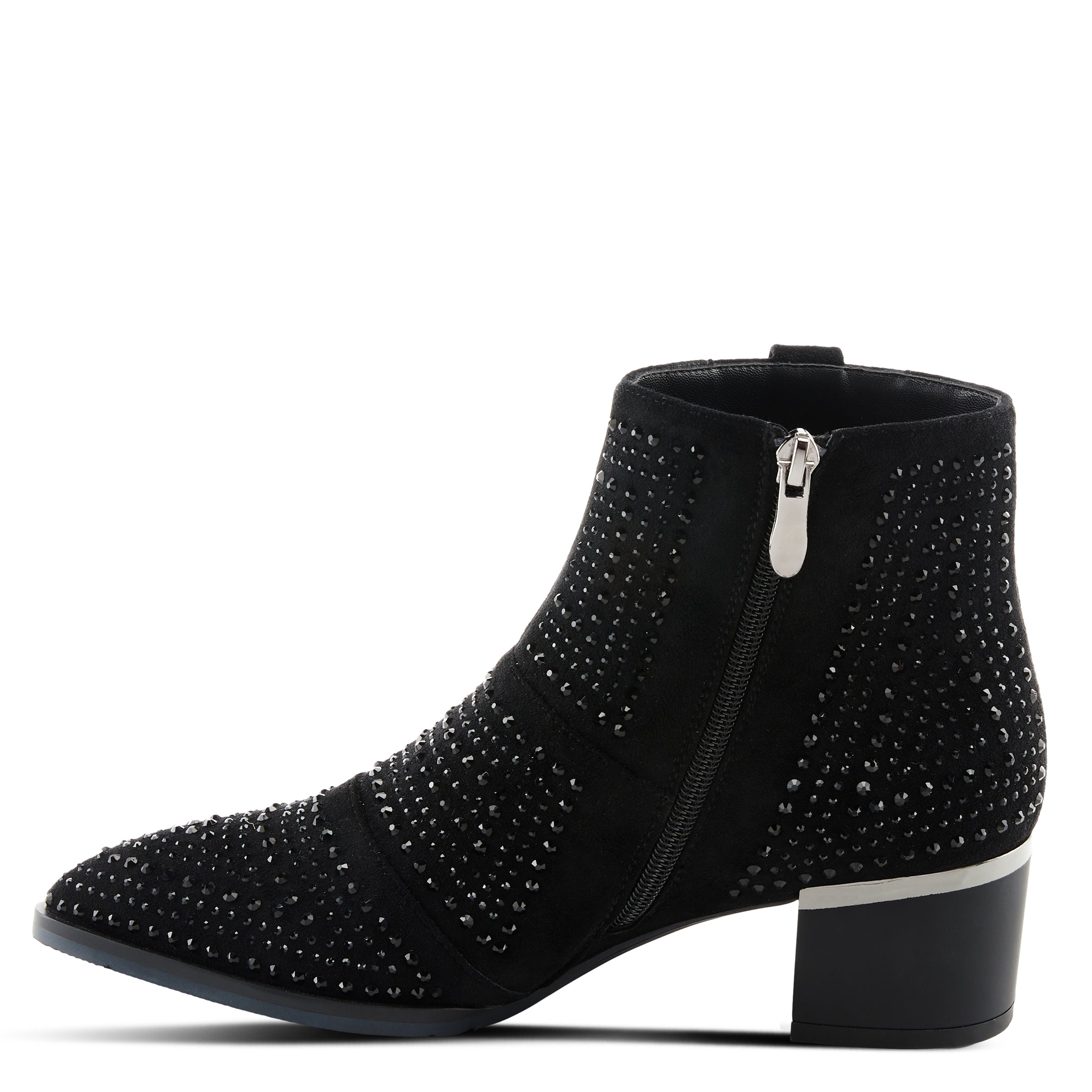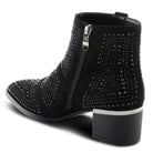 An Oh MY GOSH moment as soon as you see this County Rock Star extravaganza for your feet. Just the right shiny pewter edged heel height, and just the right amount of "look at me" attitude in this all-over mathematically laid out perfection of large and small crystals and solid in-between divisions. Inside zip with a slight western vibe.