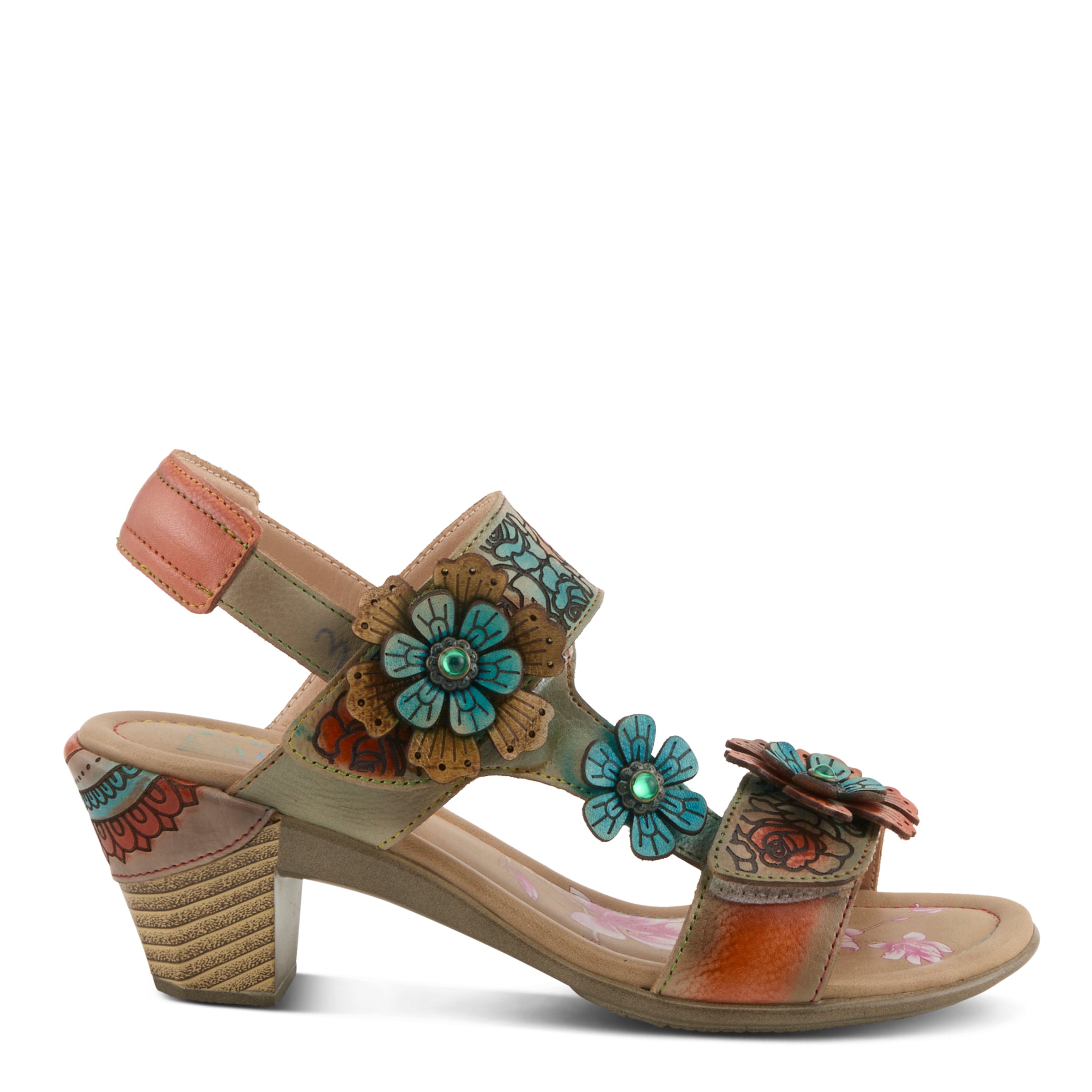 Indulge your senses with the SALIRA - a captivating leather sandal that's a true feast for the eyes. Featuring a combination of etched and hand-painted floral designs, the SALIRA is adorned with delicate floral embellishments that demand attention. The padded back collar ensures all-day comfort, while the vibrant flowers on the footbed and a hand-painted flower on the heel add the perfect finishing touches.