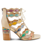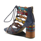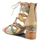 Dance the night away in these eclectic heels. The back zipper closure makes it super easy to slip on and off. Lace up detailing at the front makes it perfect for fuller feet. The multi color straps will match with any outfit and the studs give it the perfect amount of spice. Artdeco is the embodiment of lavish.