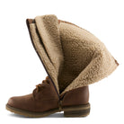Your new favorite winter boot that provides warmth and comfort all day long. Easy on and off with inside zipper and adjustability through front laces. Thoughtfully constructed on a stable outsole and beautifully detailed with a sweater trim.