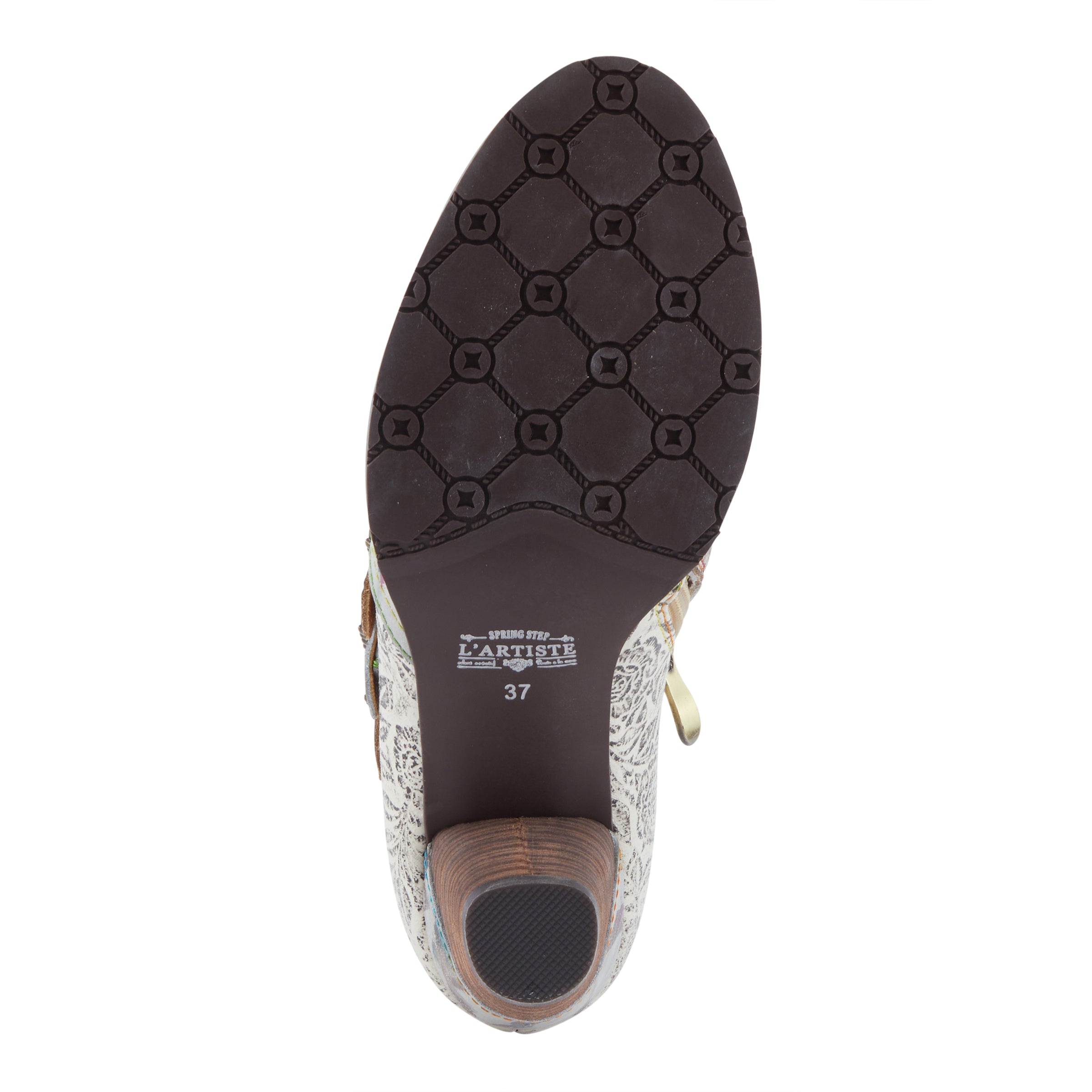 This shootie is a stunning combination of vintage and modern styles. The hand-painted floral material adds a touch of femininity, while the 3-layer decorative antique buckle provides a unique and eye-catching element. The stacked heel and rainbow stitching add to the overall charm and personality of this beautiful shoe. The shoe’s premium padded insole provides exceptional comfort and support for all-day wear.