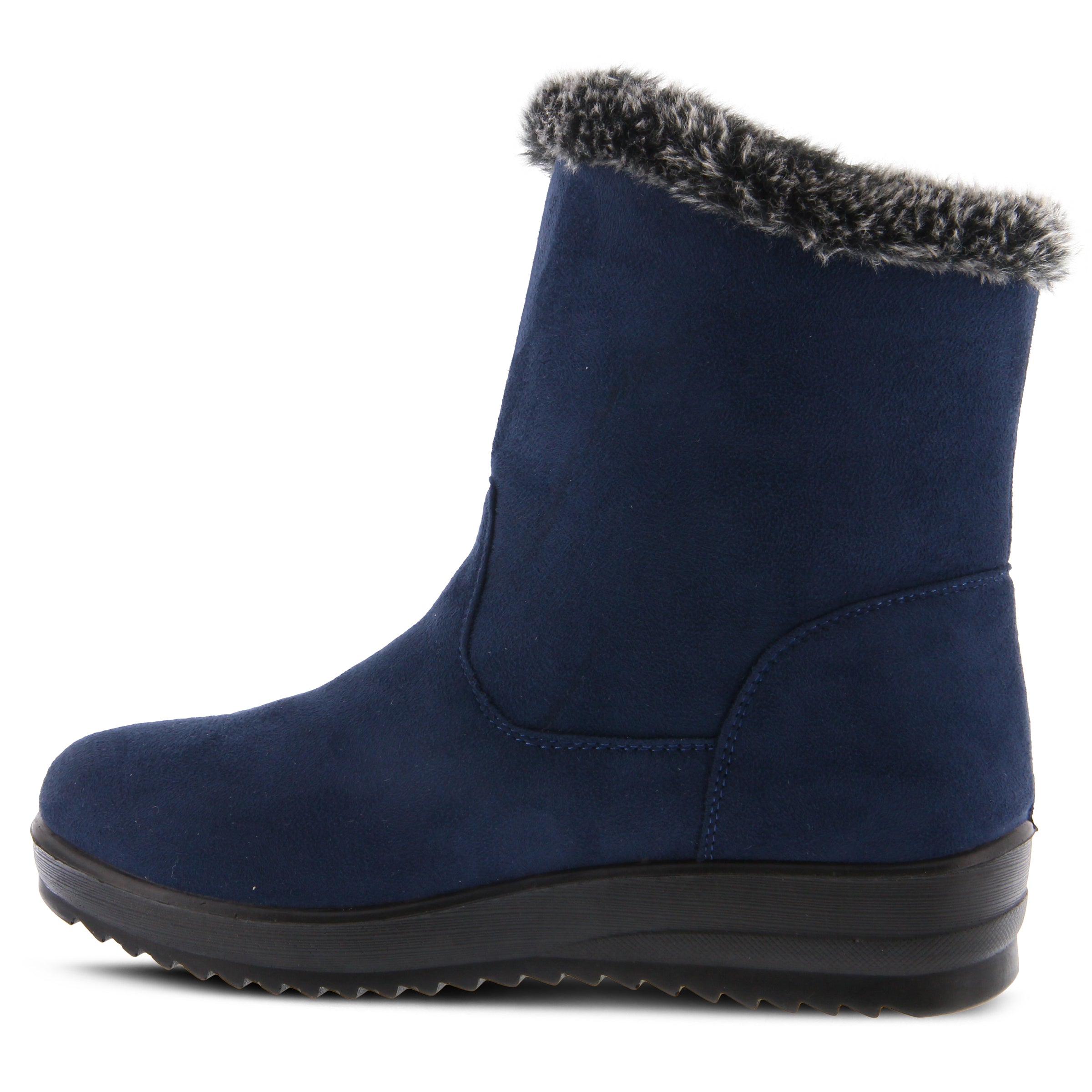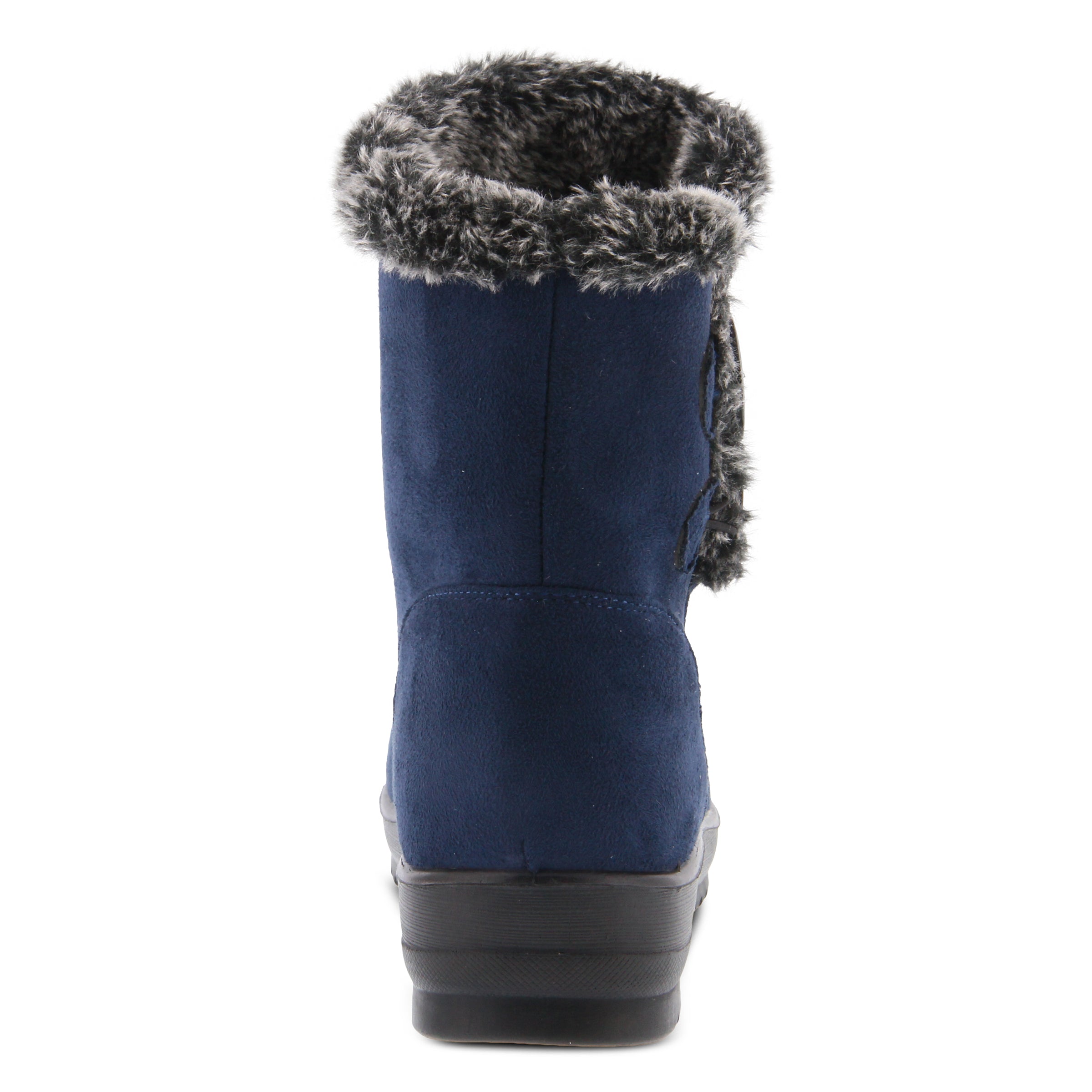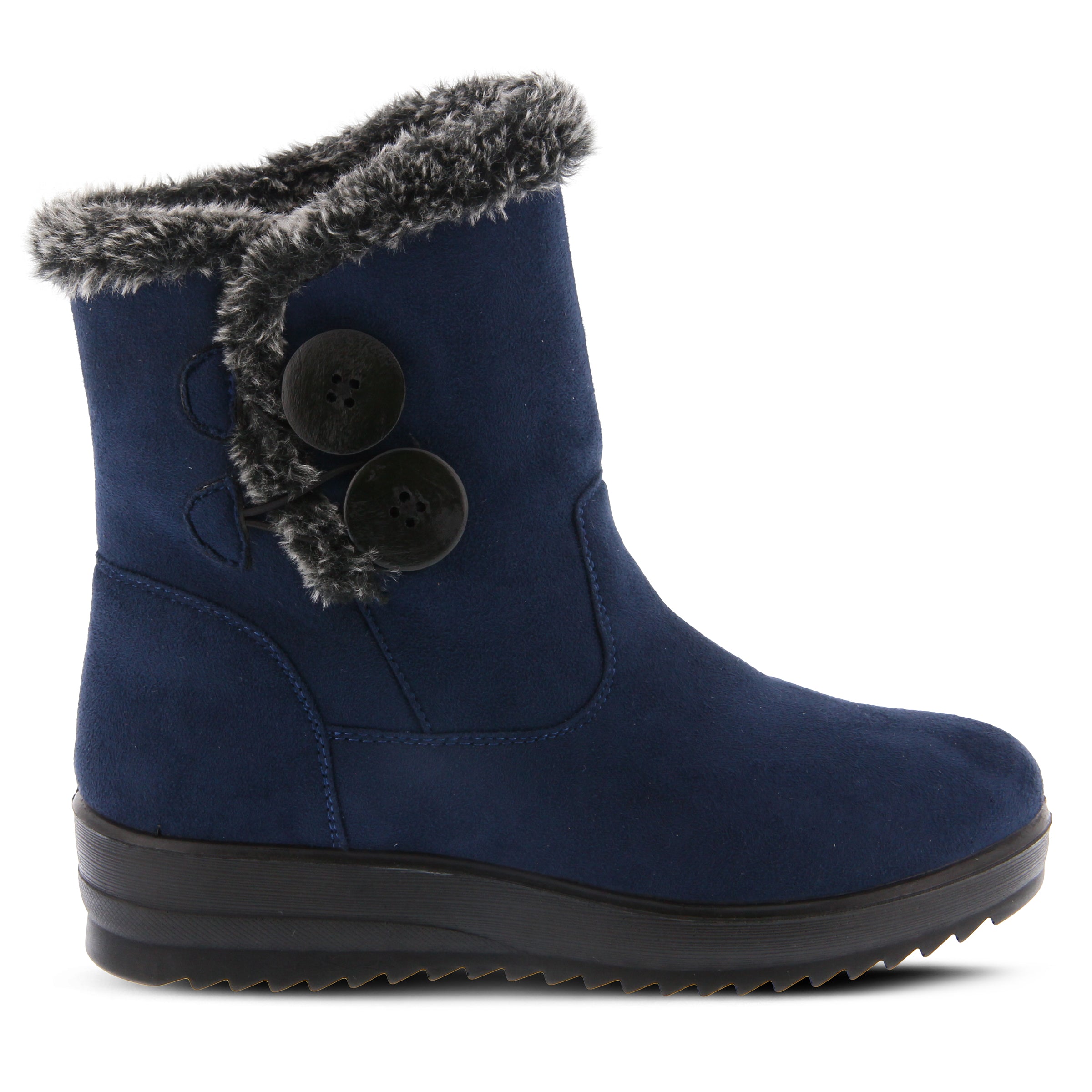 Cozy and comfortable waterproof micro-suede booty, beautiful faux fur collar trim and two large fashionable buttons attached with bungee cord stretchable laces, very flexible construction with direct injected light weight polyurethane outsole.