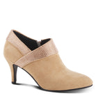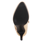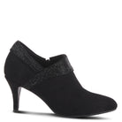 This microsuede cone heeled shootie is the perfect blend of style and sexiness, with a V-slit design that adds a touch of drama and a zipper closure for easy wearability. The cone heel gives it a sophisticated edge, while the microsuede material adds a luxurious feel. Whether paired with pants or a skirt, this shootie is sure to make a statement.