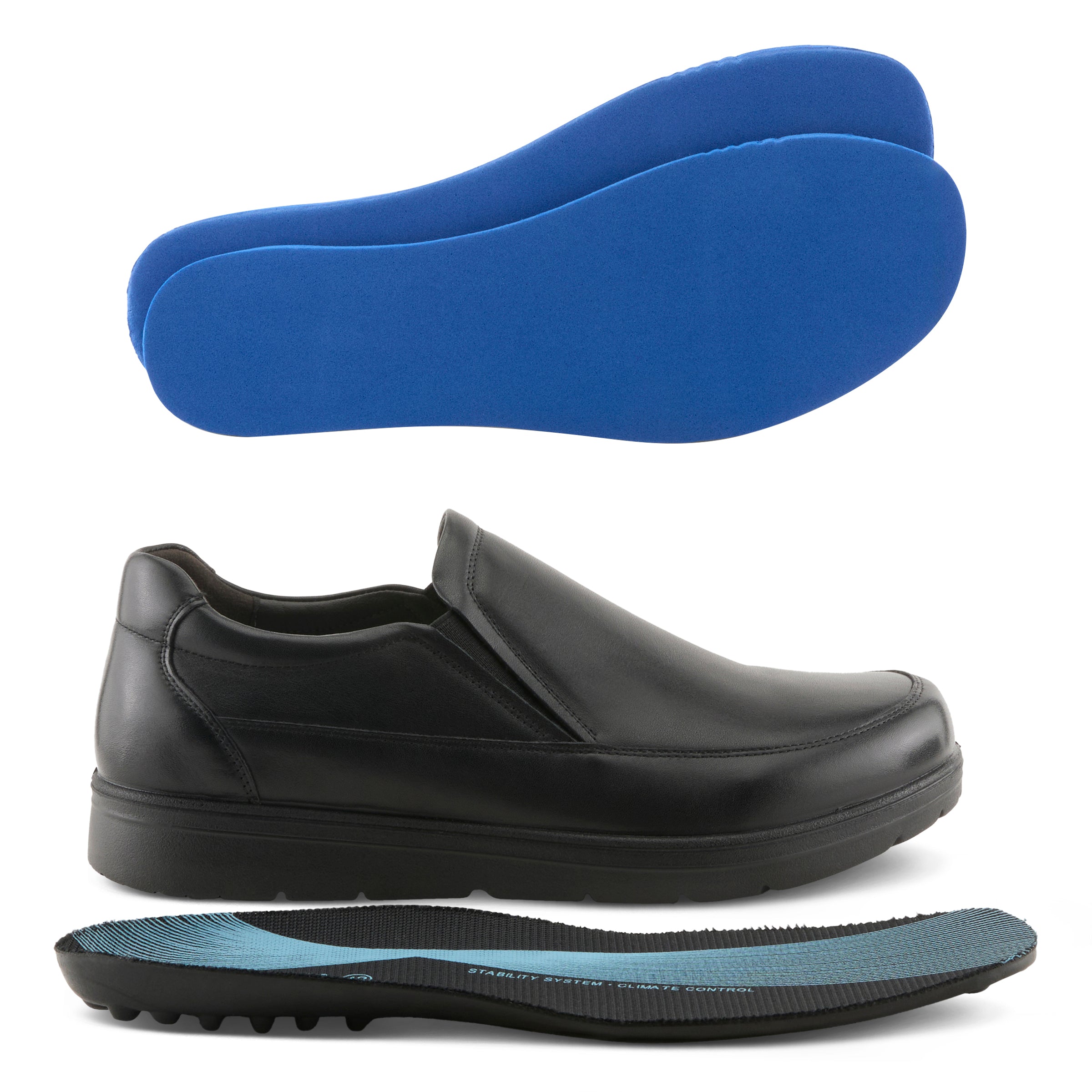 Experience superior comfort and style with our men's double side goring slip-on shoe, designed for extra width to ensure a spacious, relaxed fit. The double side goring offers flexible, easy on-and-off wear, while the sleek leather upper adds a polished touch for both casual and professional settings. Featuring a cushioned, removable- insole, this shoe provides customizable comfort and accommodates personal orthotics. The lightweight construction minimizes foot fatigue, and the durable outsole ensures lasting wear and reliable traction. Perfect for all-day comfort, this versatile slip-on combines functionality with timeless style.