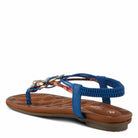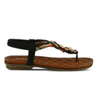 A Best Seller! These embellished t-strap sandals will be perfect for all your Spring and Summer get-togethers. The strap is adorned with a mixed media pattern, floral print, metallic circles and two rhinestone ornaments. The covered elastic heel strap stretches for your comfort. It's a must have for your warm weather wardrobe.
