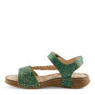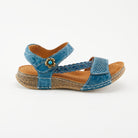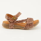 Fashion and leisure. This leather sandal was made for both. The embossed floral pattern, lattice work at the top and braided asymmetrical side strap with an antiqued flower gives it a rich combination of details. The Hook and Loop Velcro closure and padded back strap make for a secure and comfortable fit. Perfect for an active day or to just kick your feet up and relax.