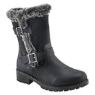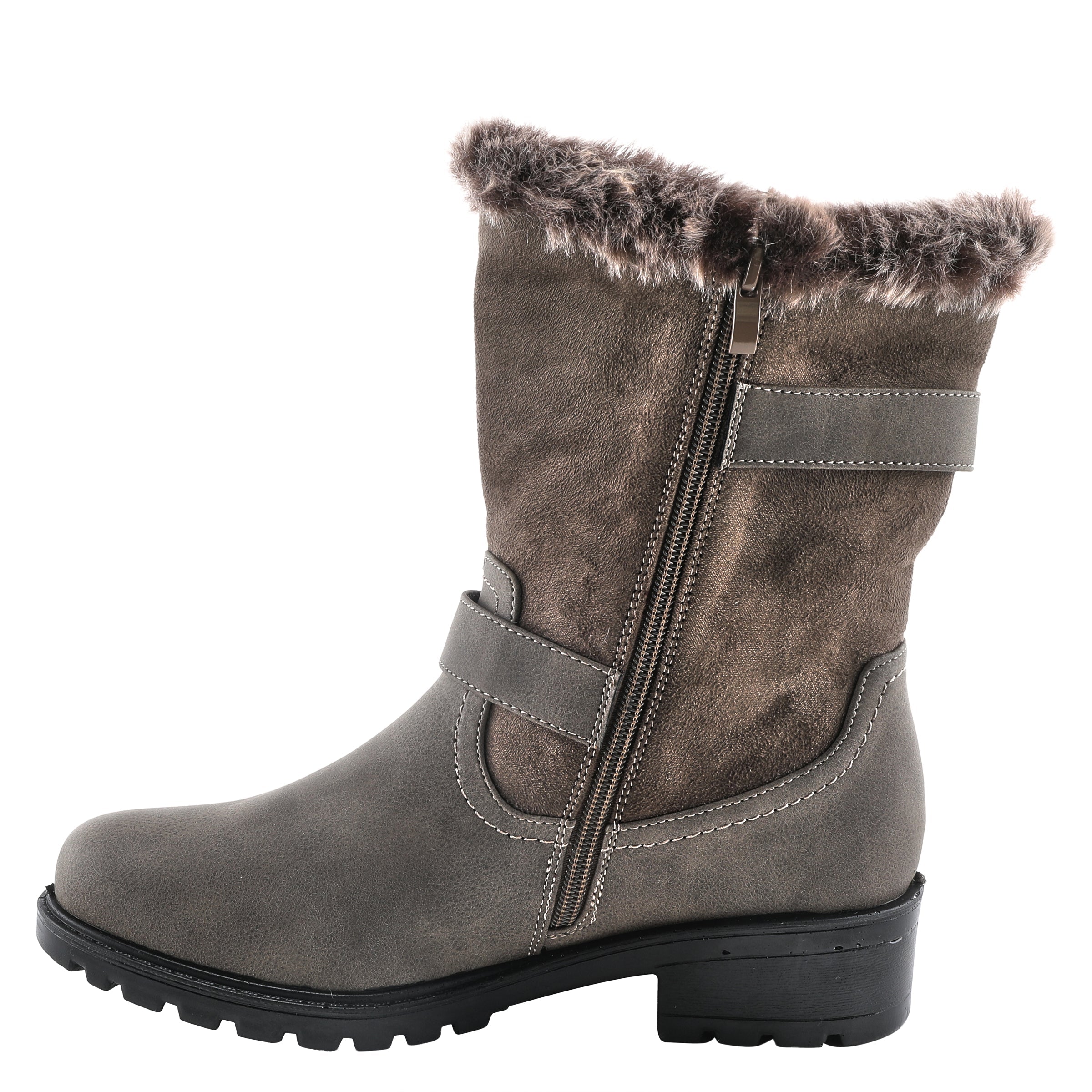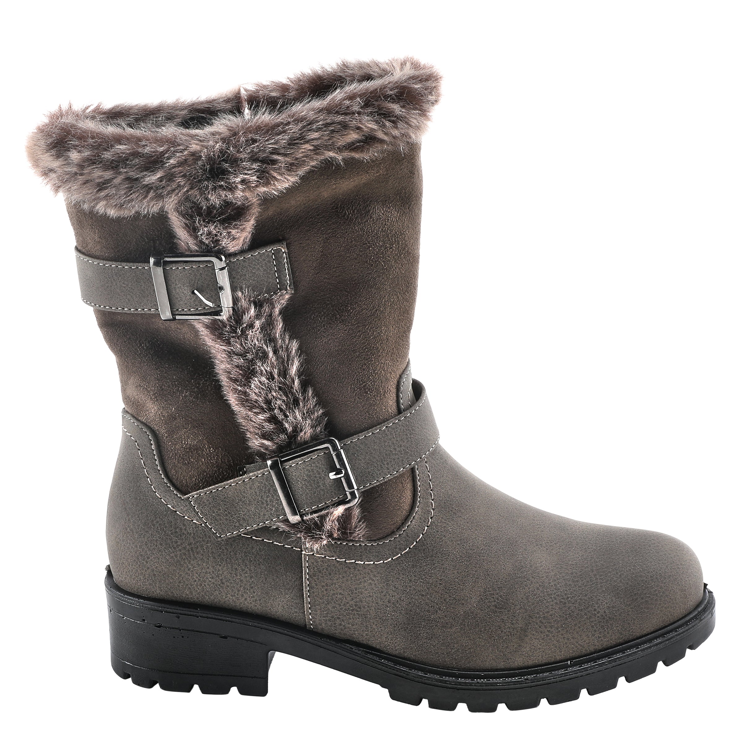Perfect for day or night, on a cold fall or winter day. Stylish yet functional faux-fur trimmed boots. The block heel and double wrap-around buckle styling add on-trend appeal to the ultra-cozy faux fur that promises extra warmth.