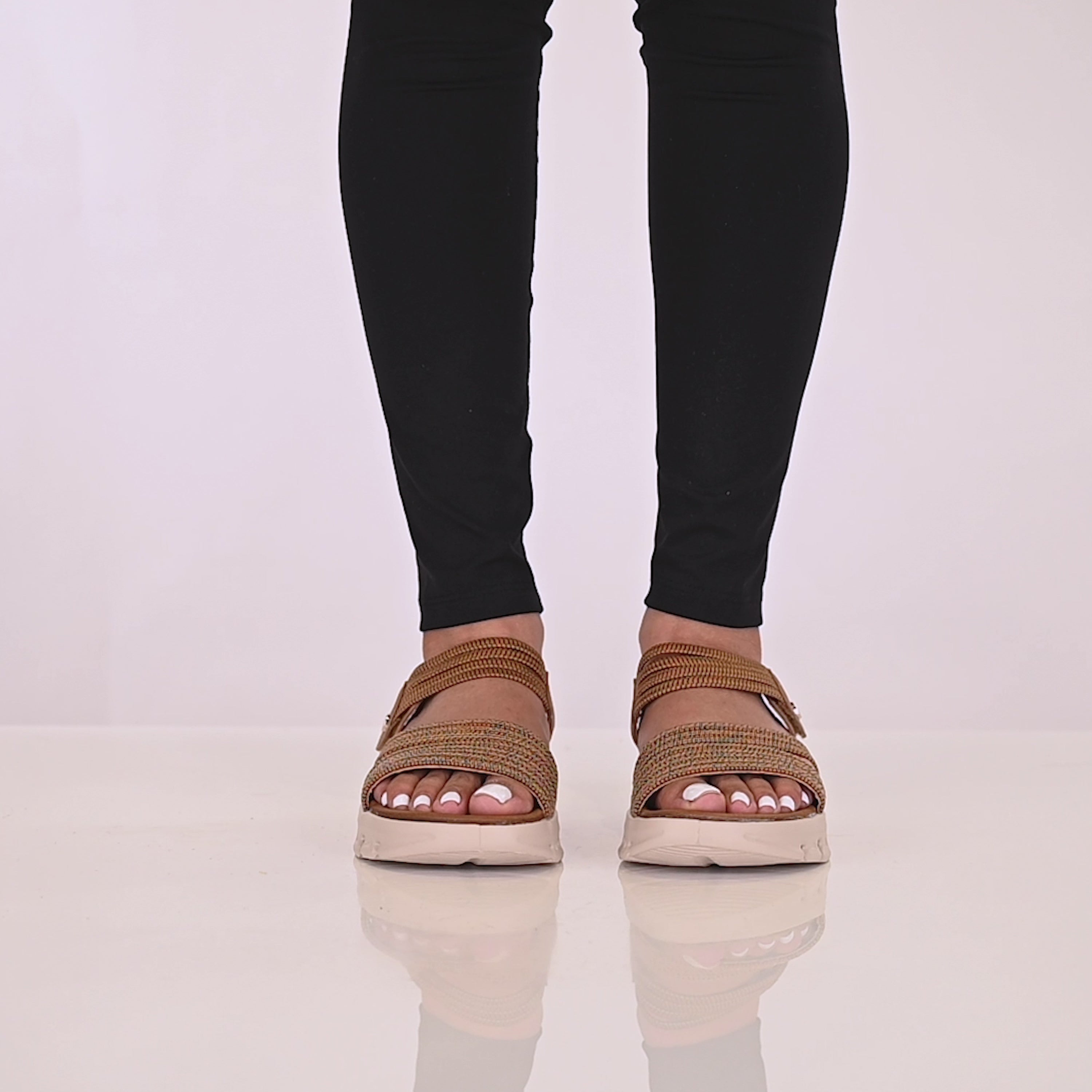 This wedge back-strap sandal is the perfect fusion of sporty energy and luxurious comfort. With its trendy outsole and hook-and-loop closure, it ensures a customized fit for all-day ease. The cushioned footbed cradles your foot, while the front straps gently secure it in place, providing steady support with every step. Designed for active lifestyles, this sandal combines style, comfort, and security, making each stride feel effortless and confident.