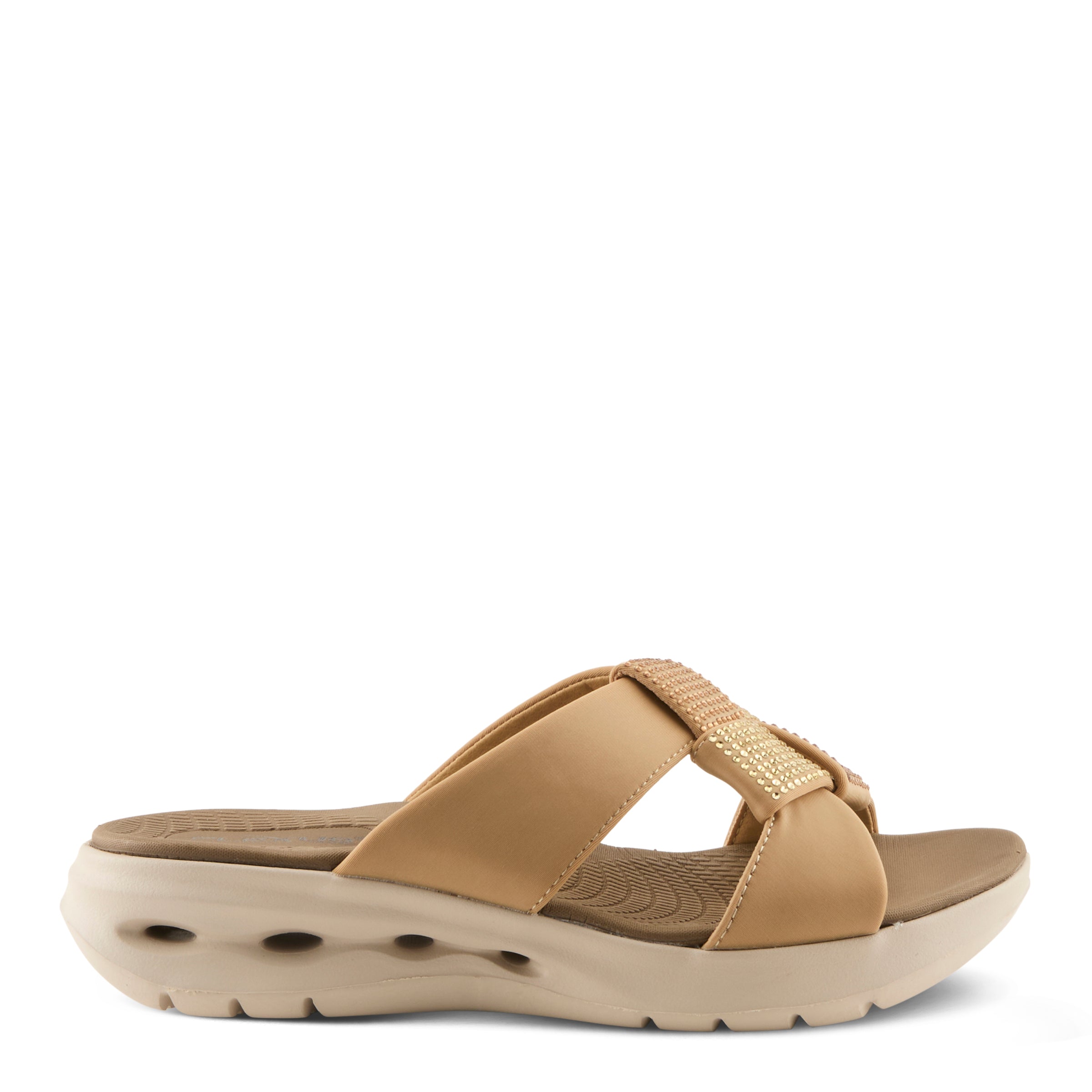 This slip-on sandal dazzles with a bedazzled rhinestone diamond-shaped upper, adding a touch of sparkle to your every step. Designed for ultimate comfort, it features a trendy sport-active outsole that provides support and flexibility. The cushioned footbed cradles your feet, ensuring a comfortable, secure fit with every stride, making it the perfect combination of style and comfort for all-day wear.
