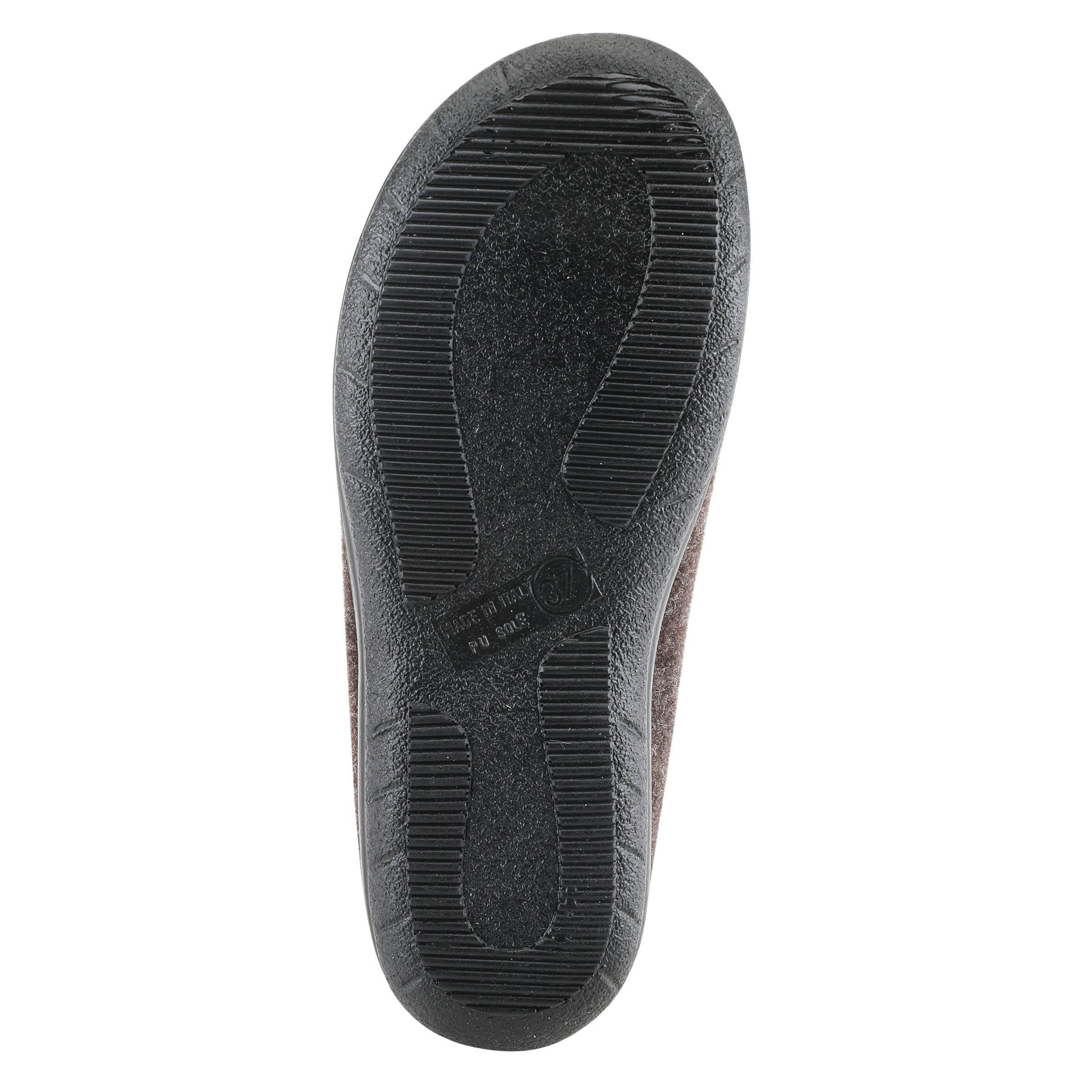 Indoor slipper showcasing a beautiful side embellishment on a comfort outsole.