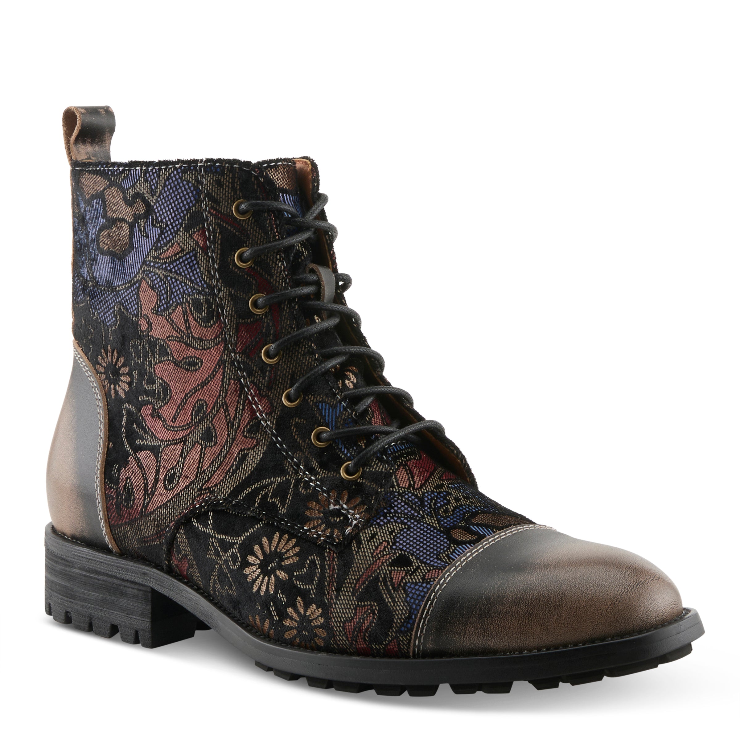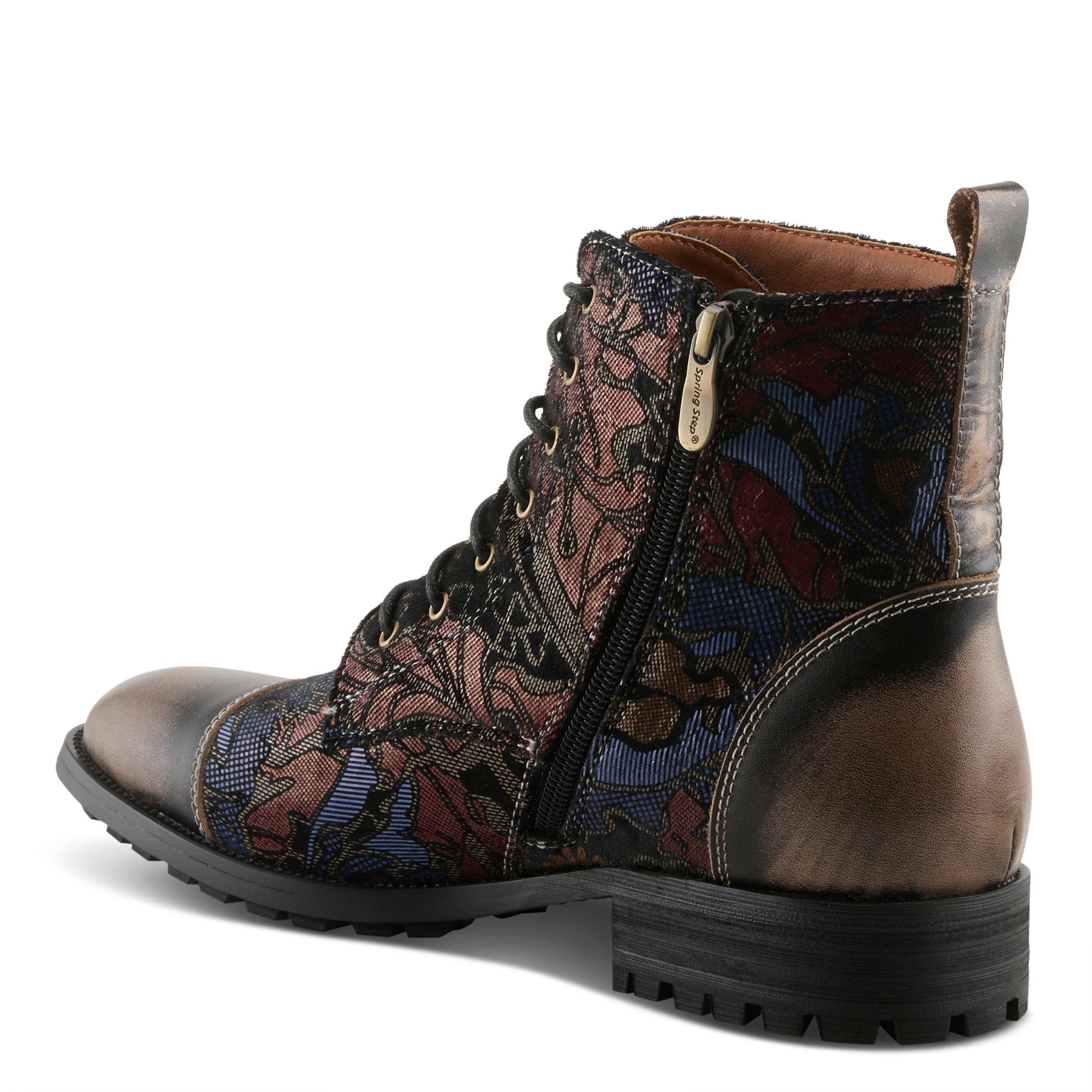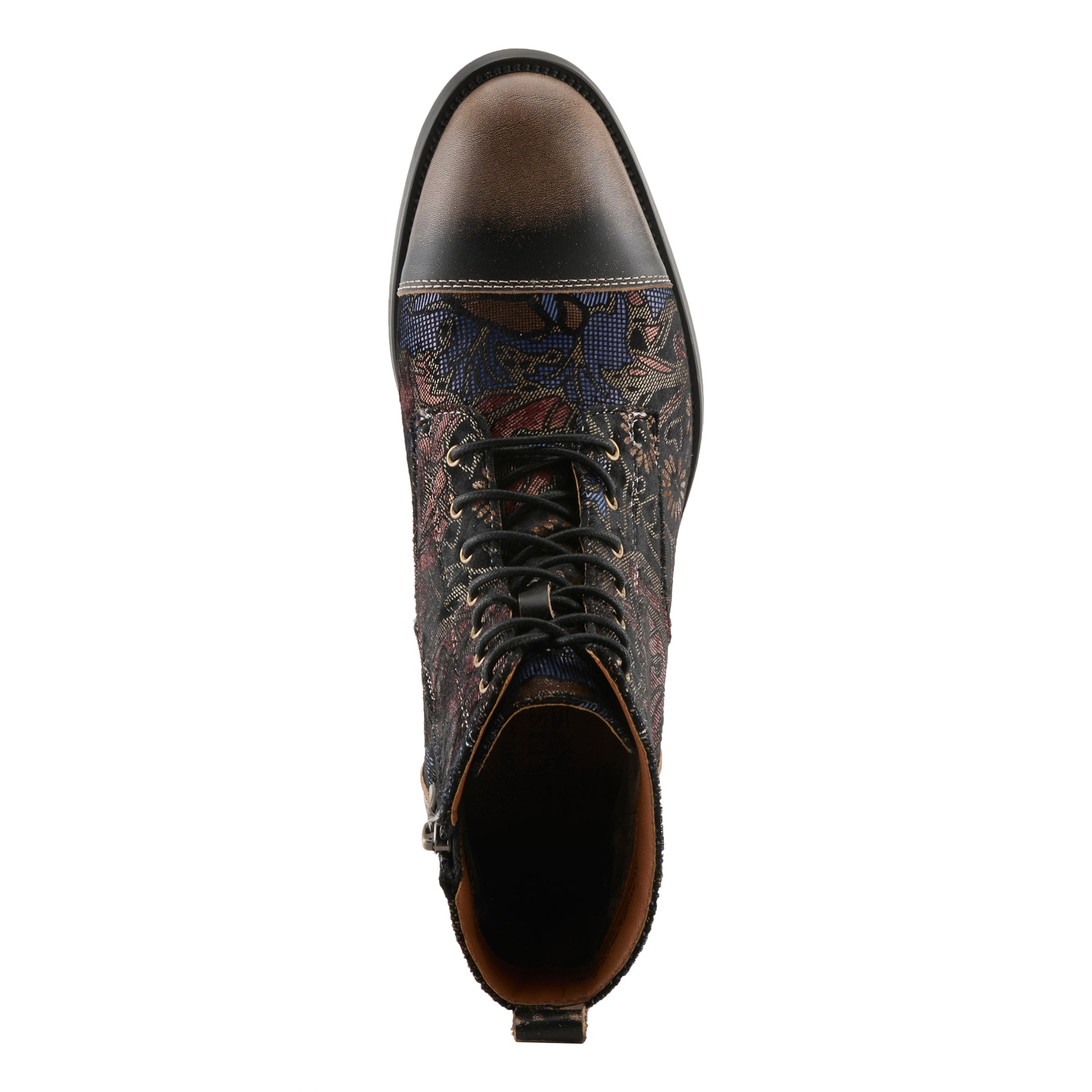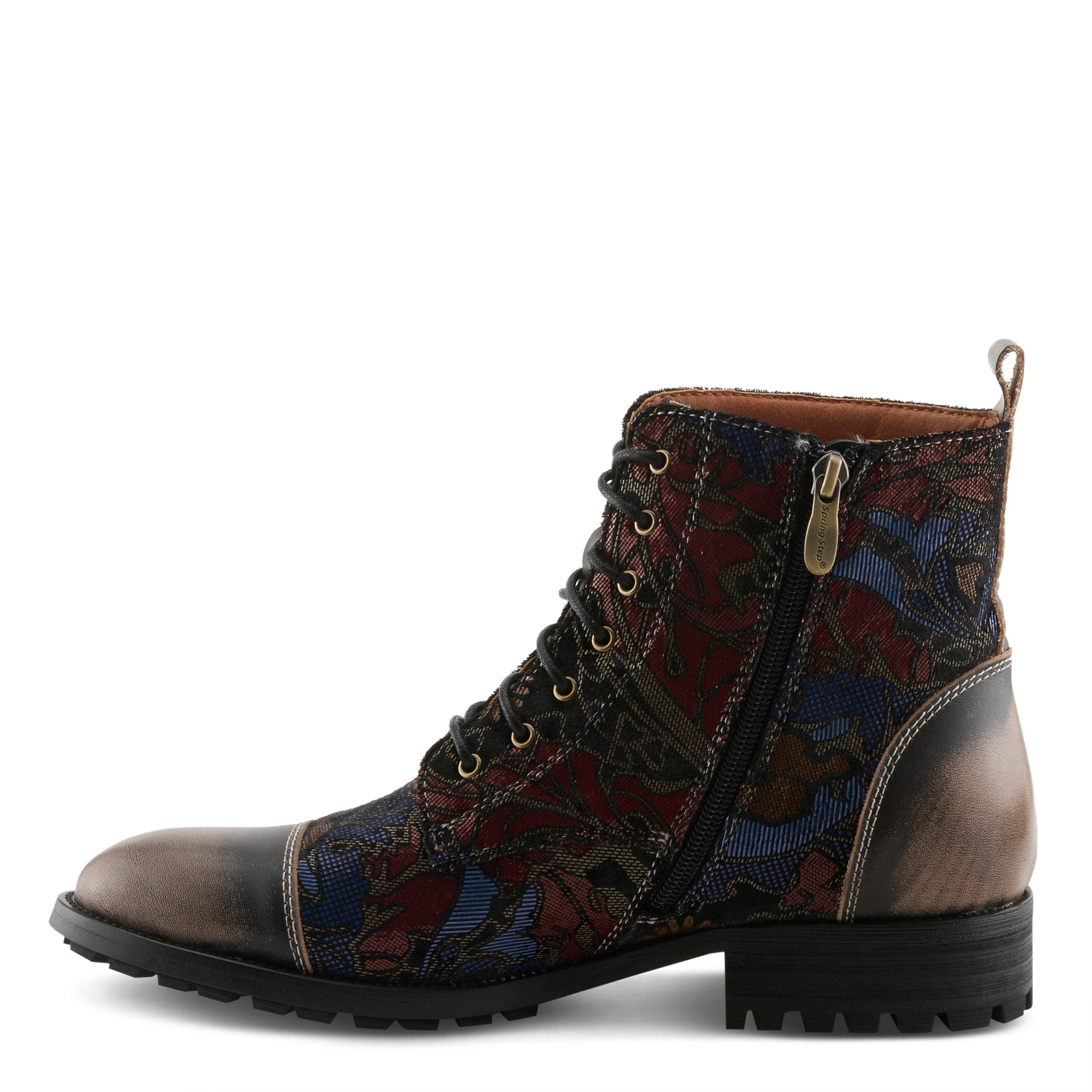 Step up your sneaker game with our men’s high-top sneaker featuring a sophisticated muted floral pattern and a brushed and burnished look. With a lace-up, zipper and toggle for ease of wear, this sneaker offers both style and comfort. Whether you’re dressing up for a night out or just running errands around town, our high-top sneaker with floral pattern is the perfect choice for the modern man who demands both fashion and functionality.