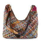 Genuine leather Hobo style handbag that is sure to become your most favorite bag ever! Scooped is not only pretty, but she will be the carryall that you will reach for and go back to- day after day. She's a roomy single compartment with double wall zip pouches, open opposite wall pockets and deep off the wall pouch for easy and quick access of necessities. The double shoulder and carry straps are both removable and allow for multiple ways to wear, including the shoulder strap that adjusts for the perfect fit. One of a kind woven multi colors, slouchy fit-your-body comfort and functionality galore. Your other handbags will be jealous. Cottony storage dust bag included. Imported..