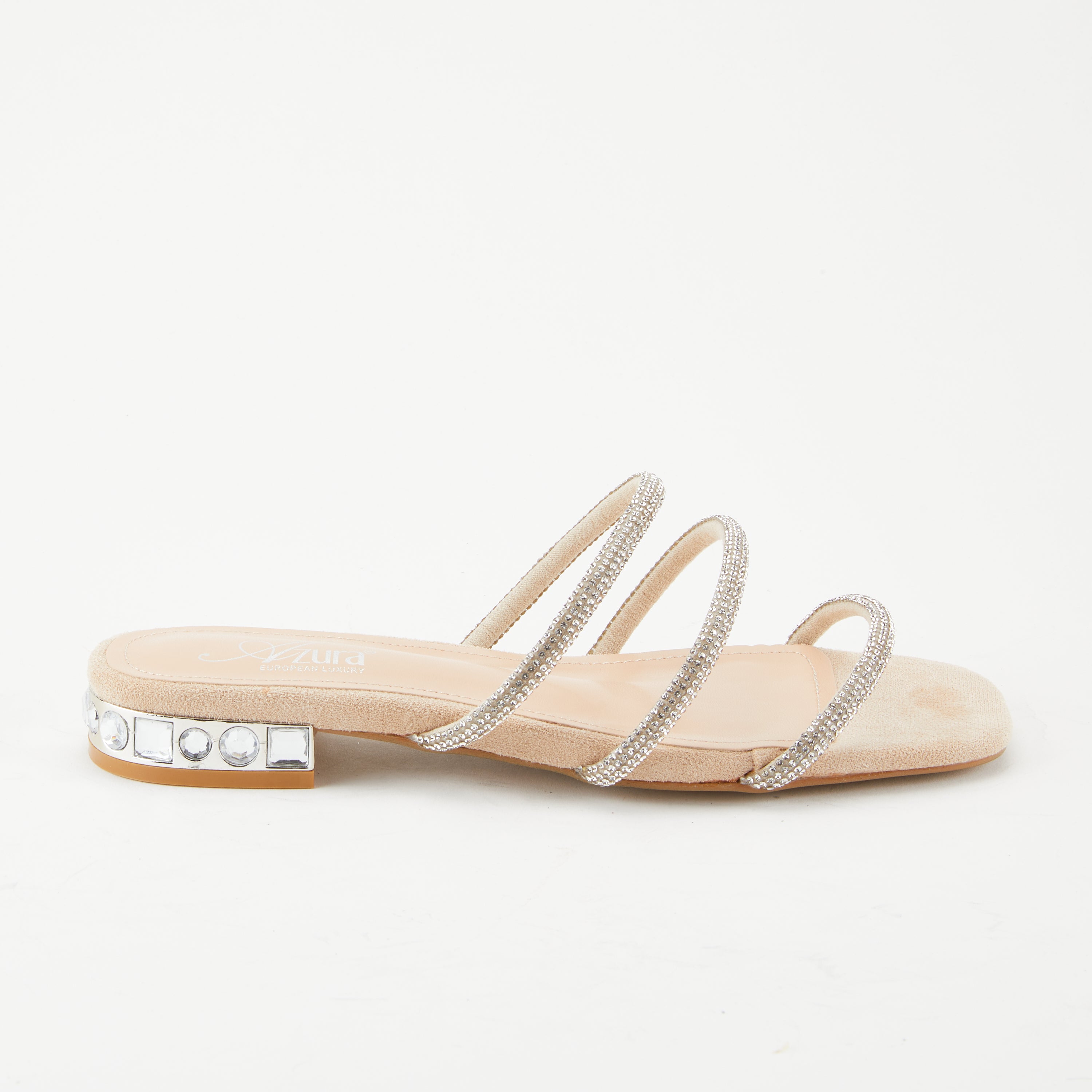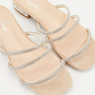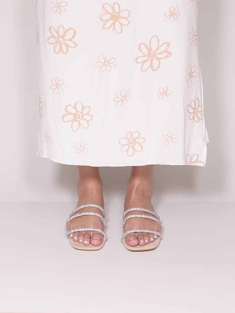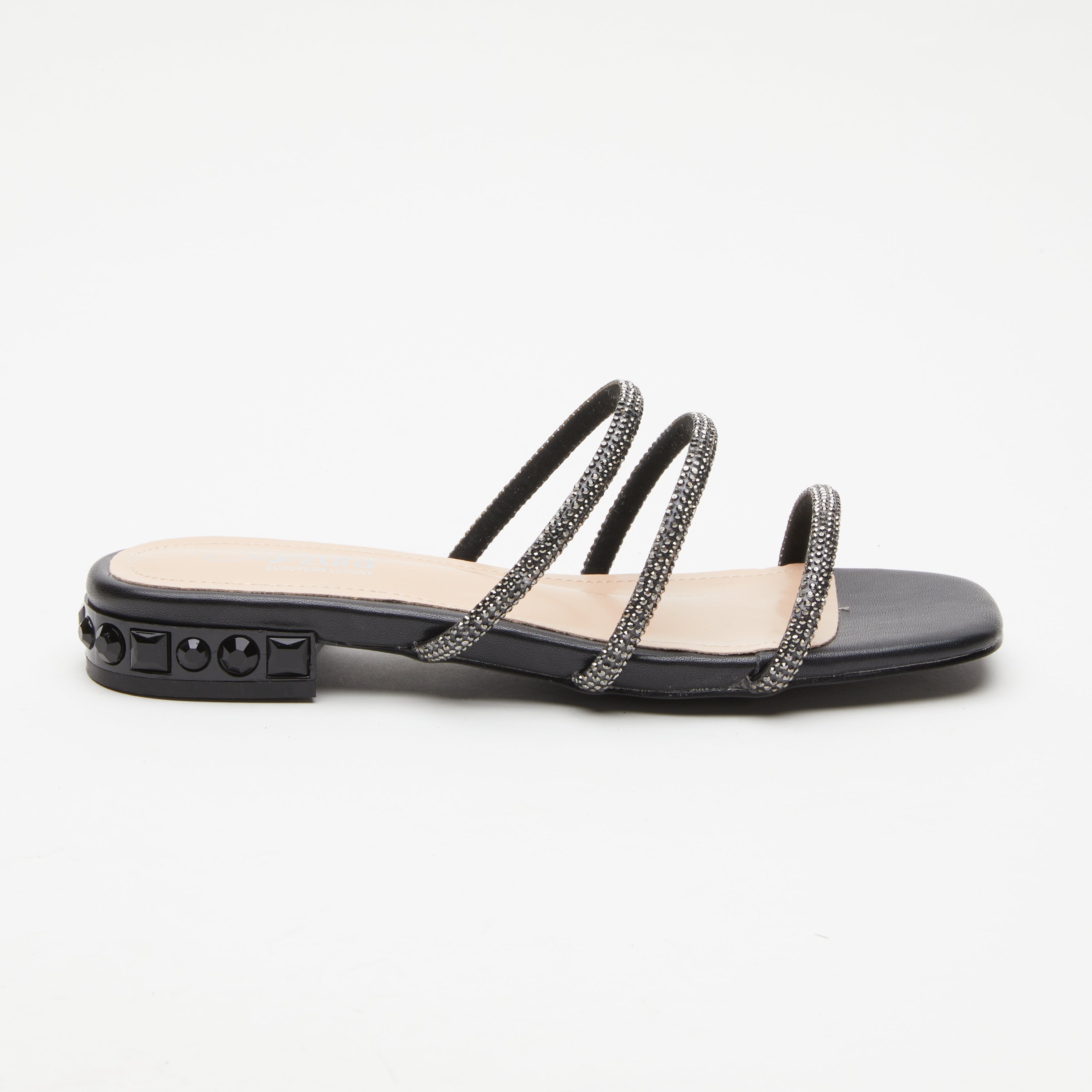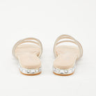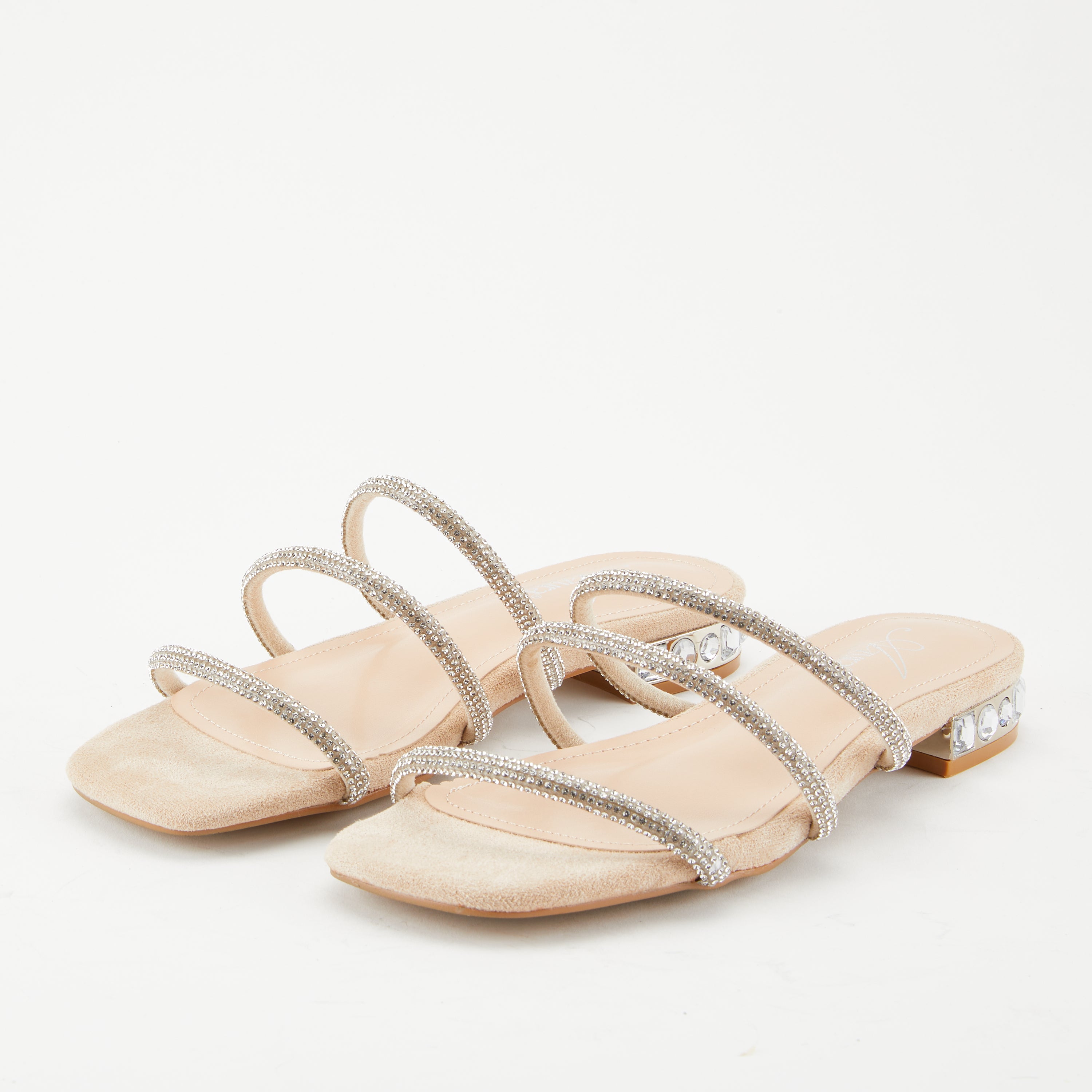 From day to night or from work to date night, we got you covered with these stunning strappy slides. The heel is adorned with circle and square shaped jewels. And three rhinestone straps finish it off for a hint of dazzle with each step.