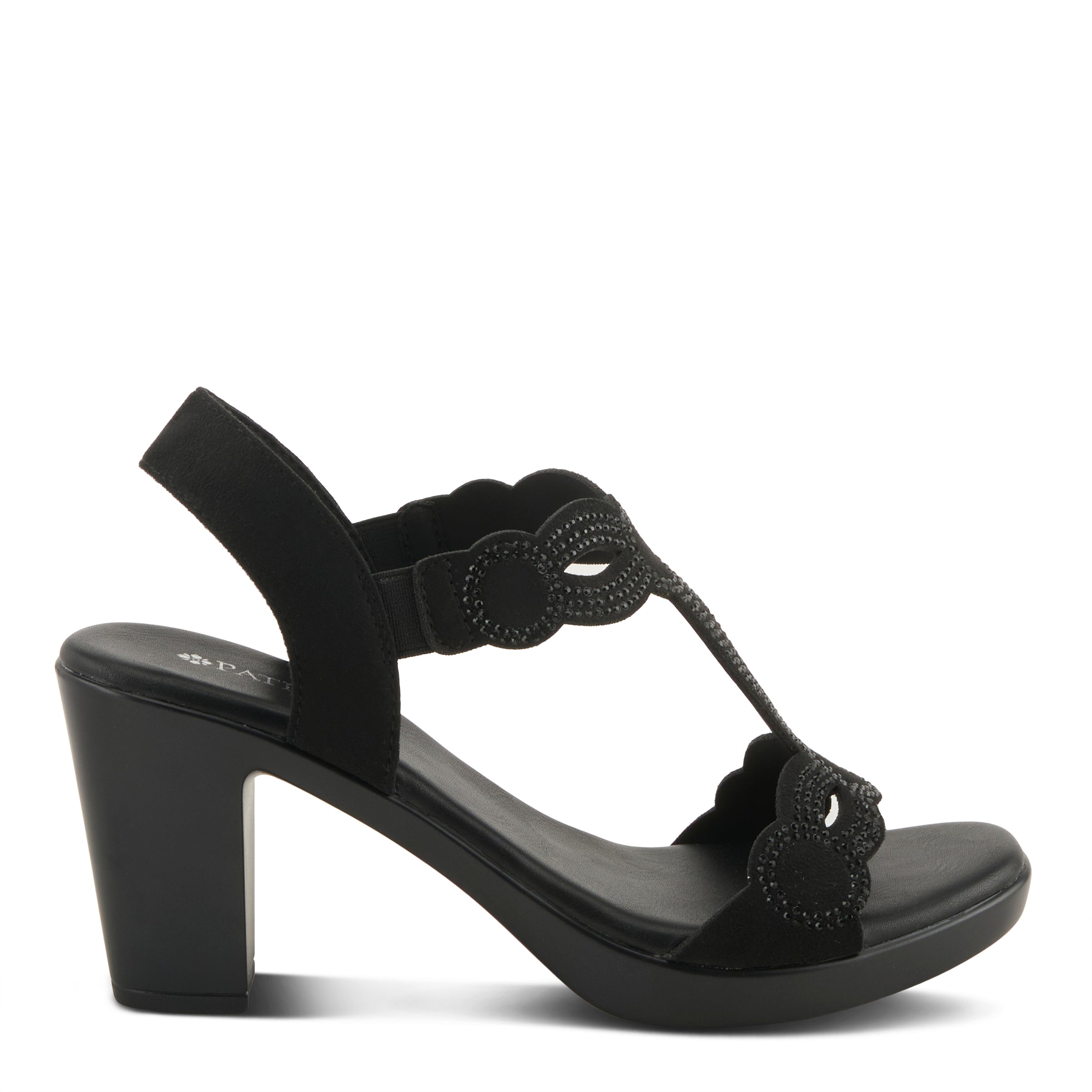 Add a touch of glamour to your footwear collection with these T-strap heels, designed with dazzling crystals and elastic goring for the perfect combination of style and comfort.