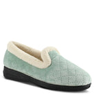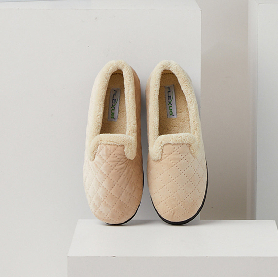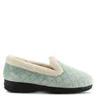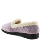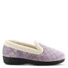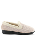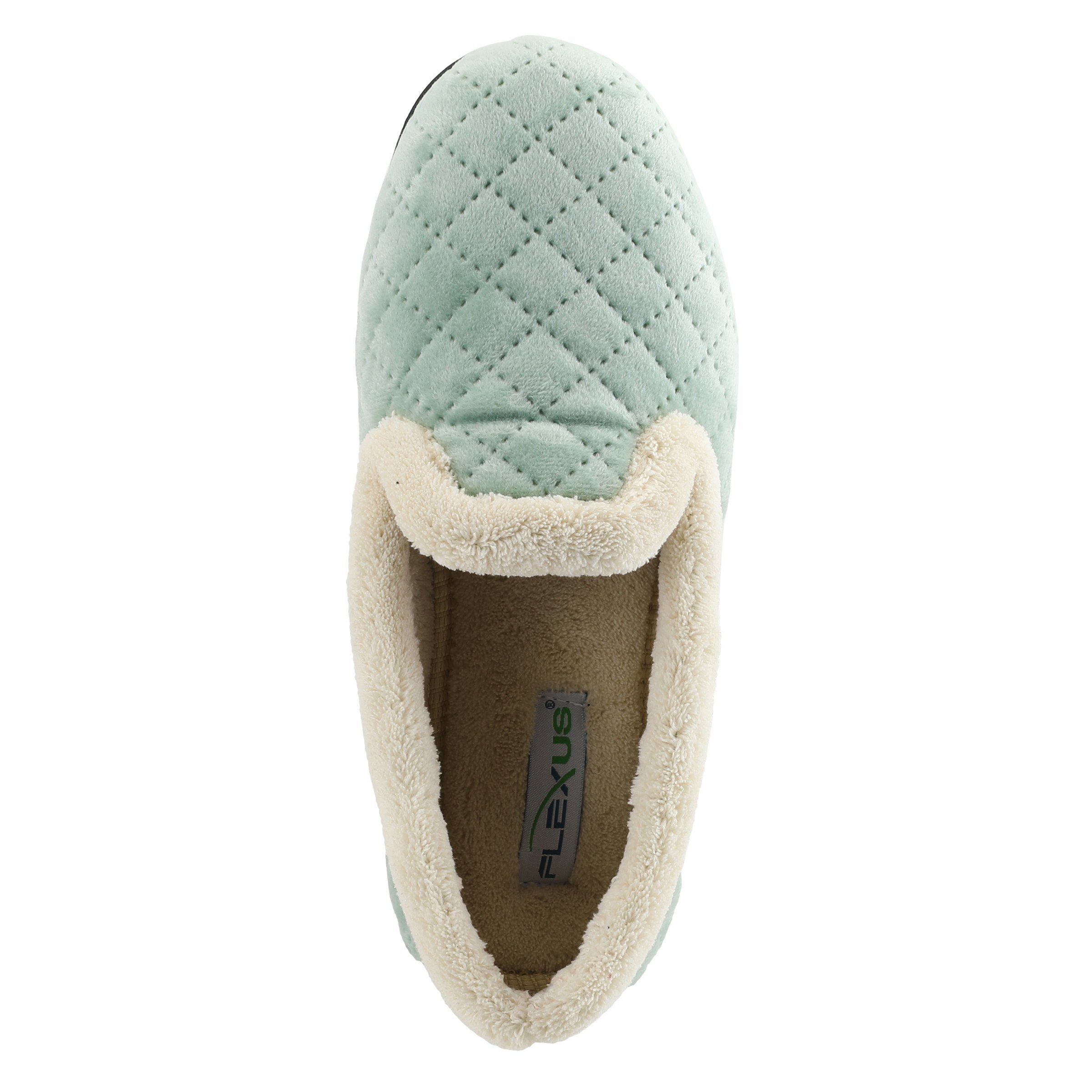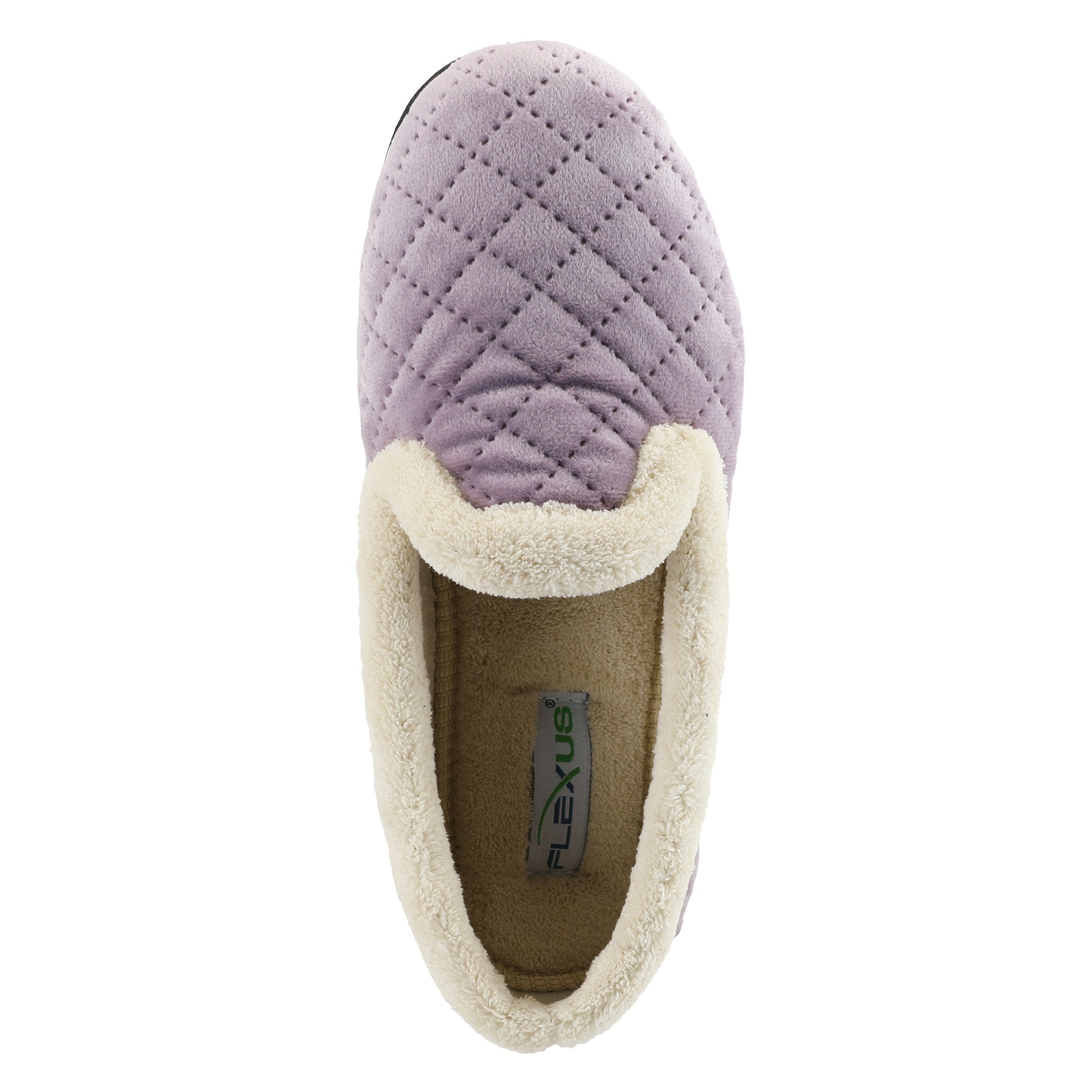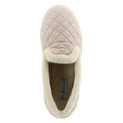 Comfy slipper with diamond quilting, warm lining and trim, and memory foam insole on an all-day-wear OUTSOLE.