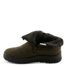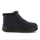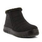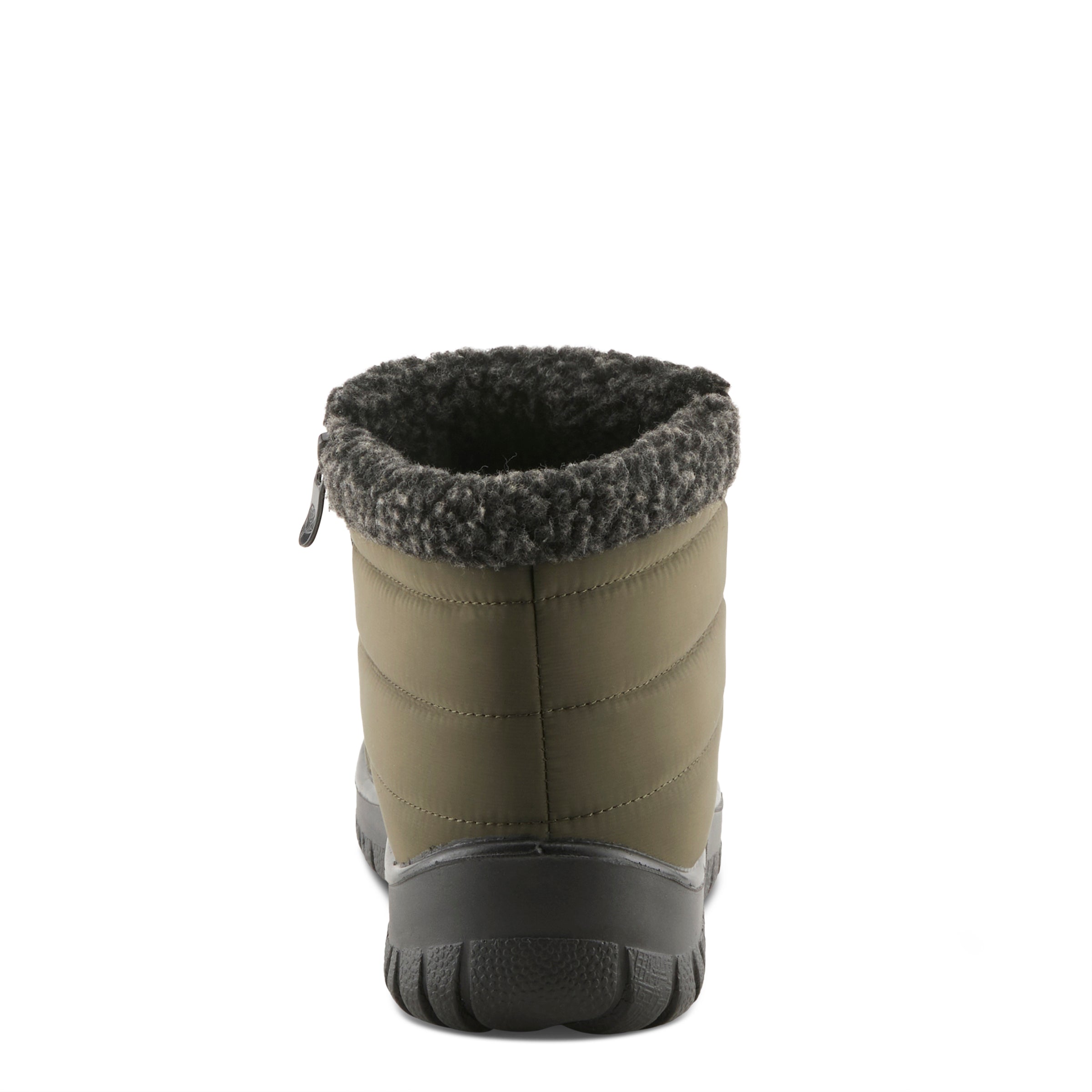 Waterproof nylon cold-weather bootie detailed with elastic stretch goring with exposed faux fur trim featuring a fold-out metal ice grip at the base of the heel.