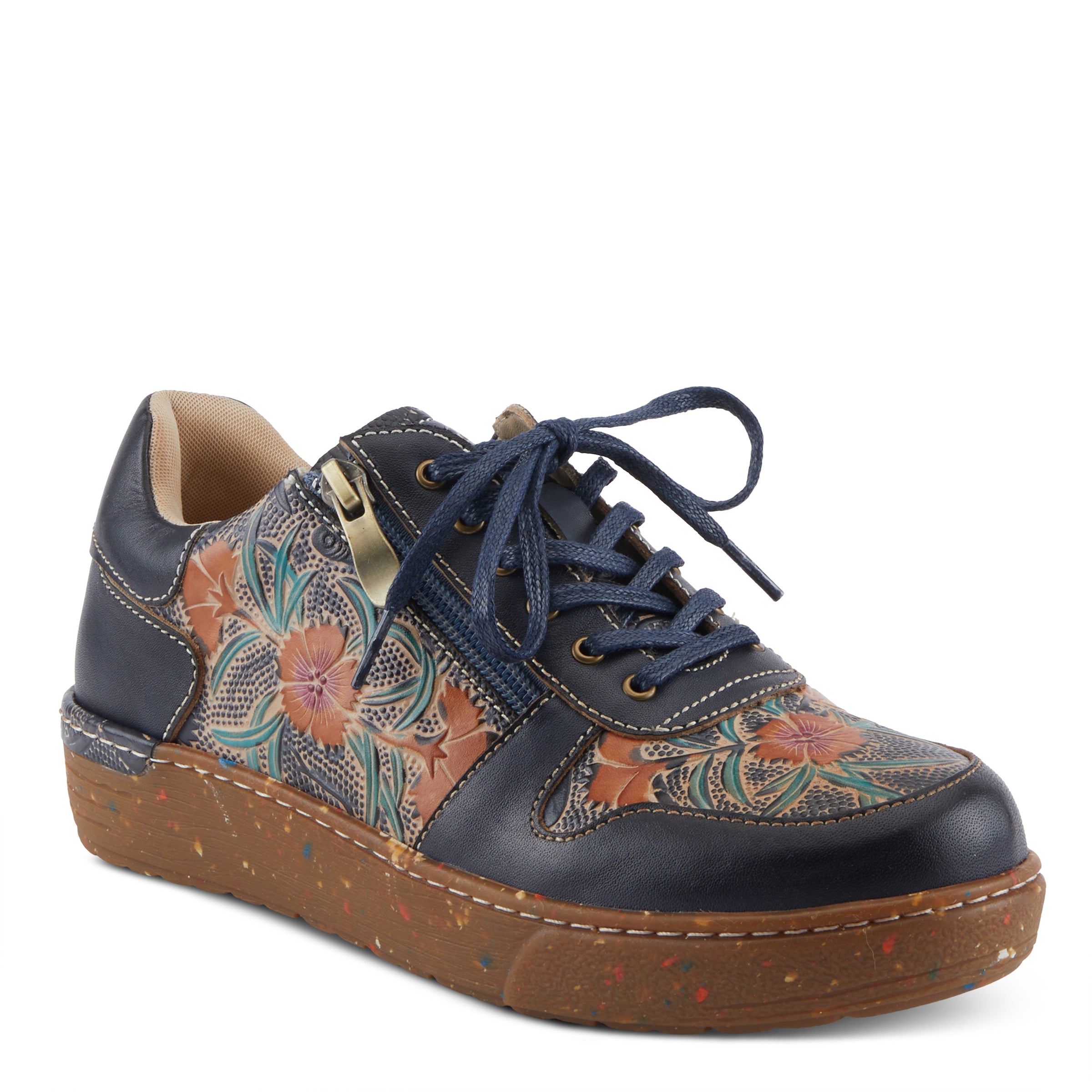 - Lace-up design with convenient outside zipper