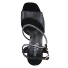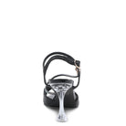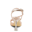 Elegant open-toe back strap pump featuring dazzling light charcoal and AB crystals on a unique sculpted clear heel and comfort sole.