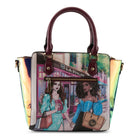 Capture the essence of urban elegance with the In The City Satchel Handbag. Crafted from 100% premium PU leather, this stylish handbag features a vibrant design showcasing two ladies enjoying the hustle and bustle of the city.