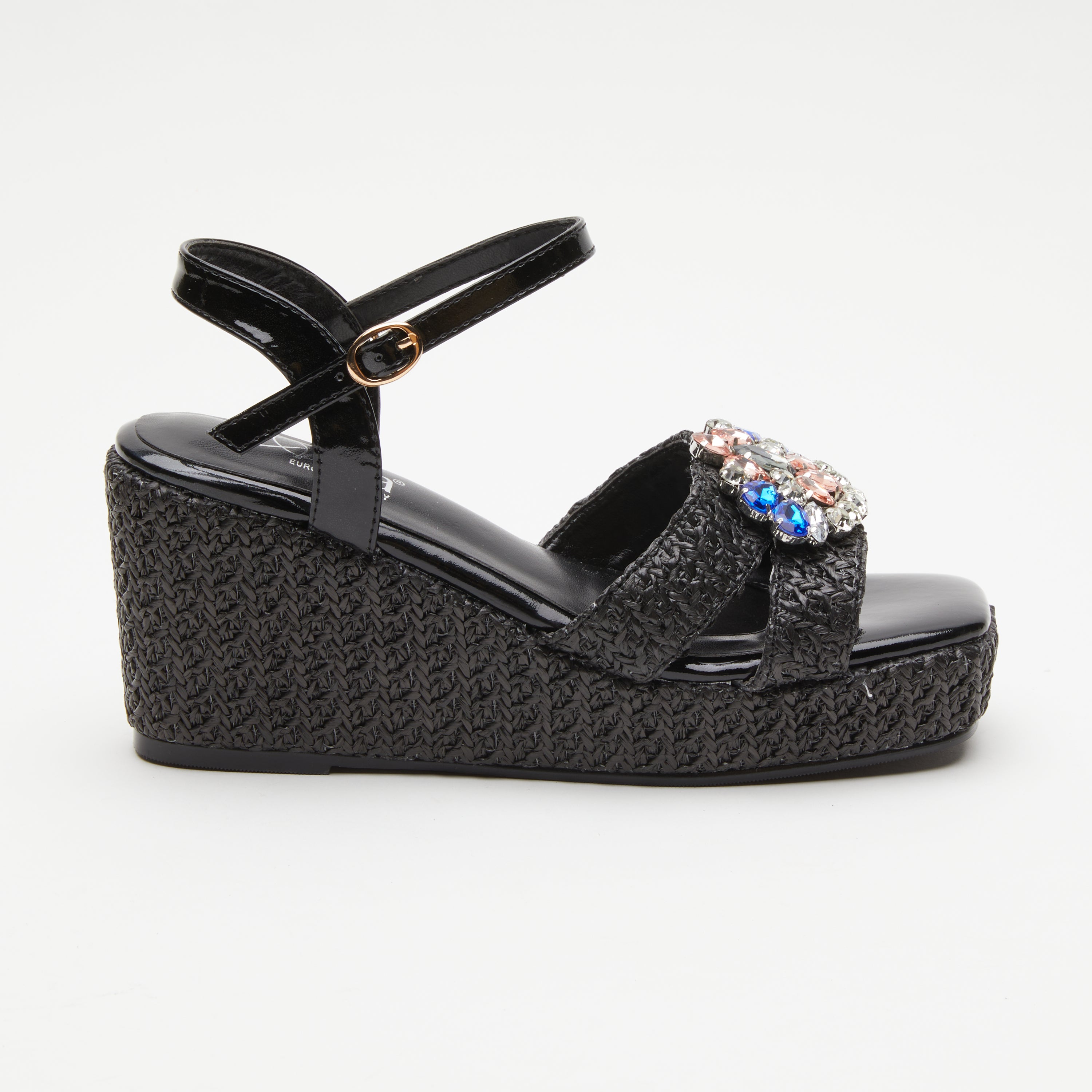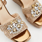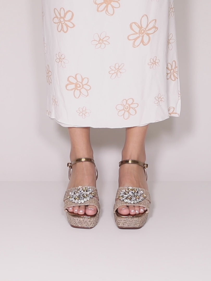 These romantic and elegant platform heels are made for you. With our signature raffia wrapped heel design, jeweled front piece and padded insole, you will be stepping in comfort and style.