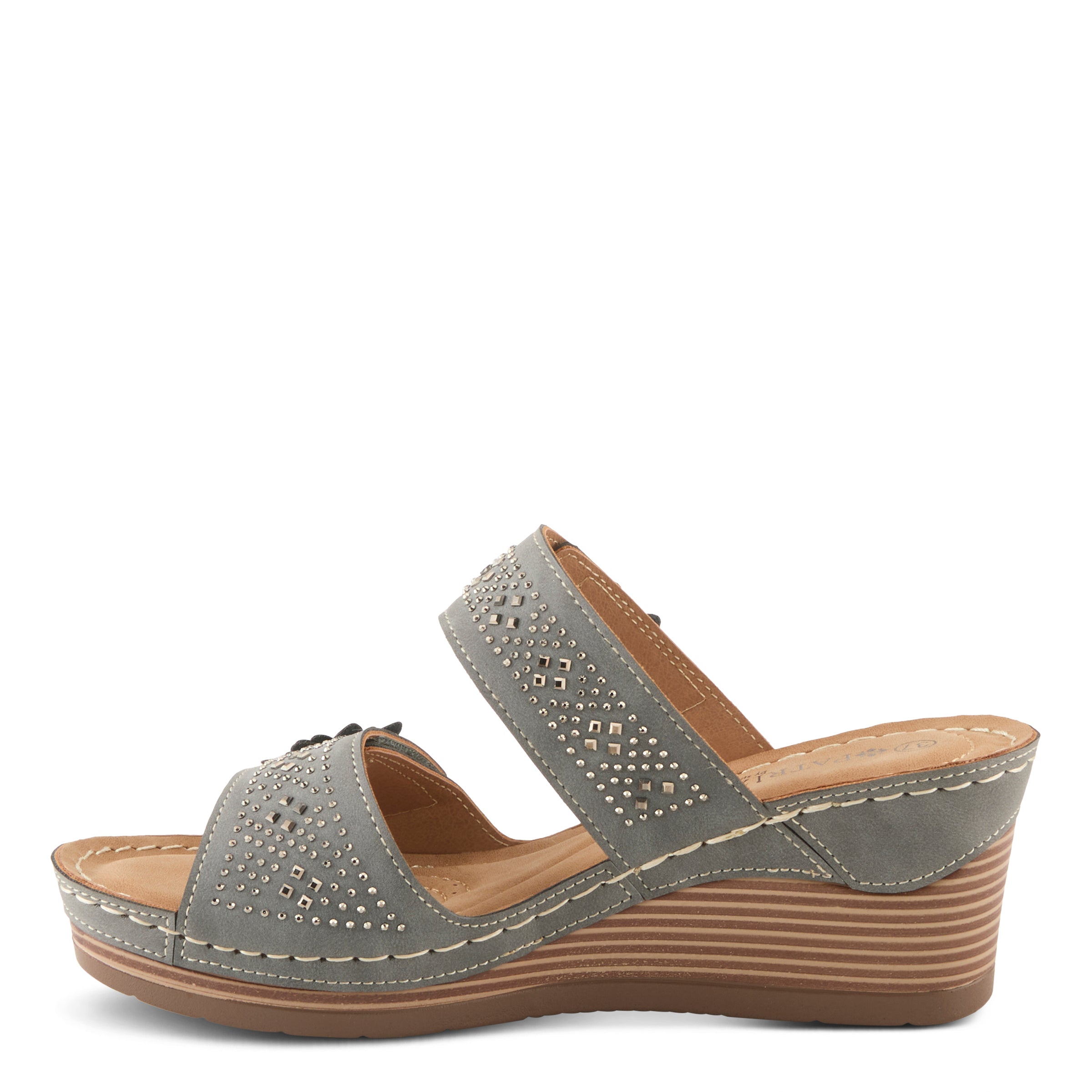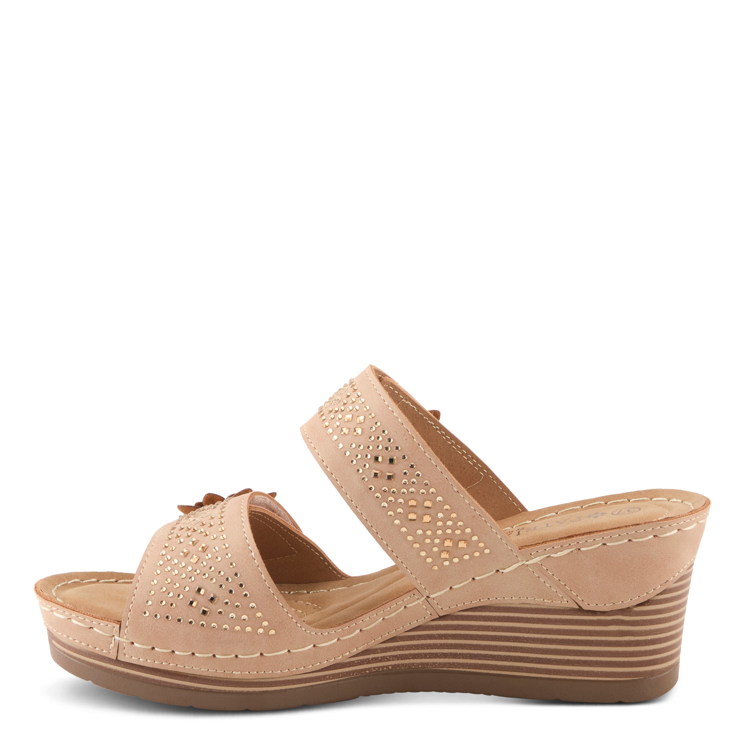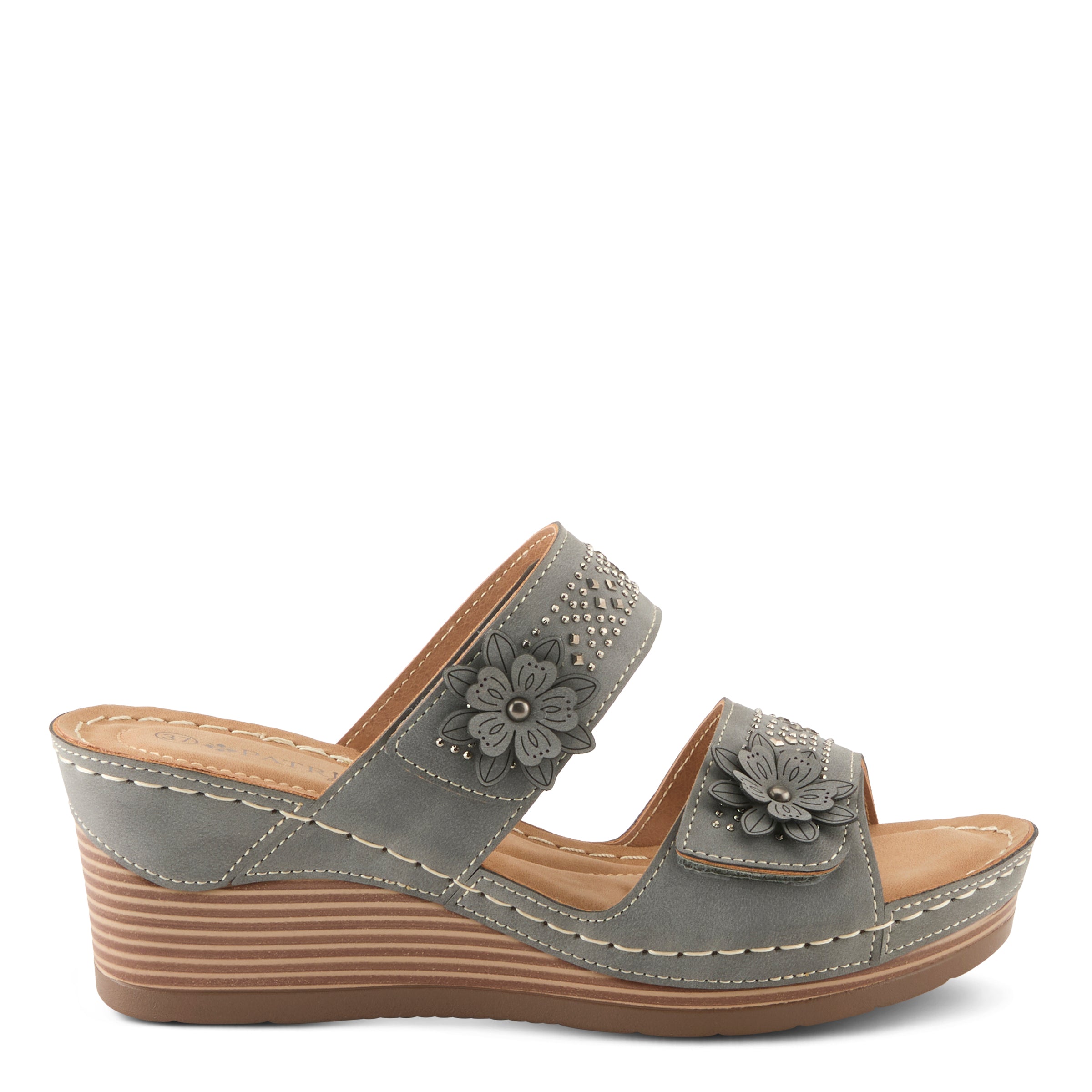 Infuse your ensemble with feminine charm with our slip-on wedge sandal, featuring applied floral accents and delicate crystals. These lightweight sandals are your new go-to summer essential.