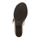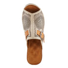 Elevate your style with our wedge slide sandal featuring a chic perforated leather upper and a sophisticated buckle detail.