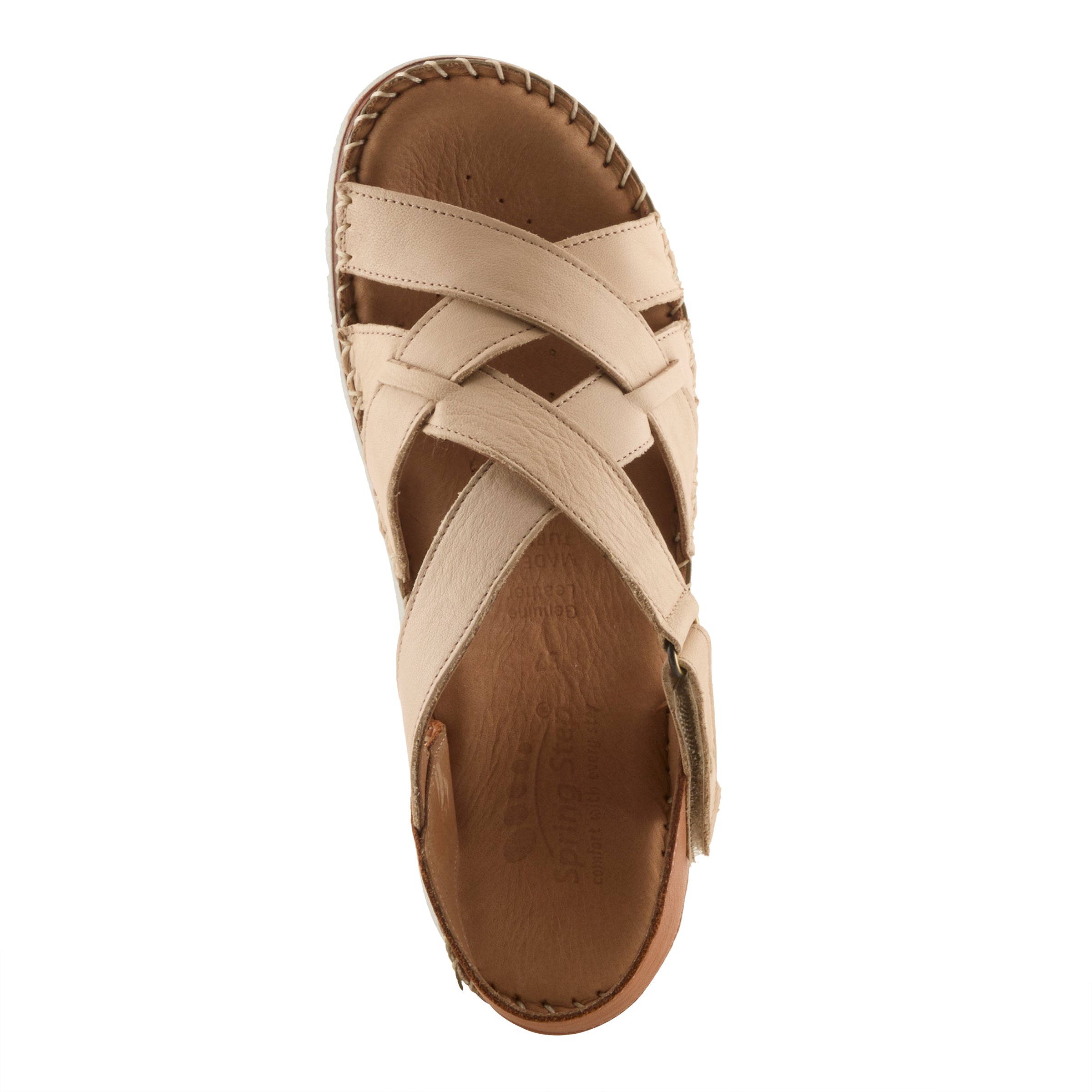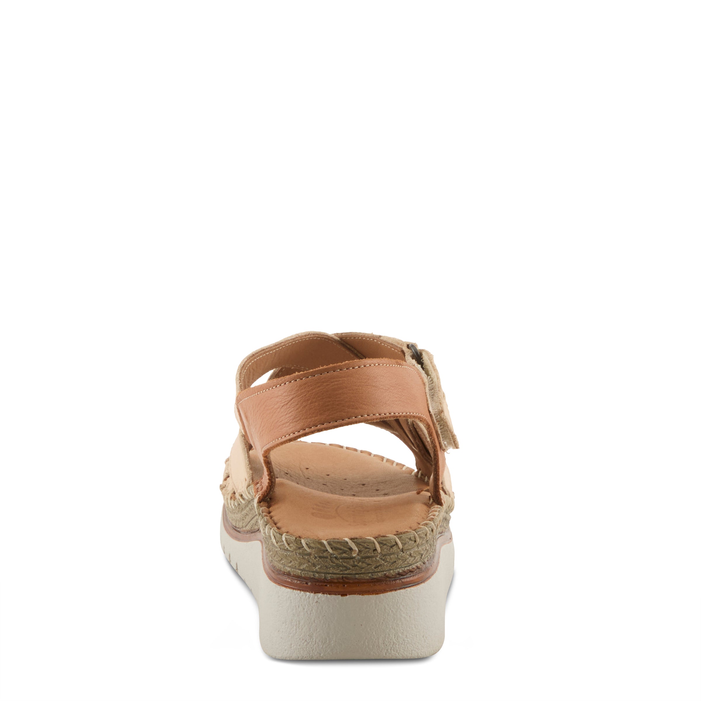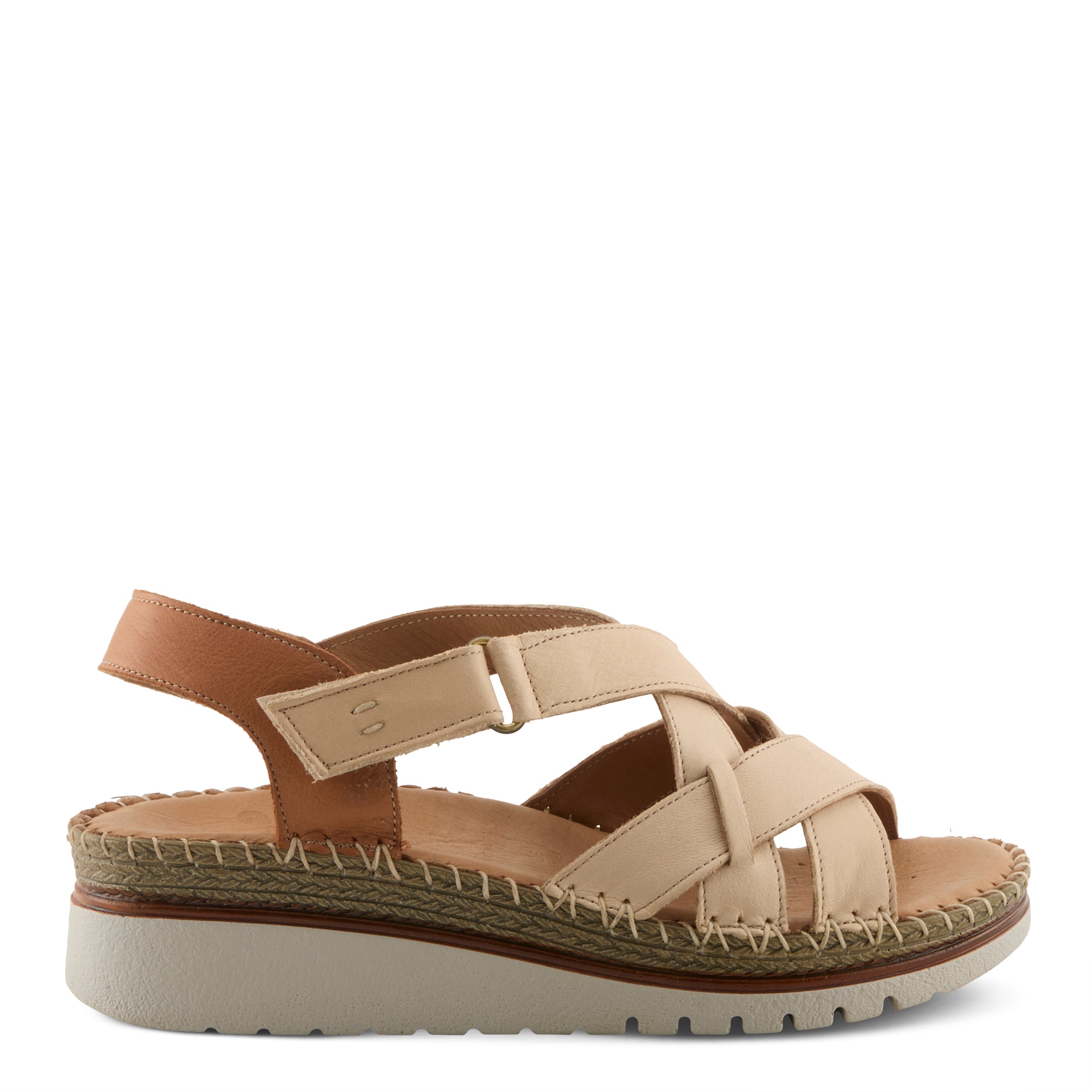 - With its elegant two-tone design and touch of handcrafted detail, this sandal elevates relaxed warm weather looks.