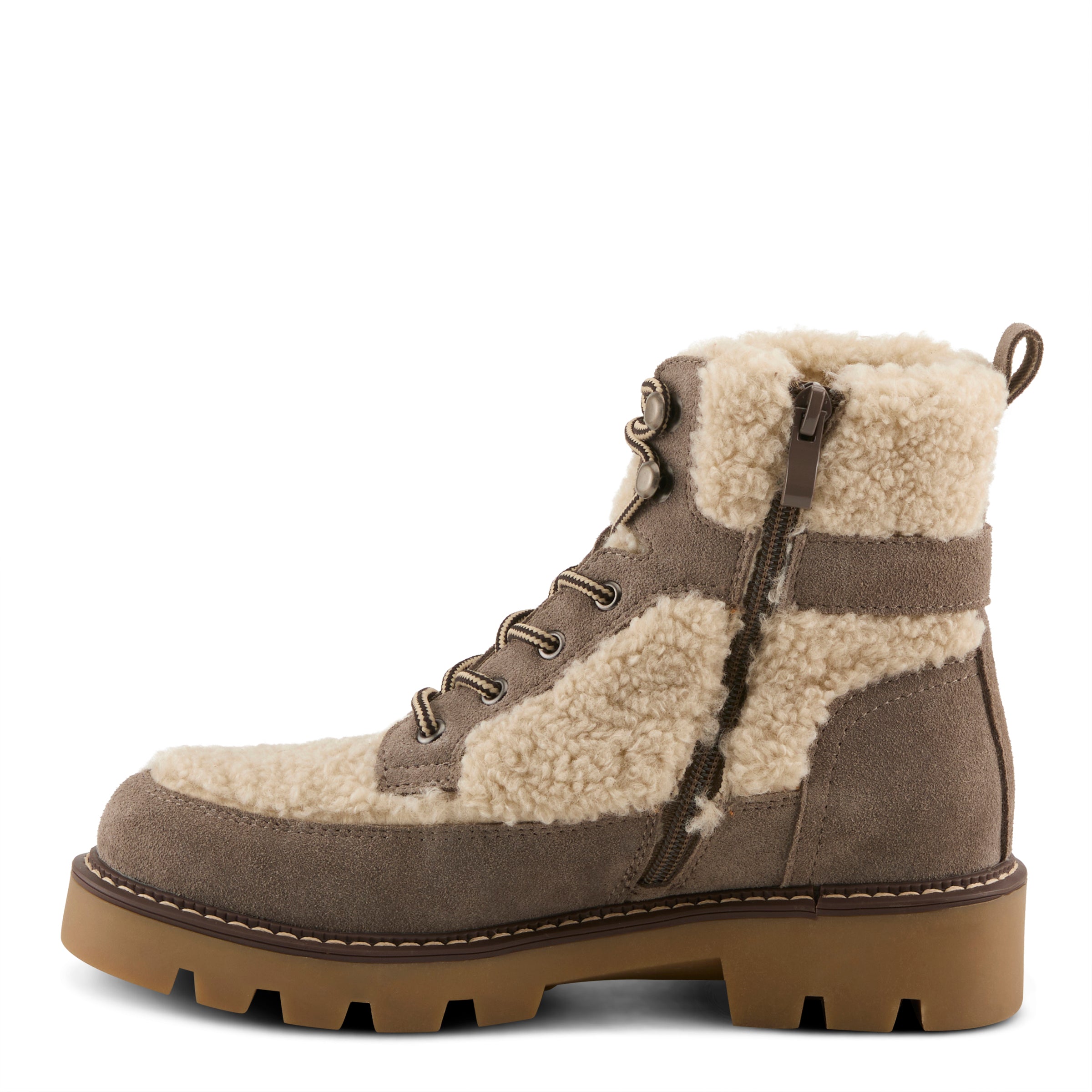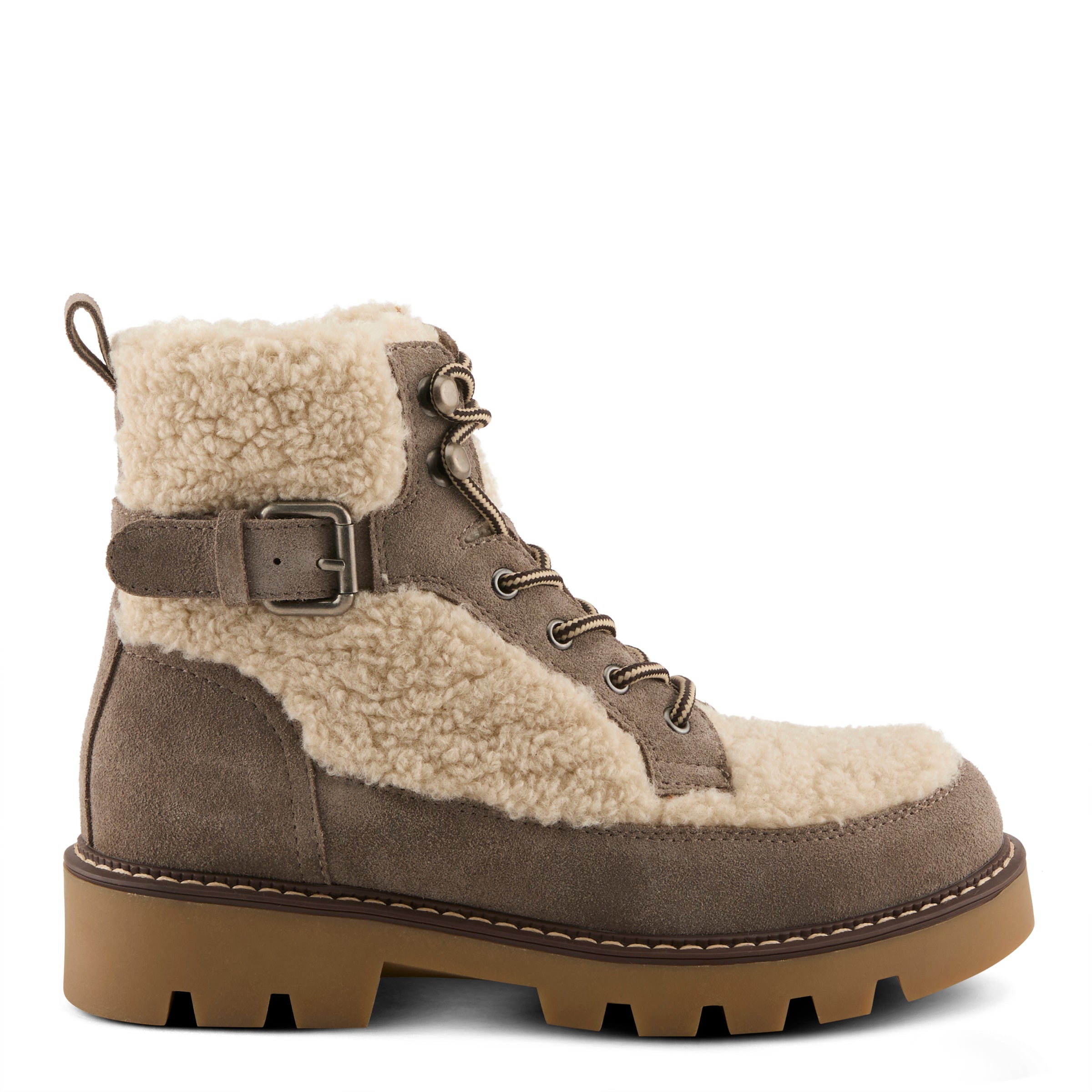Brave the cold in style with a rugged yet cozy suede and sherpa combo bootie designed for warmth and durability. Featuring a plush sherpa exterior with suede paneling, this bootie exudes a chic winter-ready look. The inside zipper closure allows for easy on-and-off wear, while the soft sherpa and faux fur lining provide all-day warmth and comfort. Contrast stitching on the welt adds a handcrafted touch, and the sturdy lug sole ensures superior traction and stability. Perfect for cold-weather adventures or casual outings, this bootie blends fashion and function effortlessly.