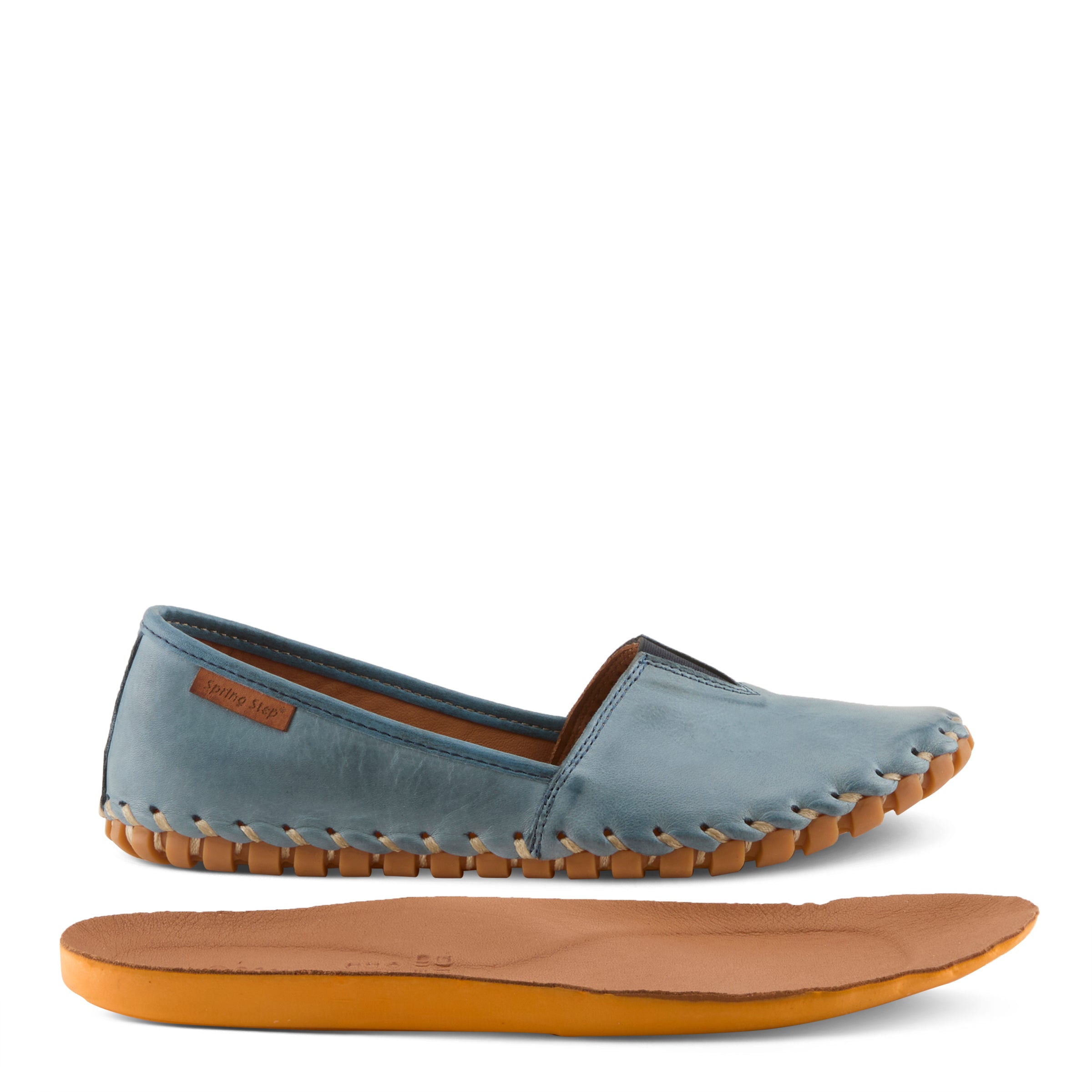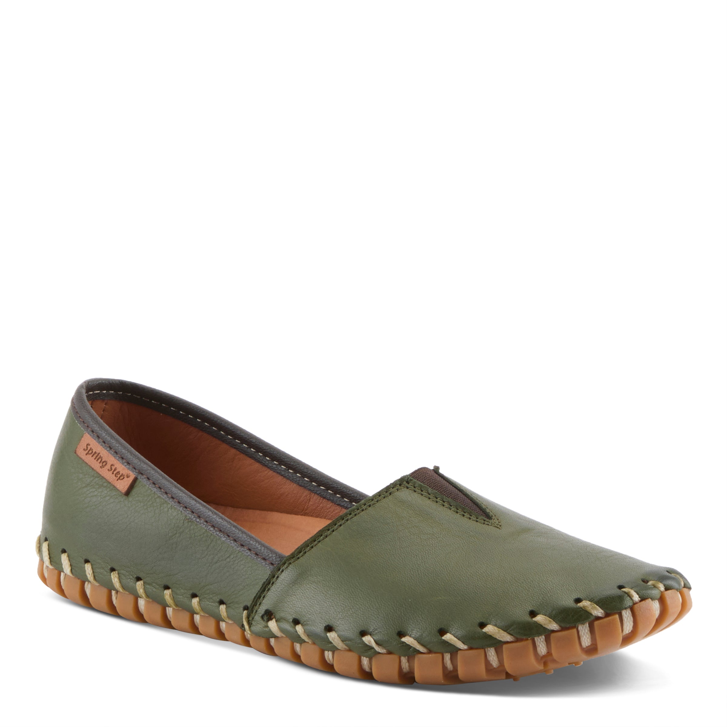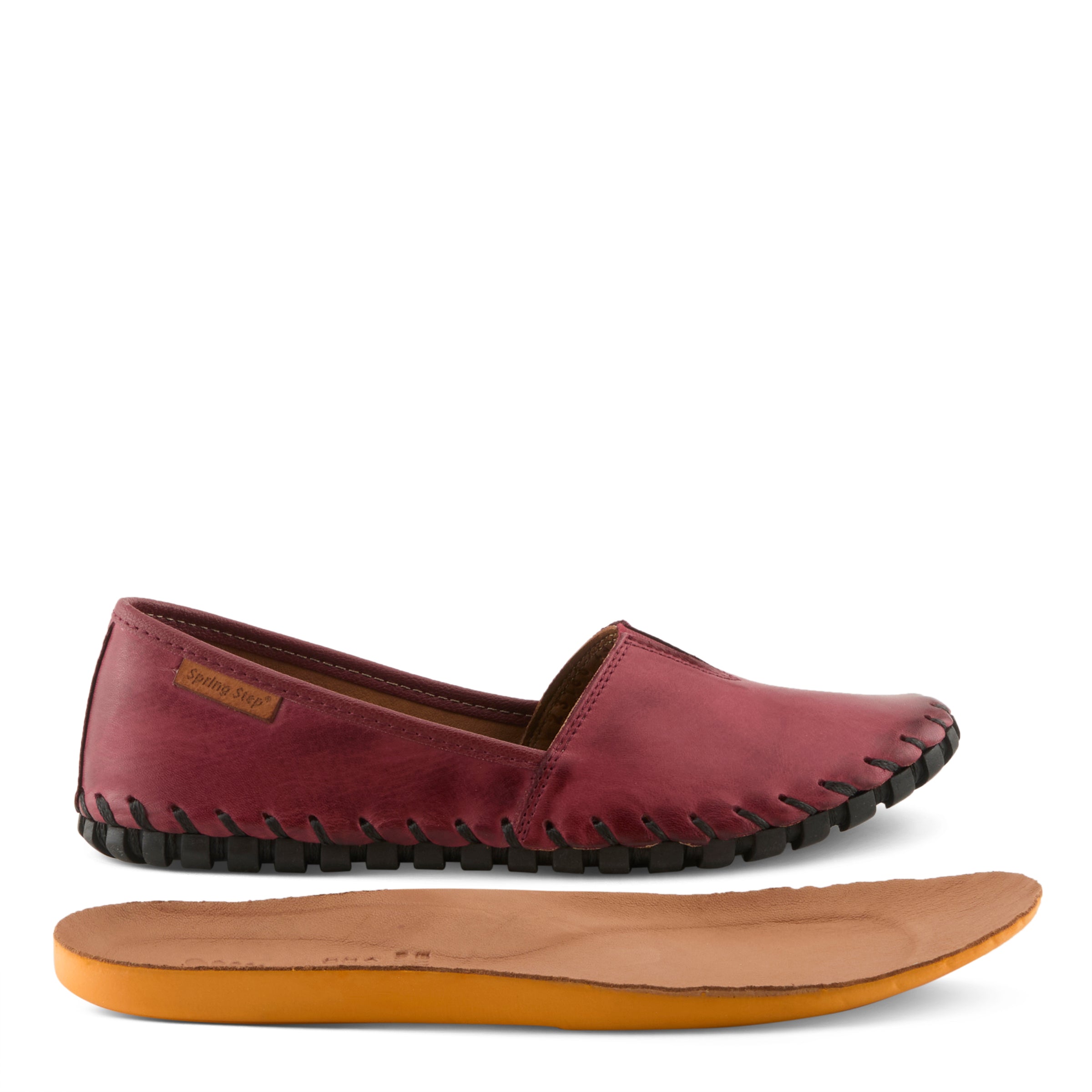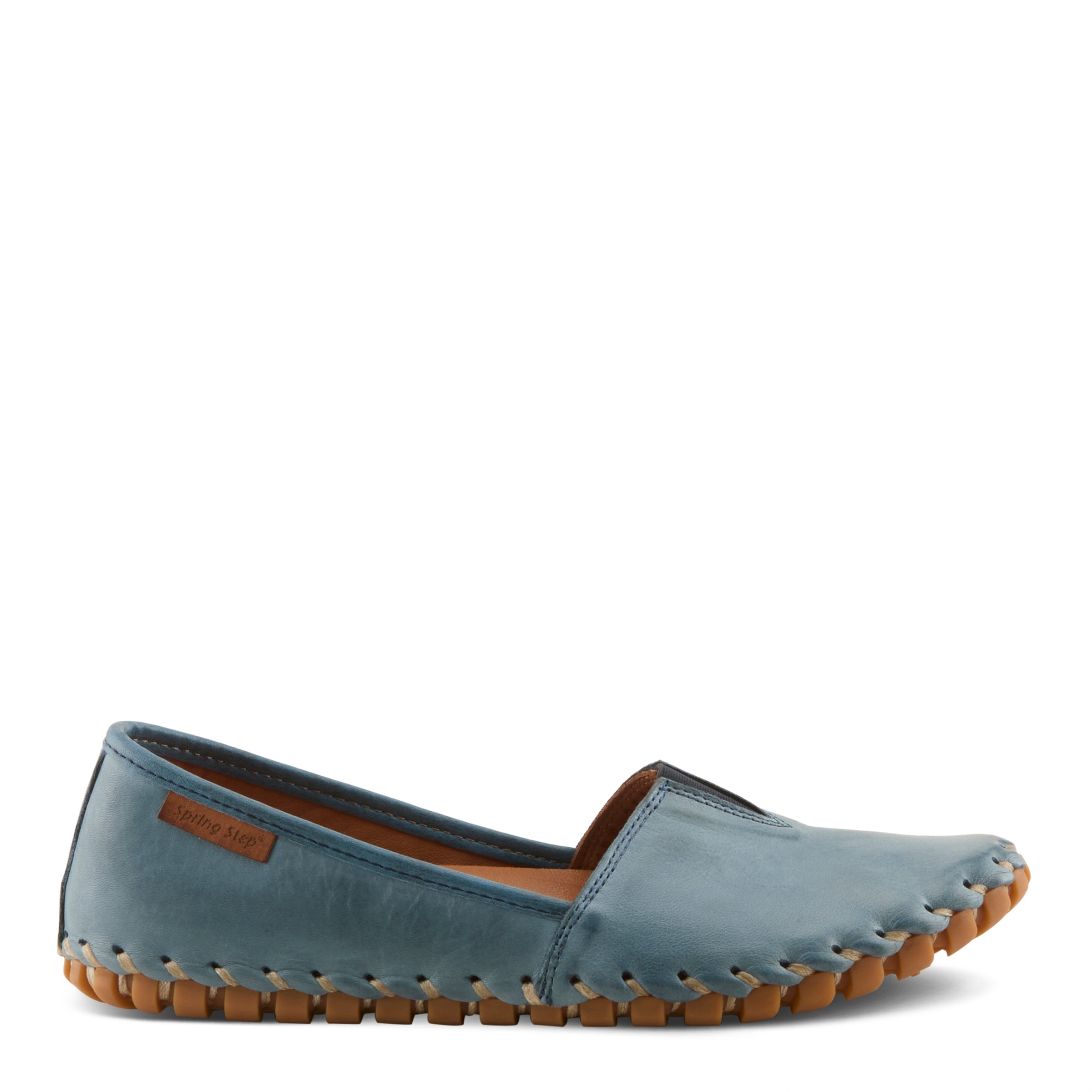 Our Spring Step KATHALETA premium leather slip-on shoe features a center notched vamp with a V-shaped stretch elastic insert for simple ease of wear.