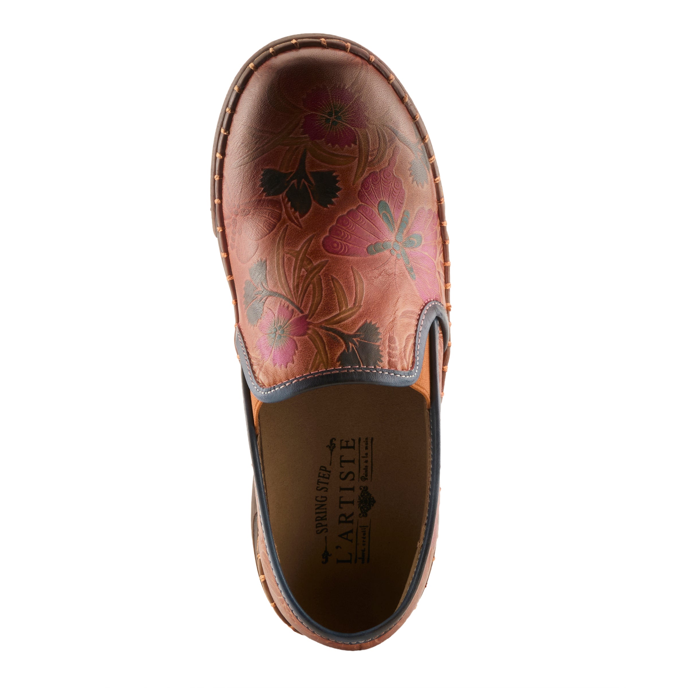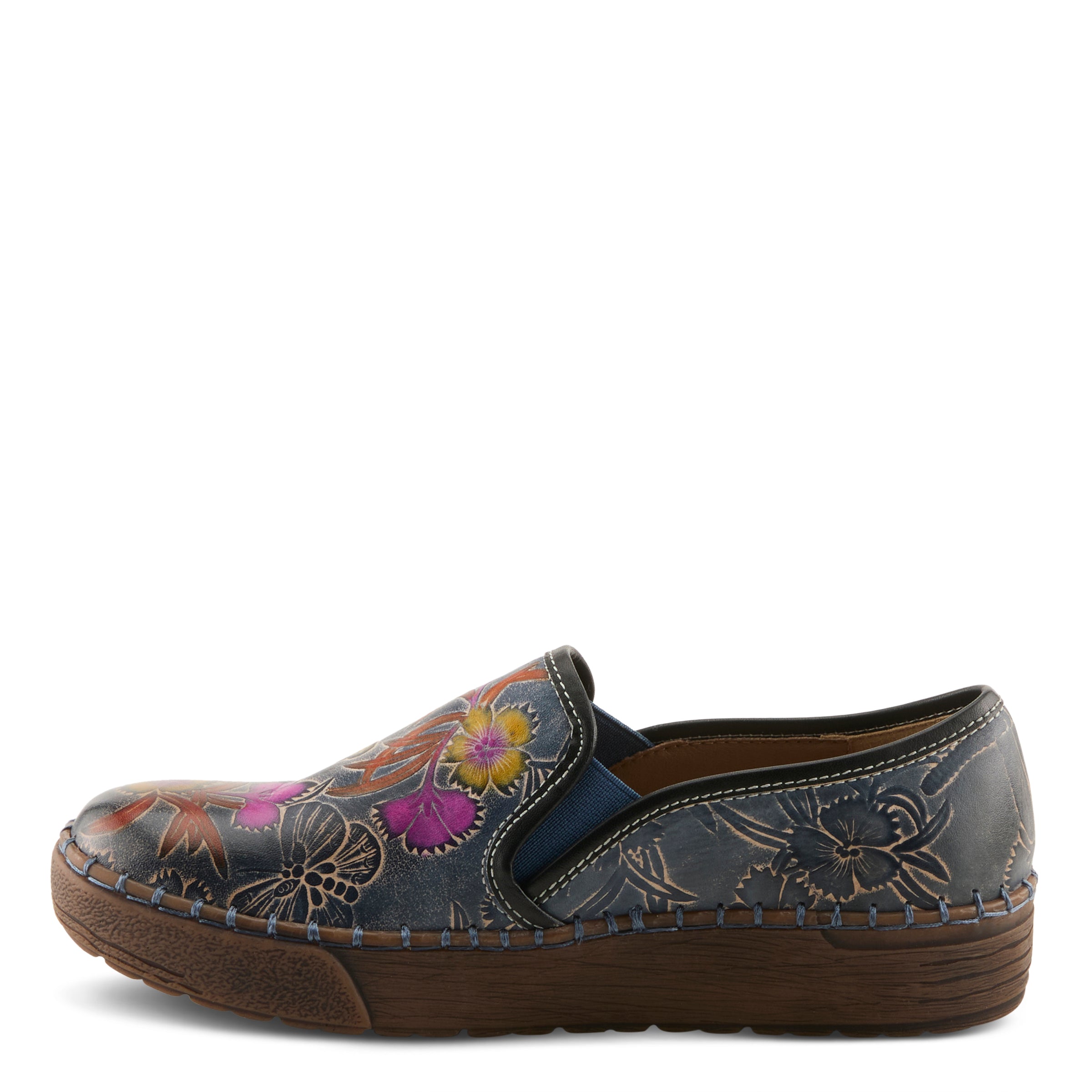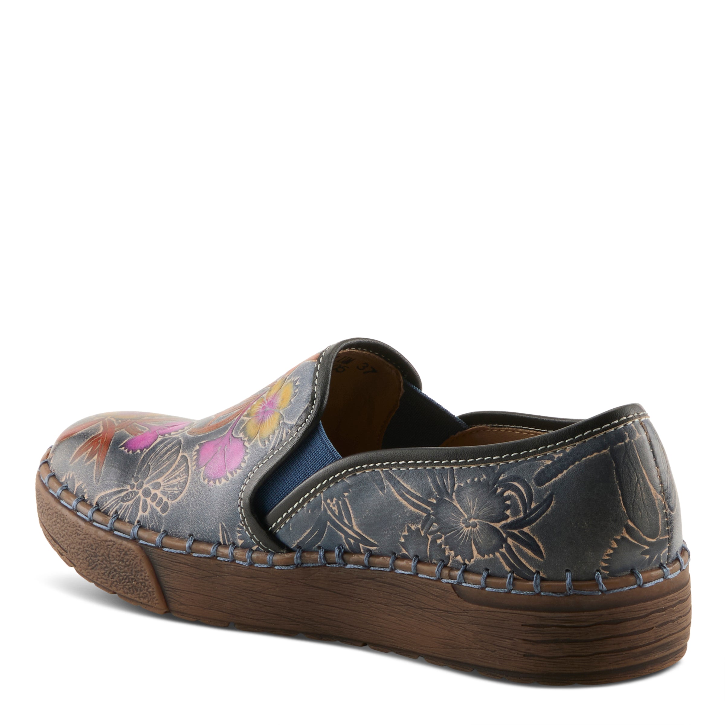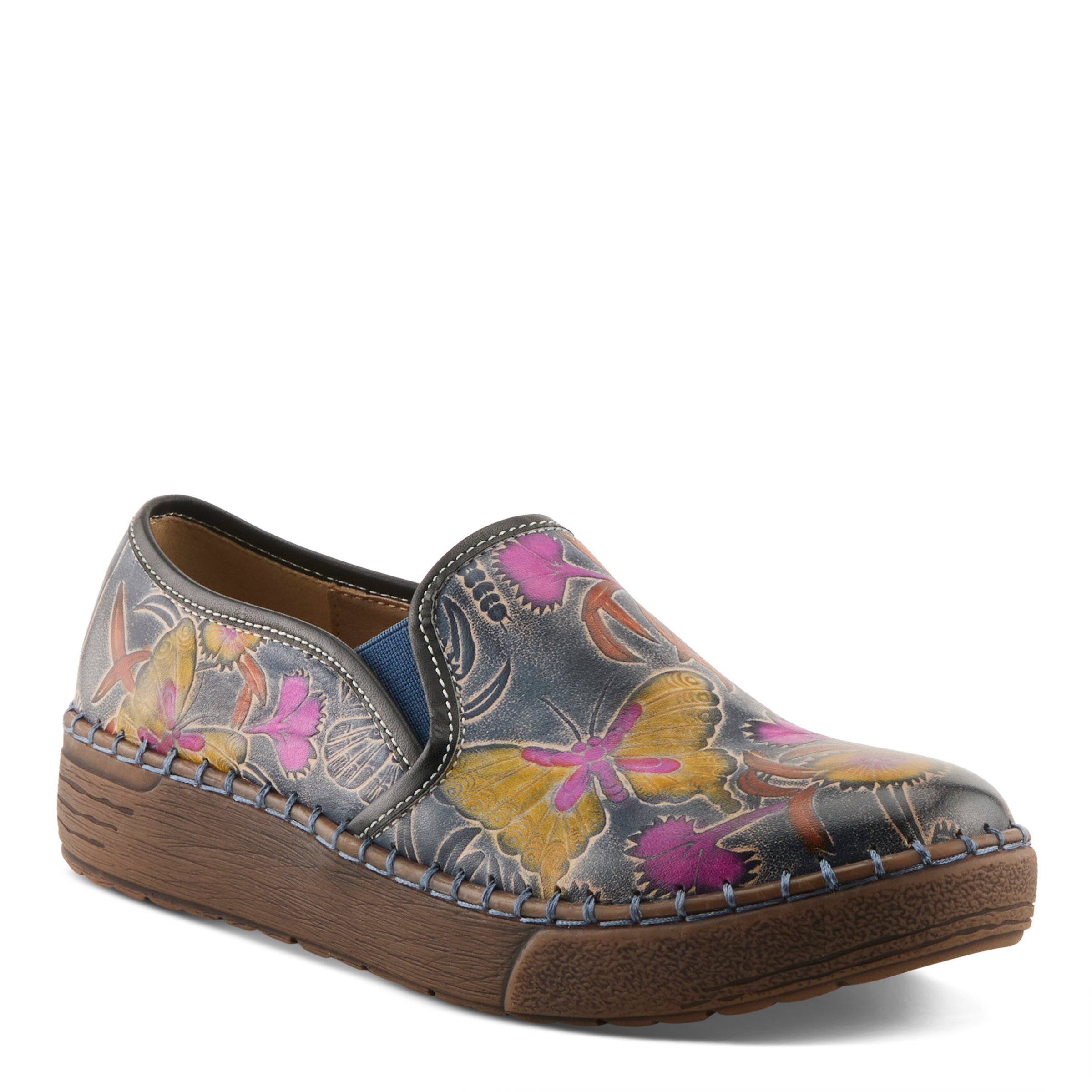 Step into a world of artistic expression and comfort with this butterfly-inspired slip-on. Featuring a luxurious hand-painted leather upper, this shoe is a perfect blend of boho-chic and modern sophistication. Thoughtfully designed with burnished elements for depth and dimension, it exudes a unique, handcrafted feel. The twin stretch side goring ensures a flexible fit, while the wedge outsole provides all-day comfort. Whether youâre strolling through the city or making a statement, this effortlessly stylish pair is your go-to for bold, expressive fashion.