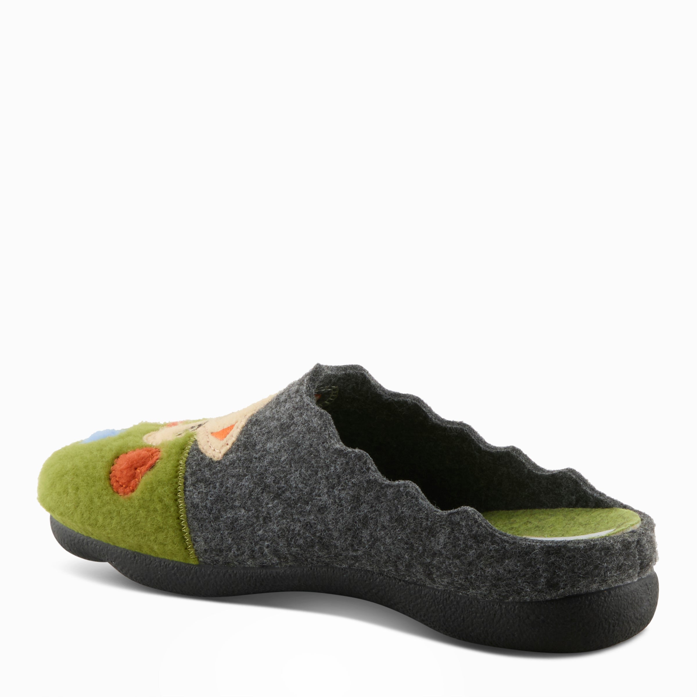 - The fun footprint-inspired outsole ensures stability and support as you move around your home.