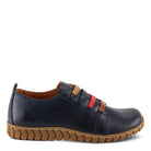 Experience great comfort with our leather shoe, featuring a leather-lined interior, elastic laces covered with colorful leather, a flexible sole, removable footbed, and convenient pull tab.