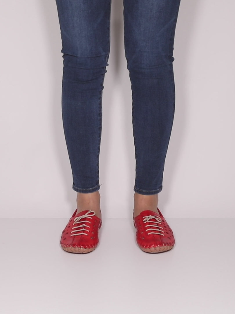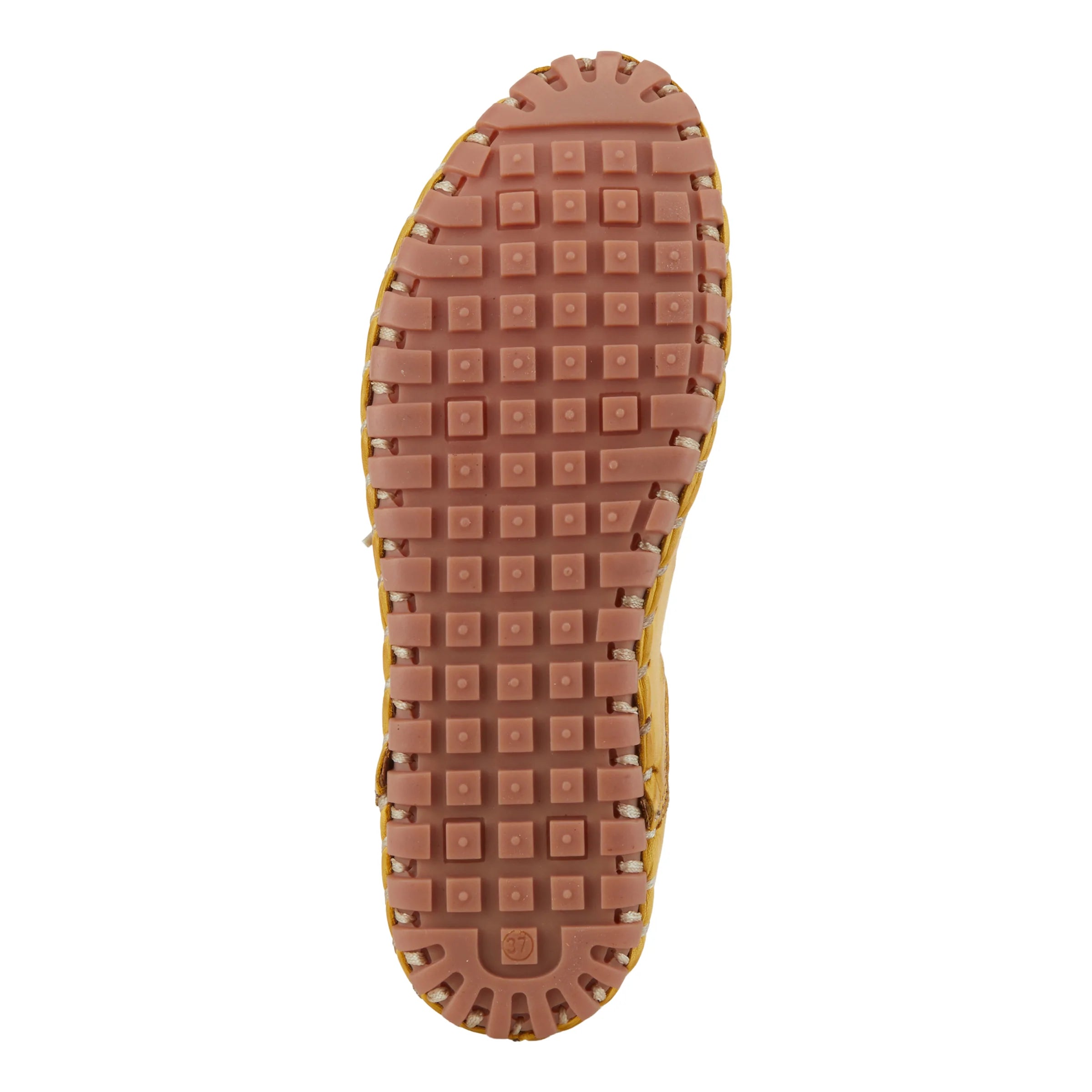 Circular laser cutout on the vamp and exposed contrast stitch trim with elastic laces for a perfect fit. Super lightweight, flexible, rubber outsole on the opanka construction.