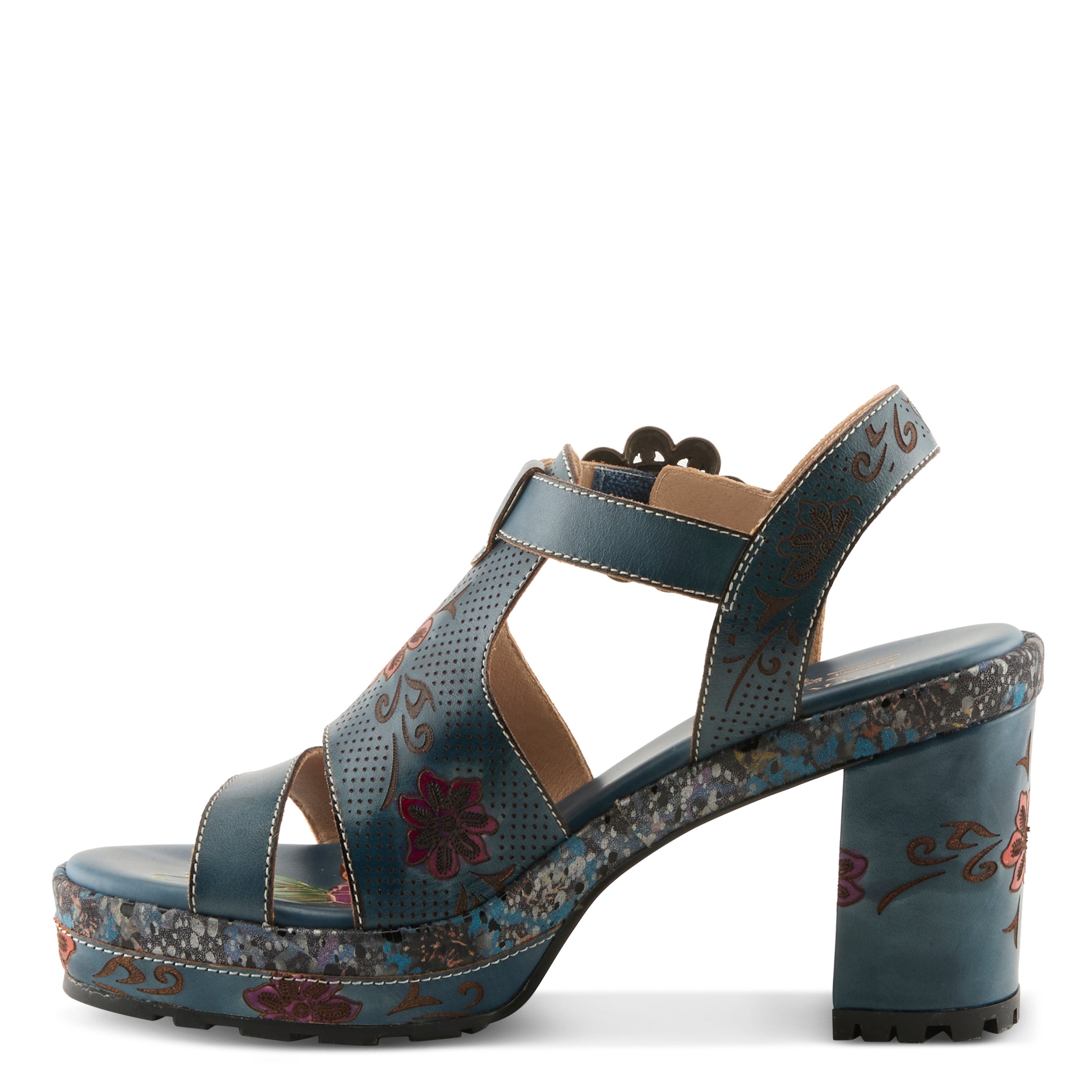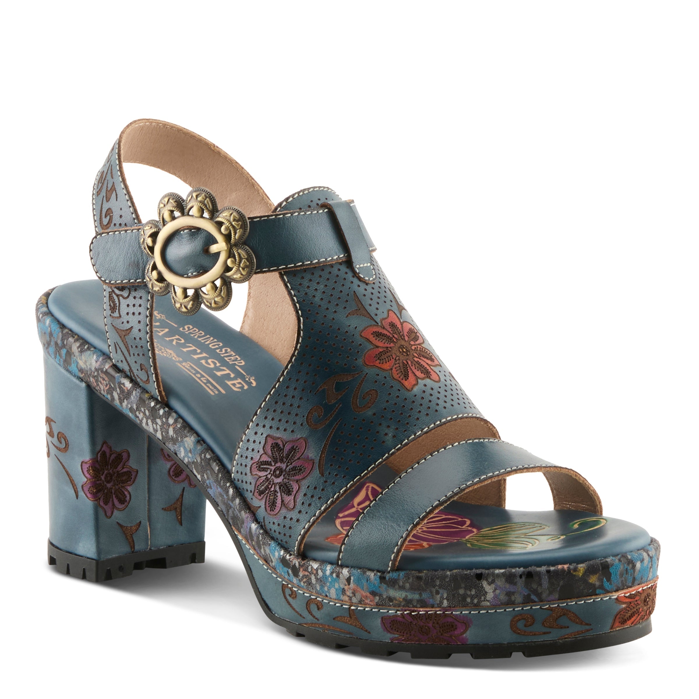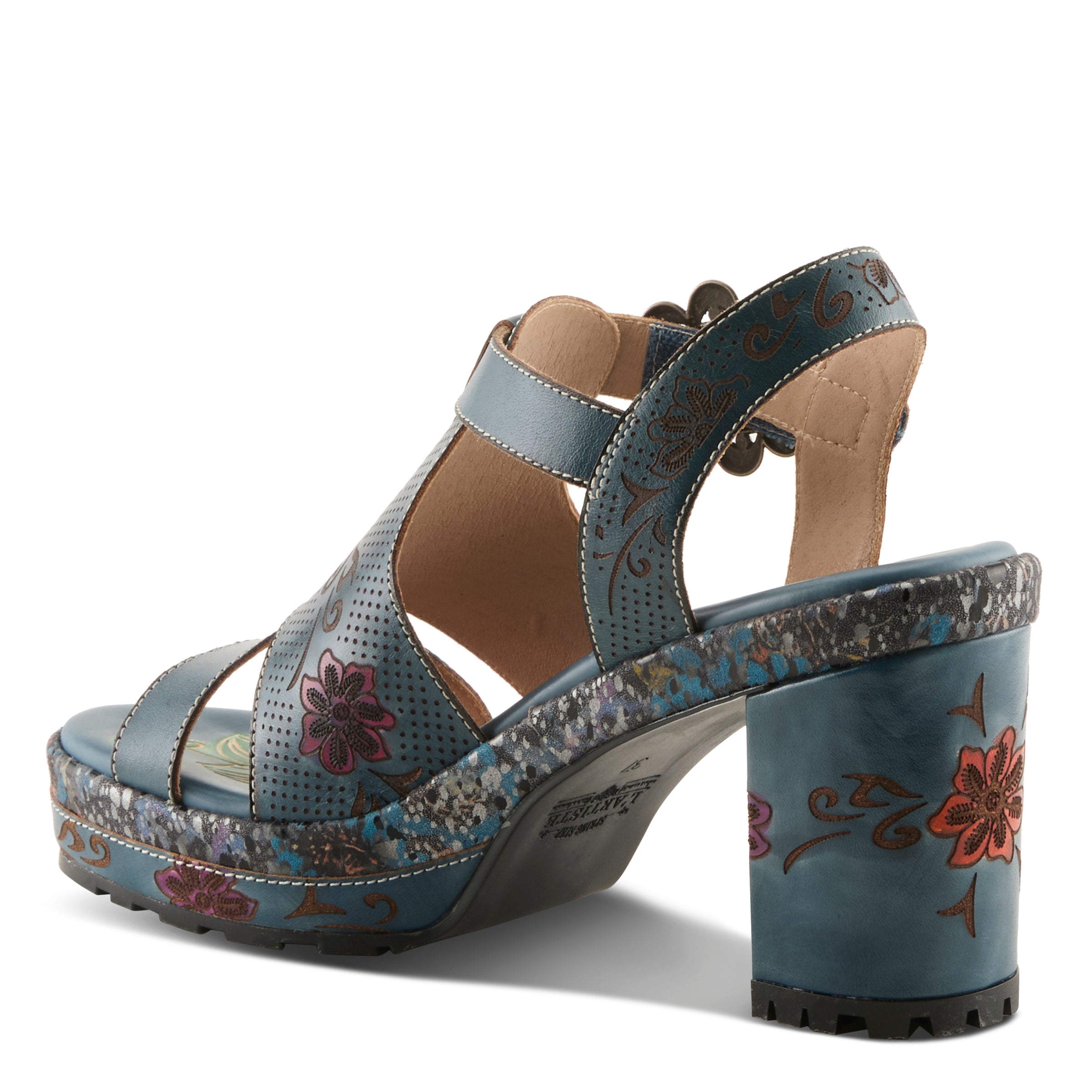 - Bold hand-painted leather upper with modern floral design