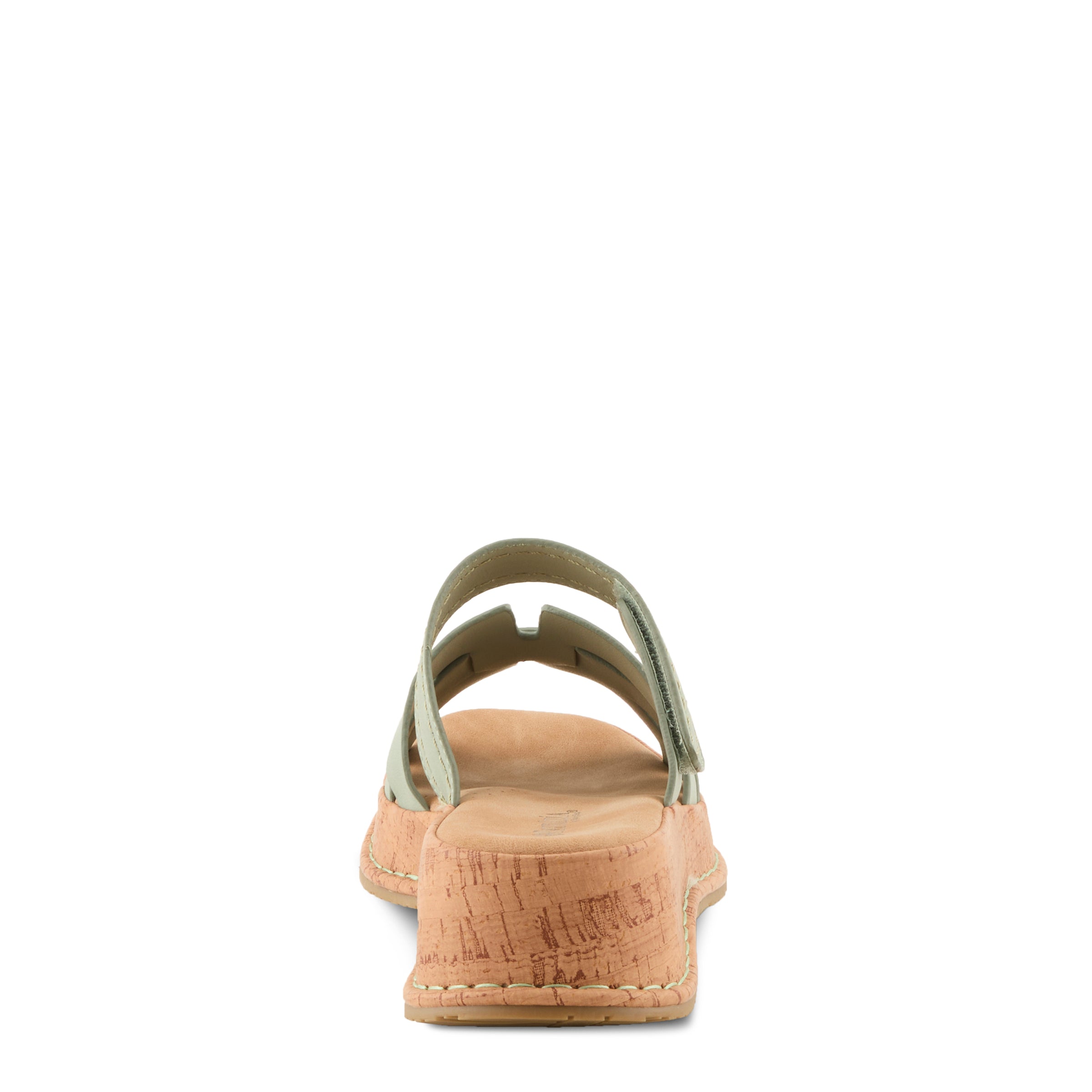 Bring together style and comfort with this chic cork-bottom wedge sandal crafted in soft faux nubuck leather. Designed with a modern cut-out strap silhouette, it offers a cool, trendy look that’s versatile for everyday wear. The cork-inspired wedge delivers a natural, lightweight feel, while the cushioned footbed with built-in arch support ensures all-day comfort you can count on.