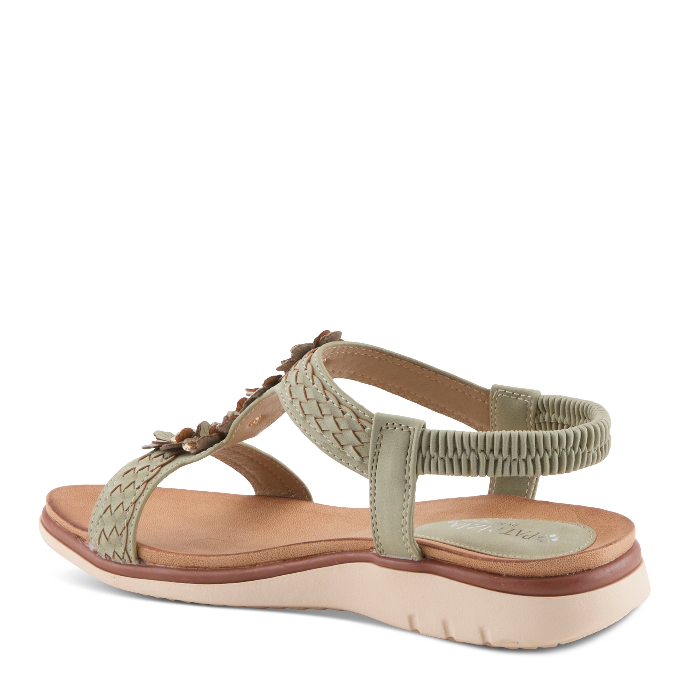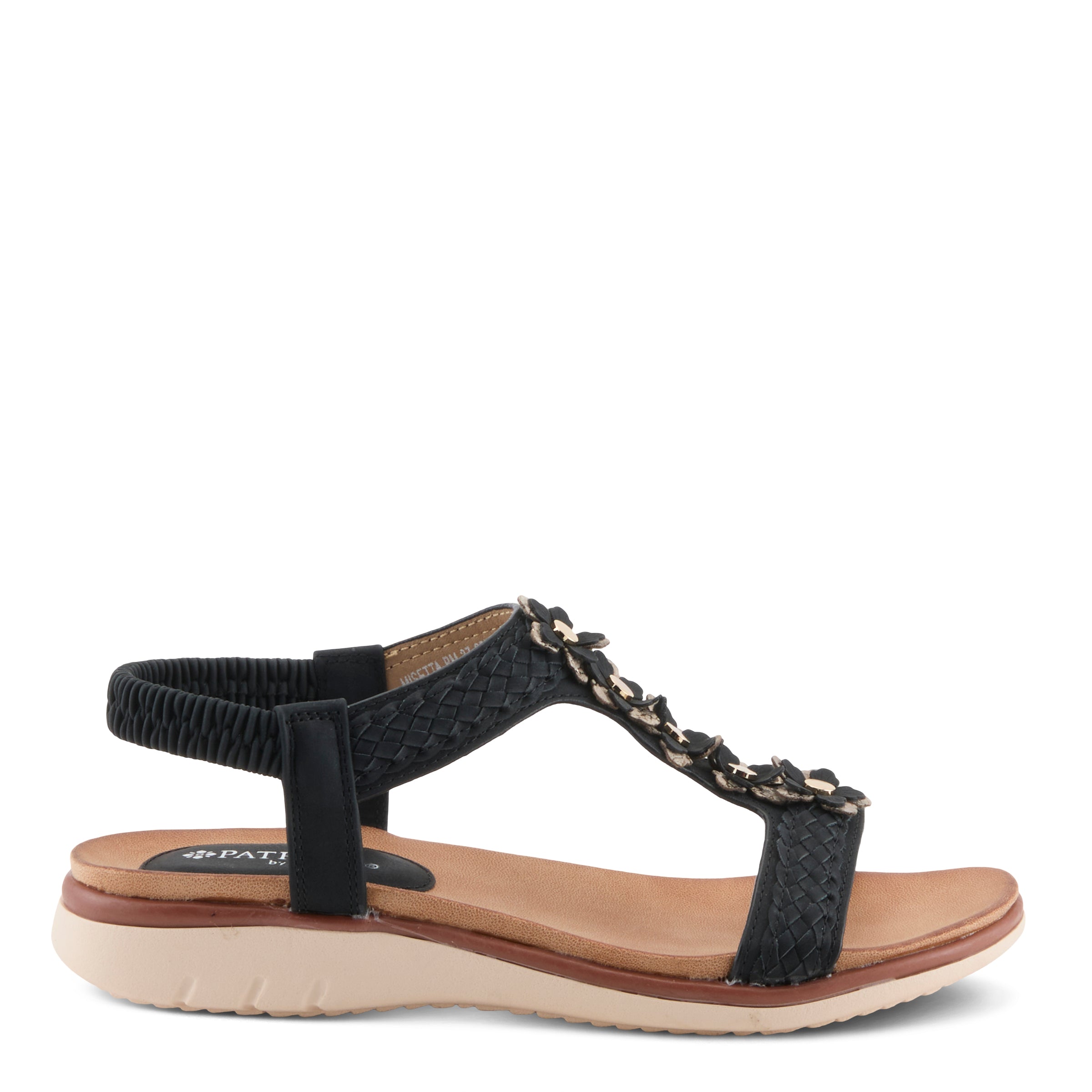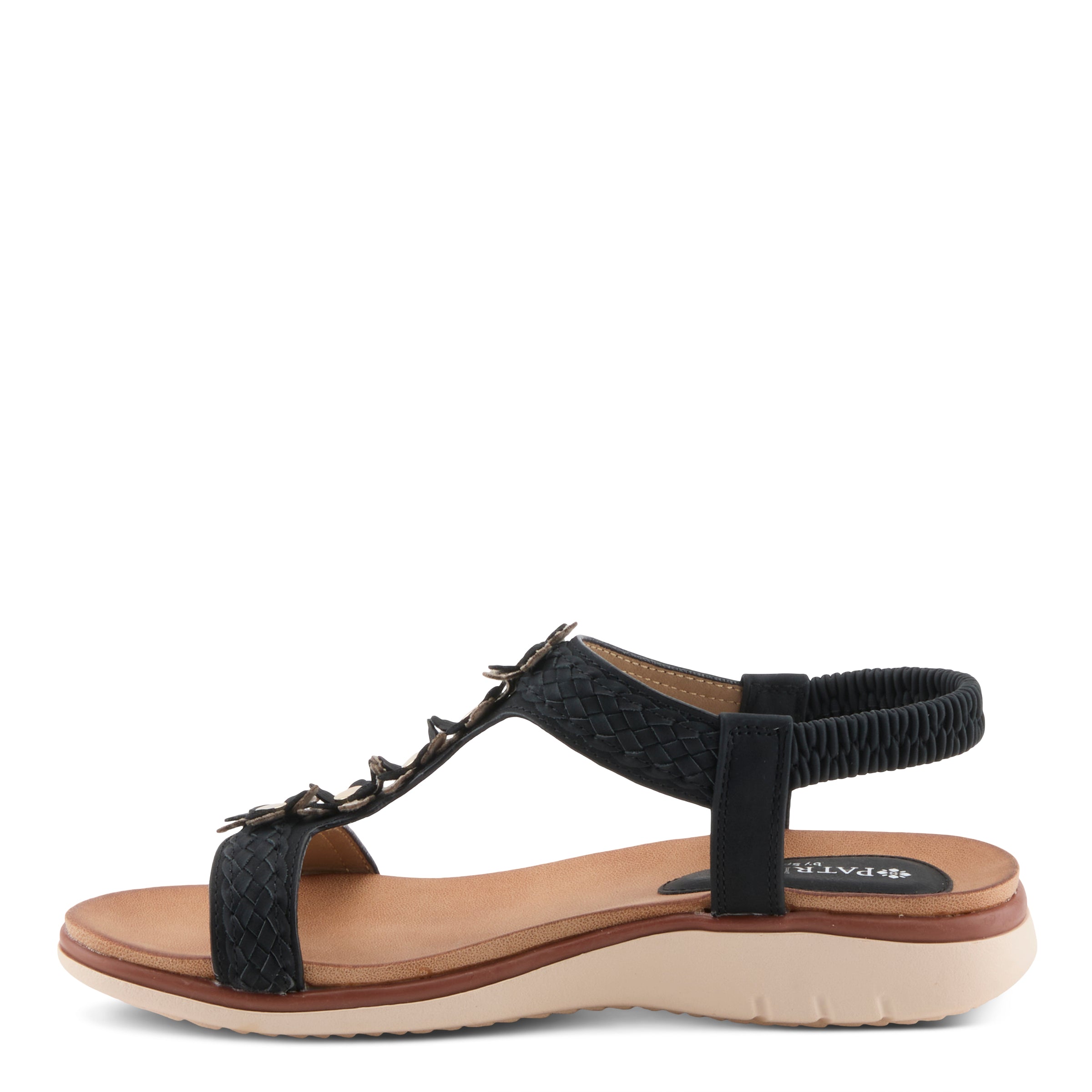 Step into chic summer style with this fashion-forward sandal that blends comfort and elegance in the perfect way. Crafted in faux leather, it features a T-strap design accented with delicate floral appliqués for a feminine, trend-right look. The braided detailing on the straps adds an artisanal touch, while the elastic backstrap ensures easy adjustability and a secure fit.