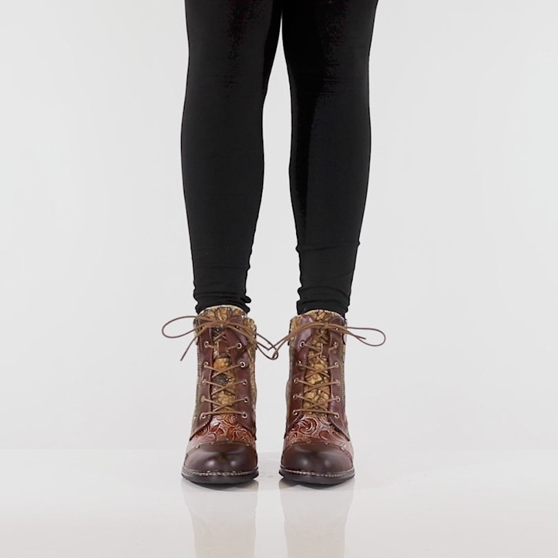 - Lace up style with an Inside functional zipper, outside decorative zipper