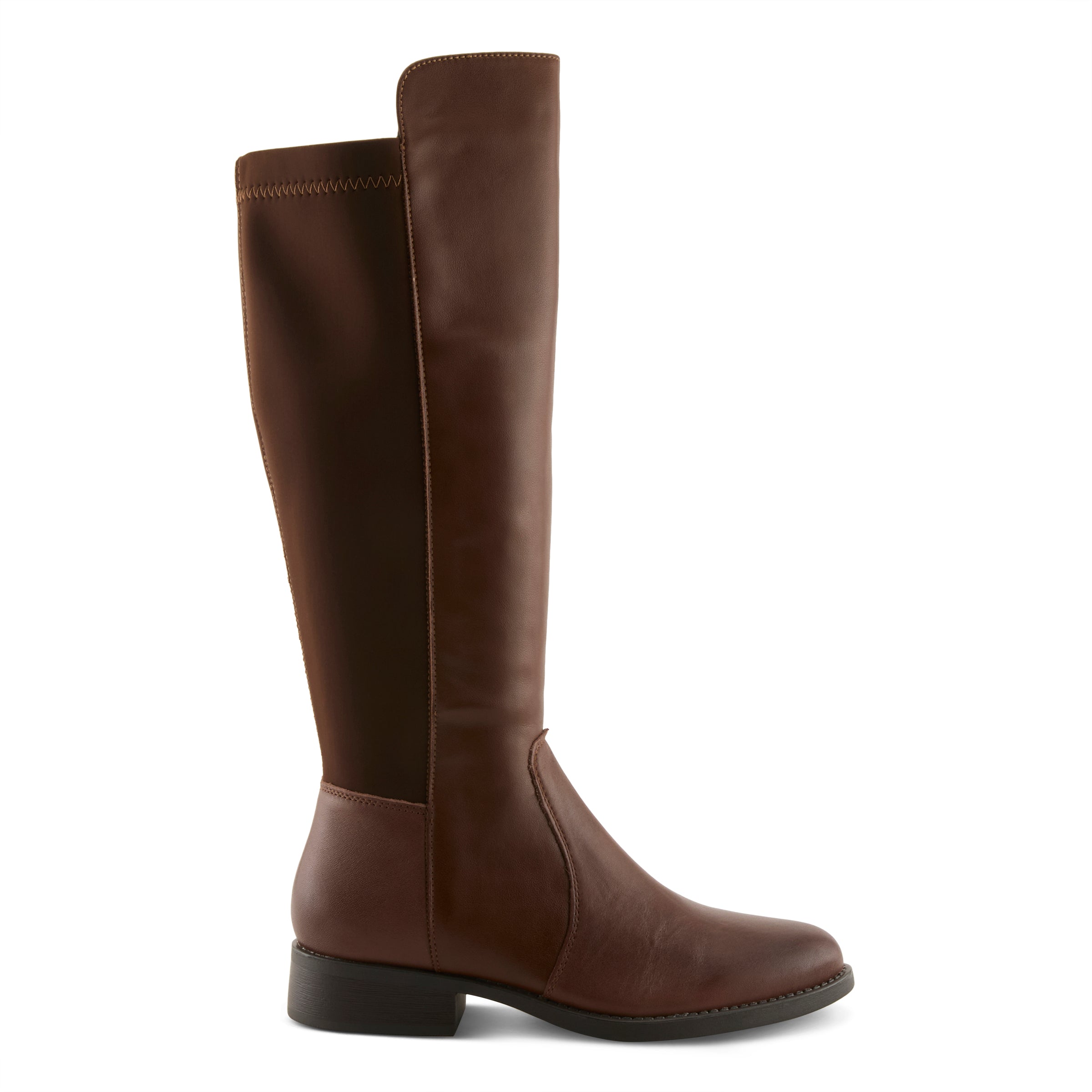Step into timeless elegance with this sleek tall boot crafted from smooth leather and stretch lycra for a flawless, contoured fit. Designed for both style and comfort, this boot features a soft and flexible back panel that adapts to your leg shape, ensuring a comfortable and secure feel. The inside zipper closure allows for easy on-and-off wear, while the low stacked heel provides stability and effortless sophistication. A cushioned insole delivers all-day comfort, and the flexible, slip-resistant outsole enhances traction. Perfect for pairing with dresses or jeans, this boot is a versatile wardrobe essential.