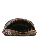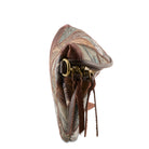 This favorite earned her star on the L’Artiste walk of fame for her versatility, good looks, and fun rock ‘n roll vibe. Semi-circular style with multicolored leather embossed and textured swatches, zig-zagged stitched together forming a ‘born to be worn’ cross body or fanny pack bag with a super soft multicolored, cottony smooth guitar strap for a close-in and personal hands-free wearing experience. Easy dual leather zipper pulls open on both sides to an astounding 3 compartments with additional wall zipper pocket and opposite walled open pouch. The bomb diggity and perfect combination of super cool good looks and a 5-star rating of functionality! Protective dust bag included. Imported.