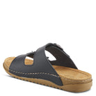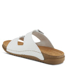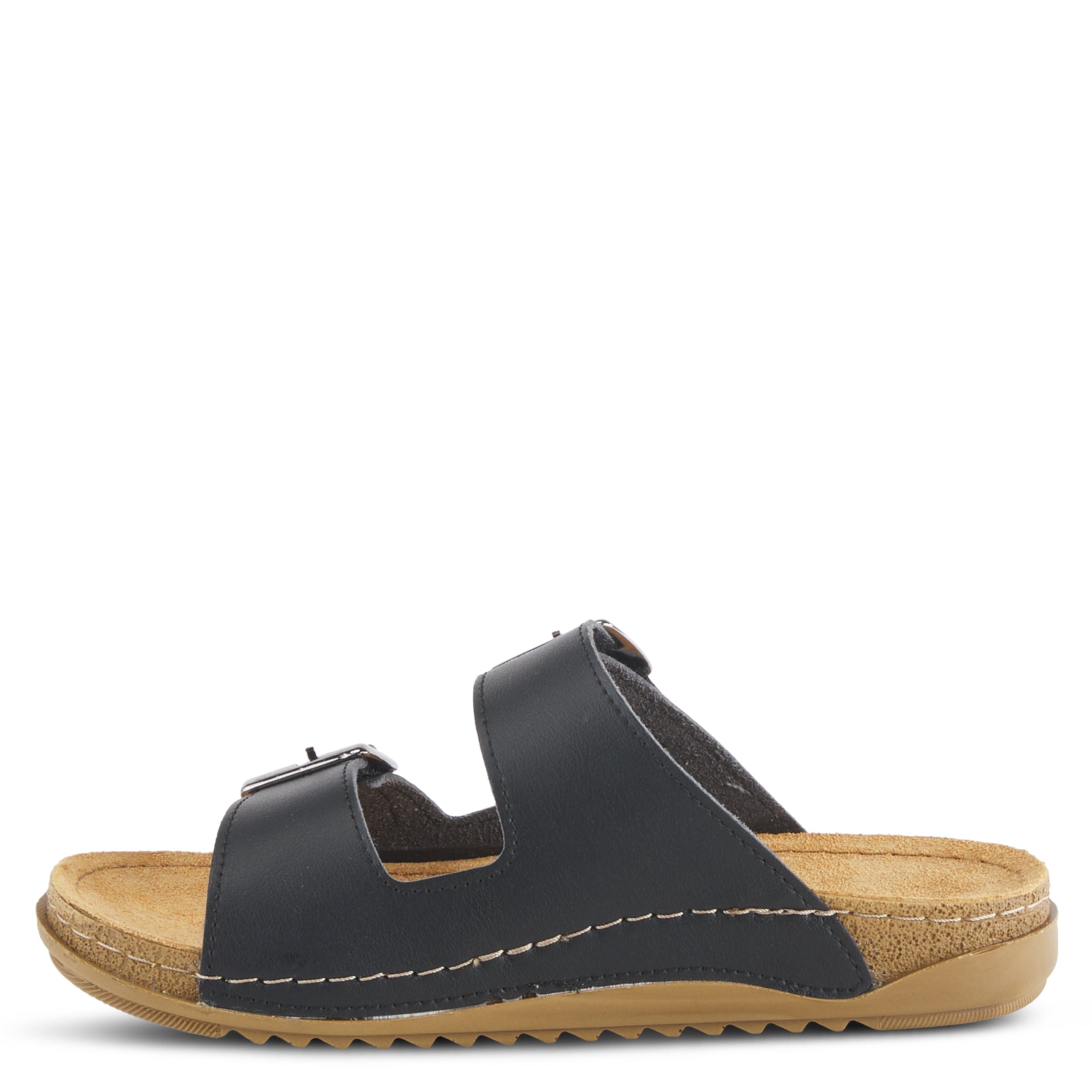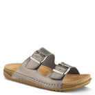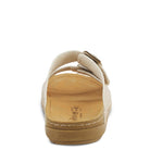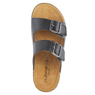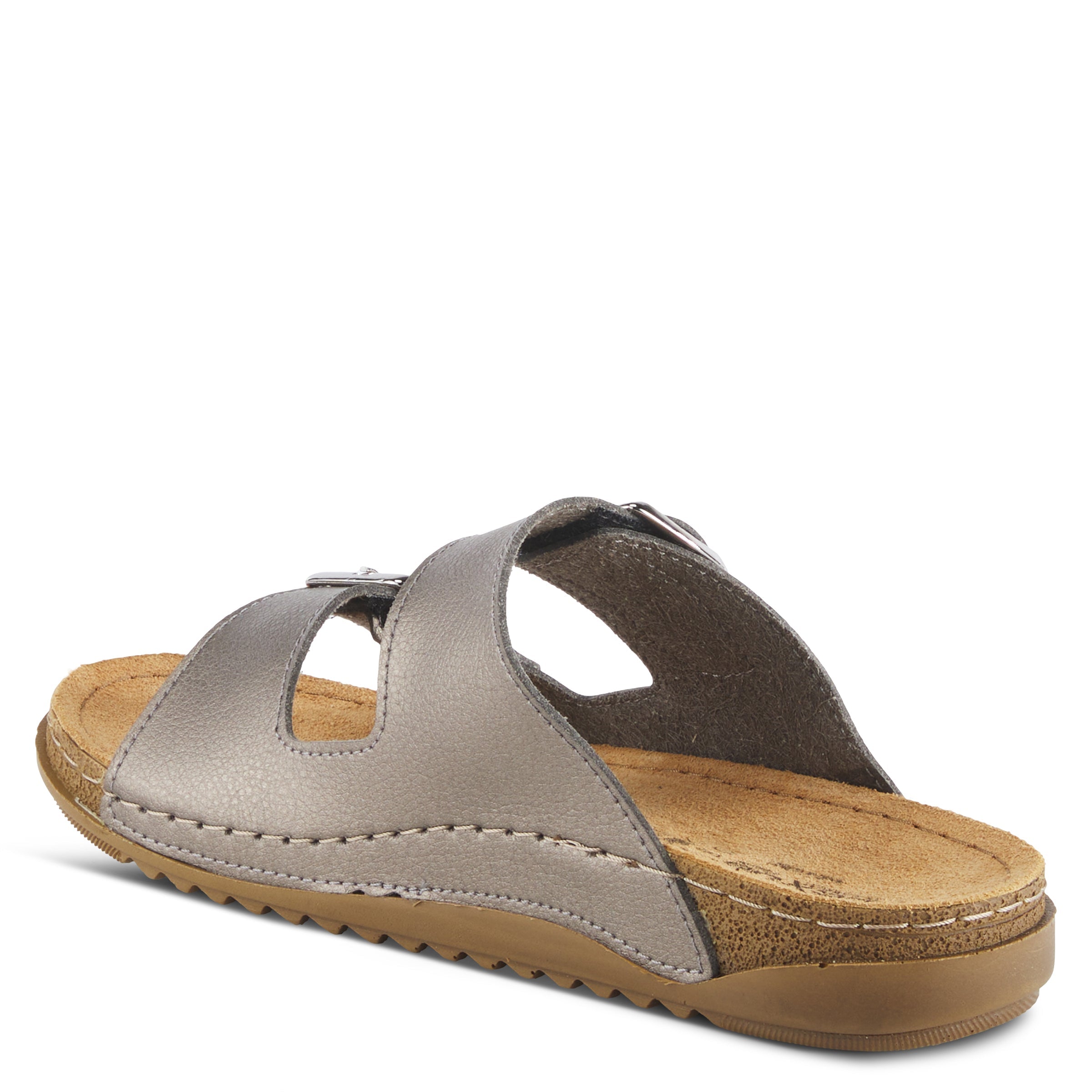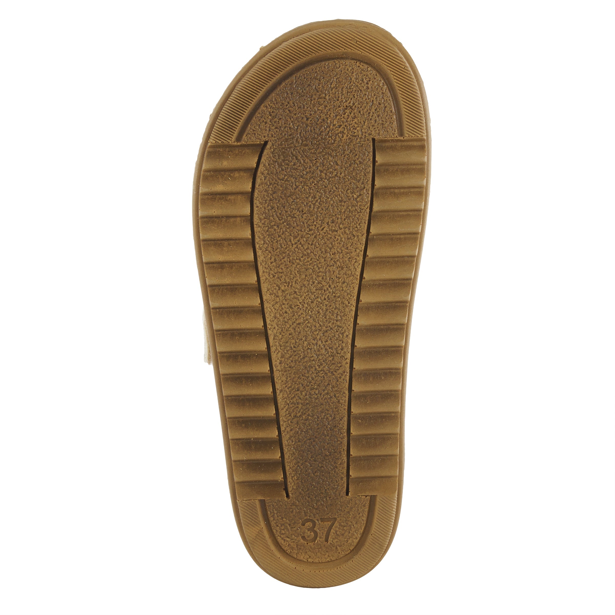 Dulces sandalias deslizantes con correas dobles y hebillas de metal para ajuste en una plantilla cómoda para un uso cómodo durante todo el día.