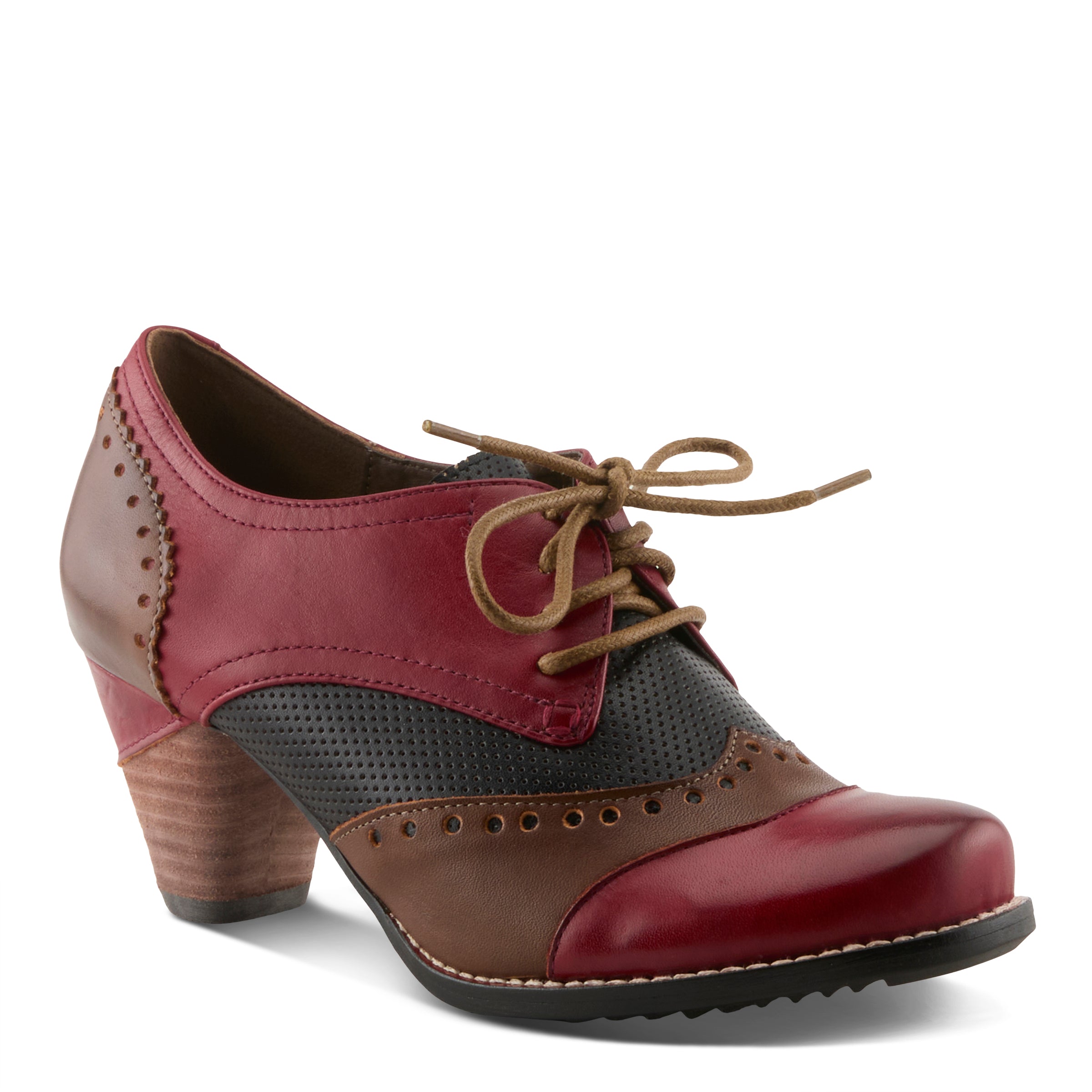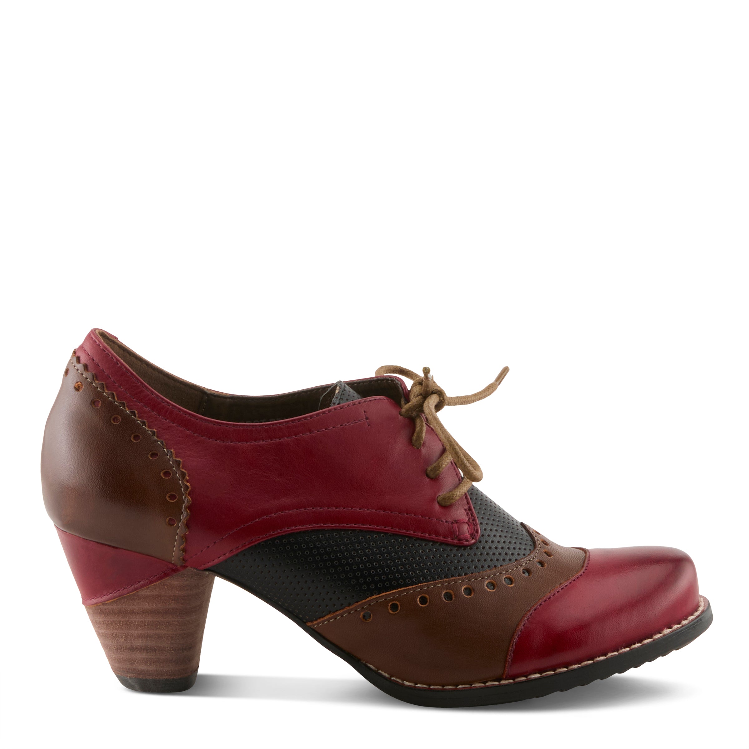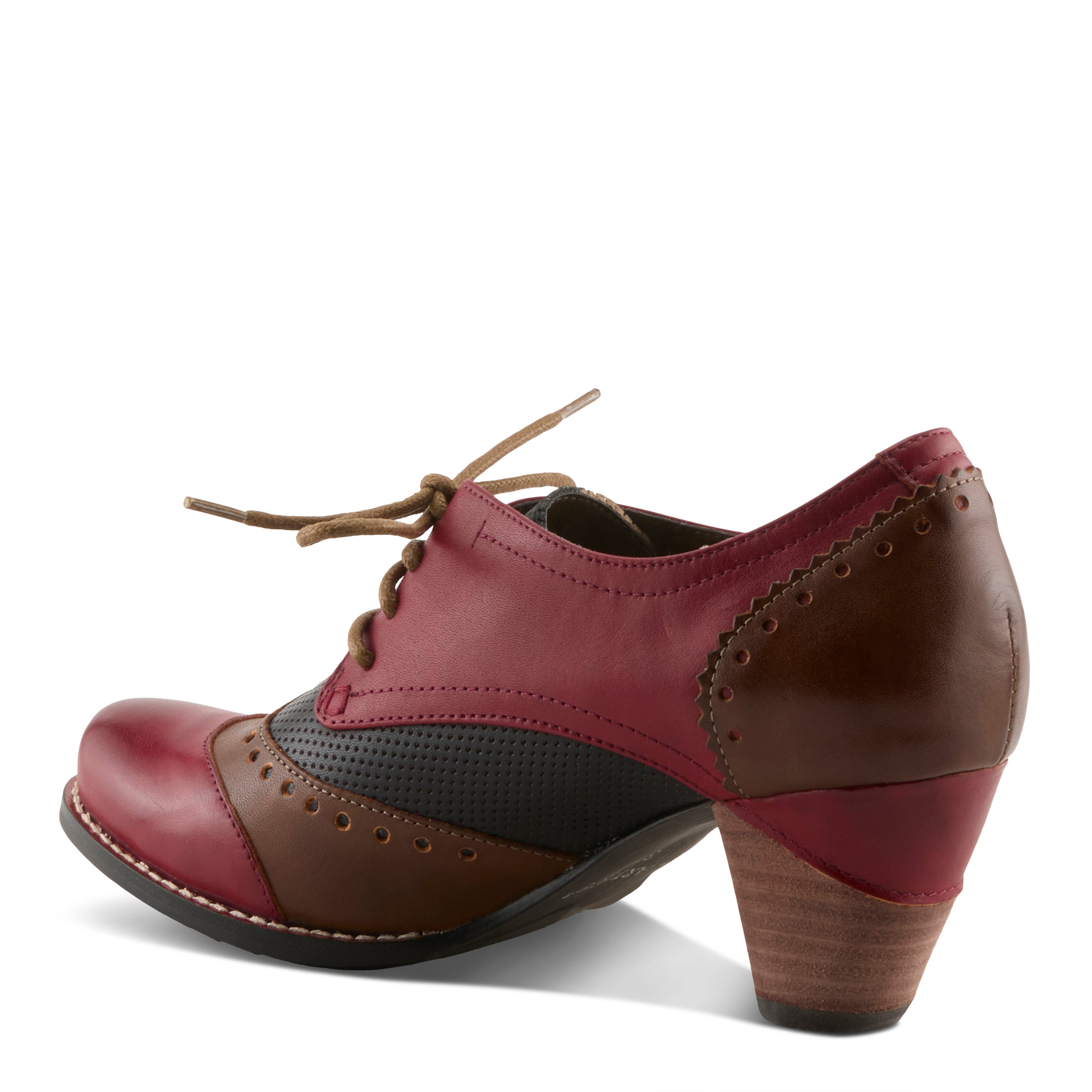 -Puntera redonda, piel perforada pintada a mano, cordones duraderos de algodón encerado, tacón con piezas de piel.