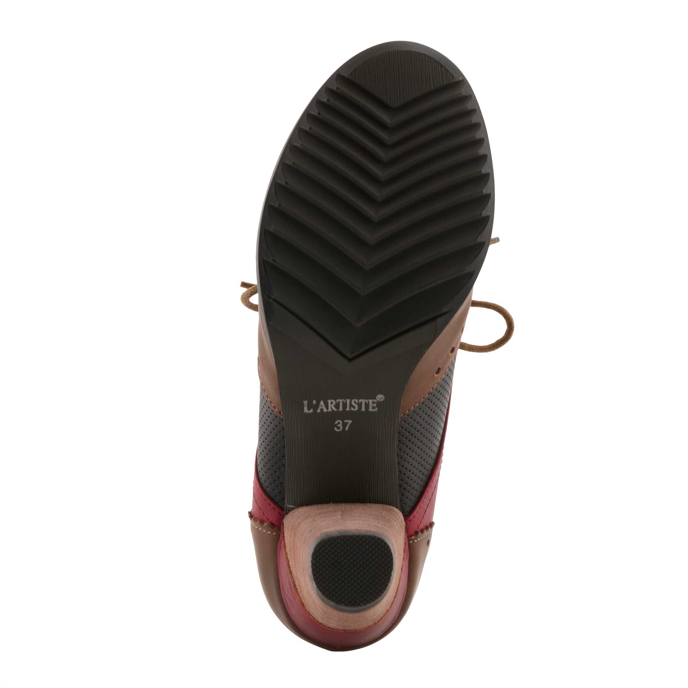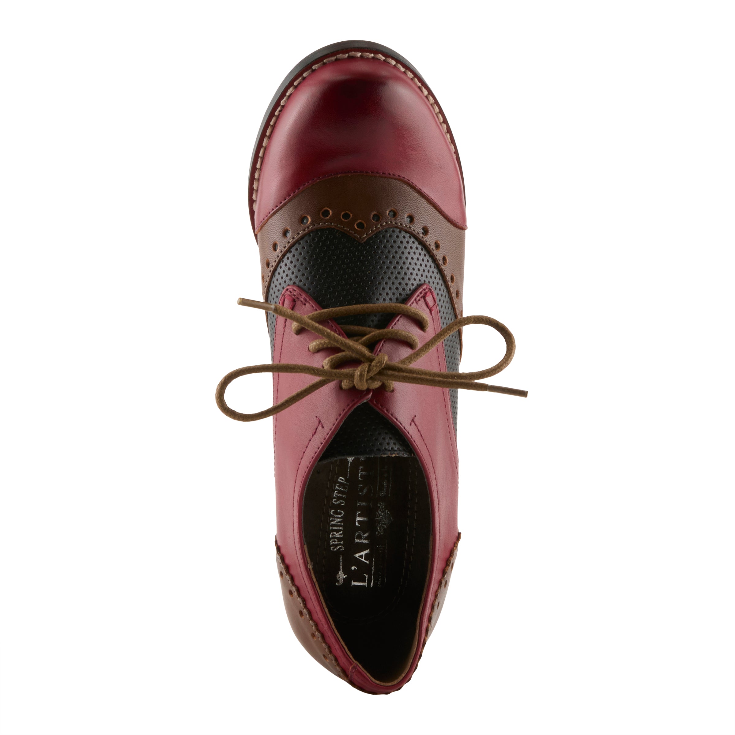 Oxford derby de cuero perforado pintado a mano con bloques de colores con detalles ribeteados en contraste.