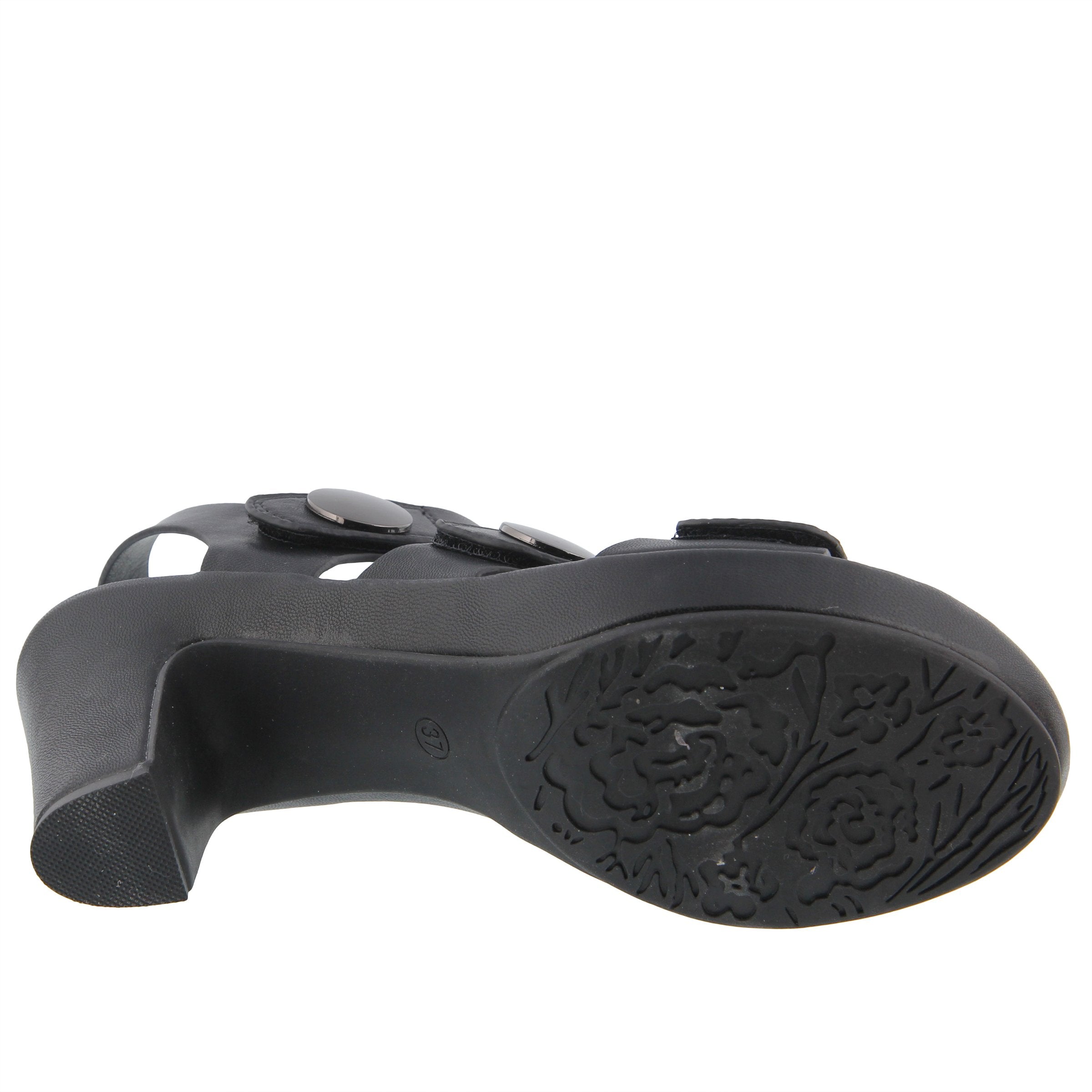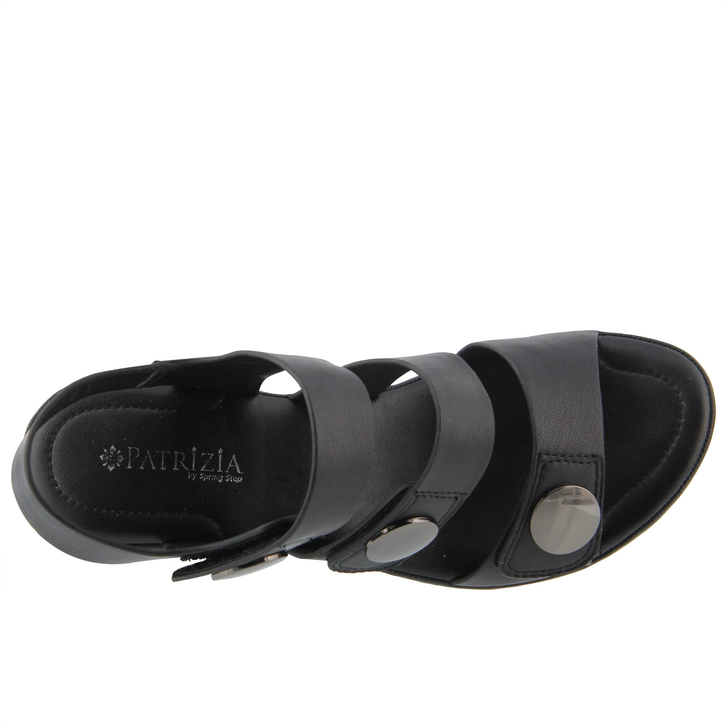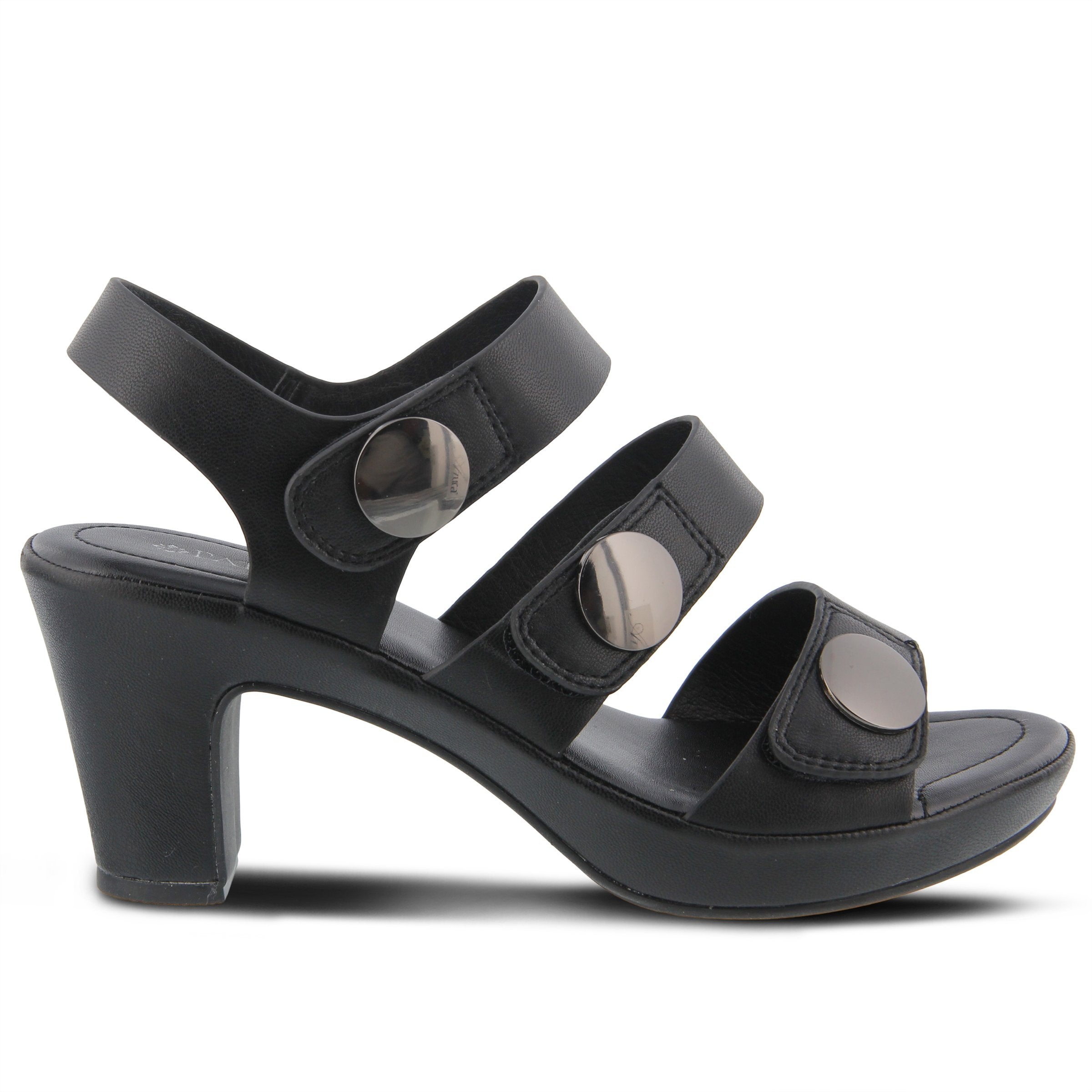 Sandalia de moda con un hermoso diseño de banda ancha y correas de gancho y bucle ajustables con adornos de metal pulido, todo en un tacón cómodo inspirado en la sofisticación con una plataforma.