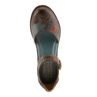 Step into effortless artistry with this beautifully crafted leather Mary Jane. Featuring a richly detailed floral design with perforated accents, this shoe blends modern inspiration with timeless charm. The adjustable hook-and-loop strap, adorned with an antique-style metal embellishment, ensures a secure and stylish fit. A faux stacked low heel provides just the right amount of lift, while the cushioned insole keeps you comfortable all day. Perfect for adding a chic, artsy touch to any outfit, this shoe is a must-have for those who appreciate unique craftsmanship and wearable elegance.