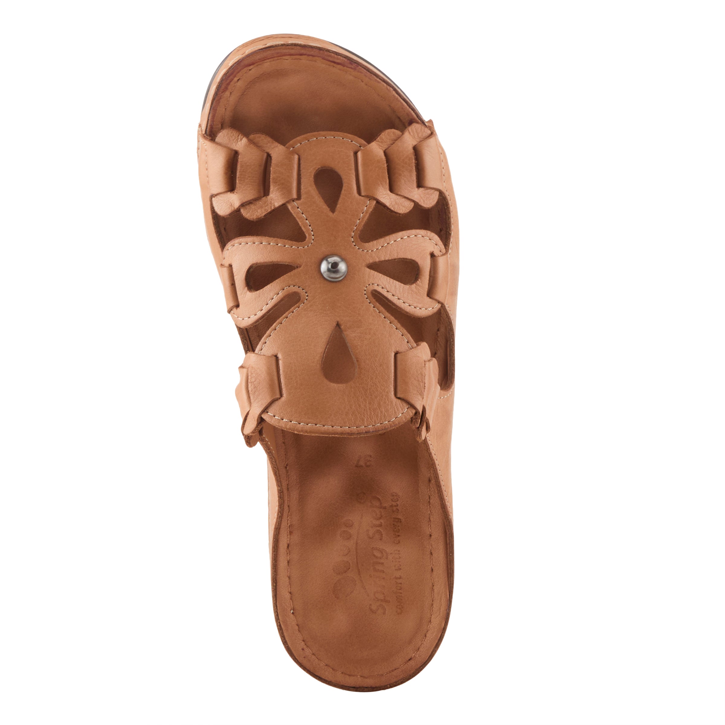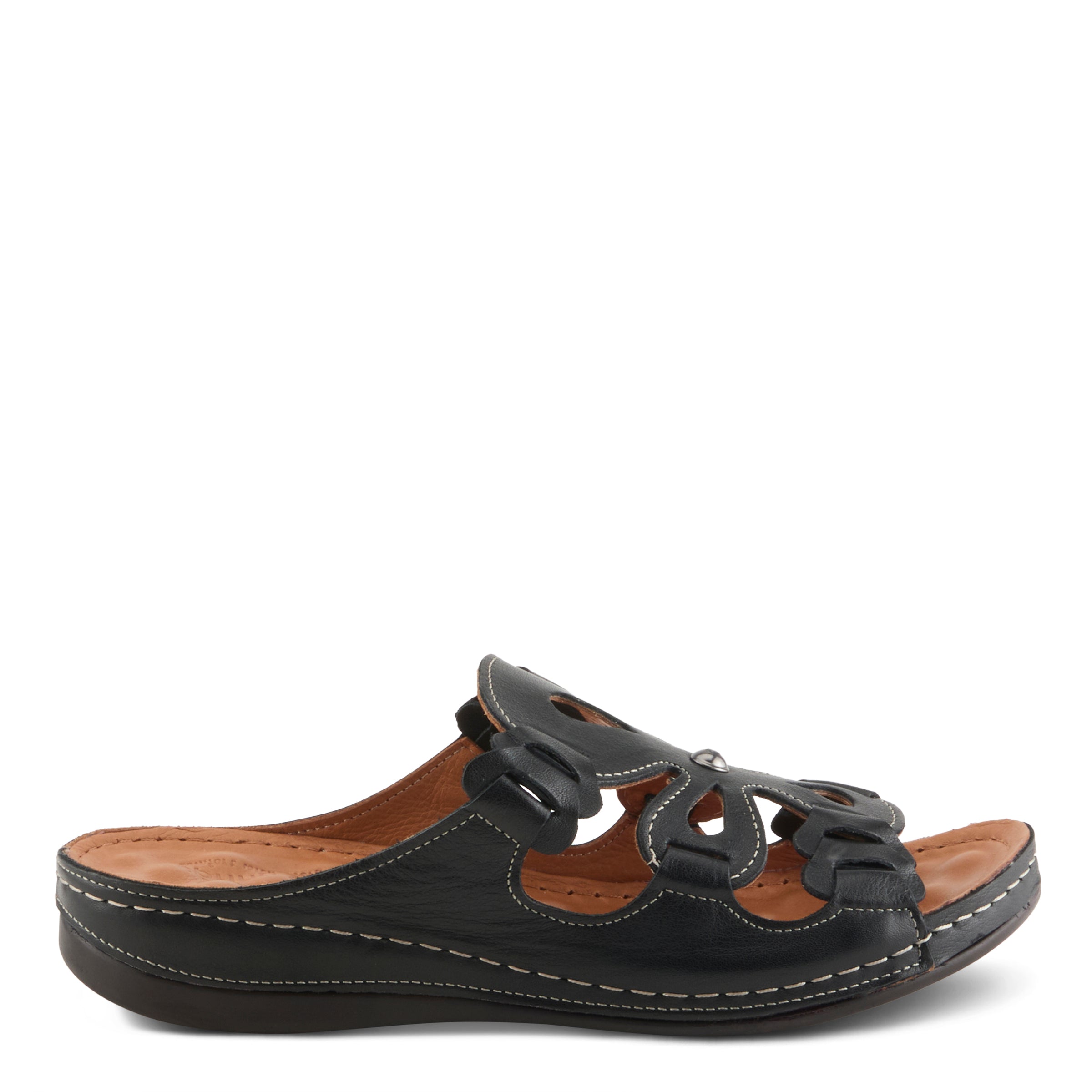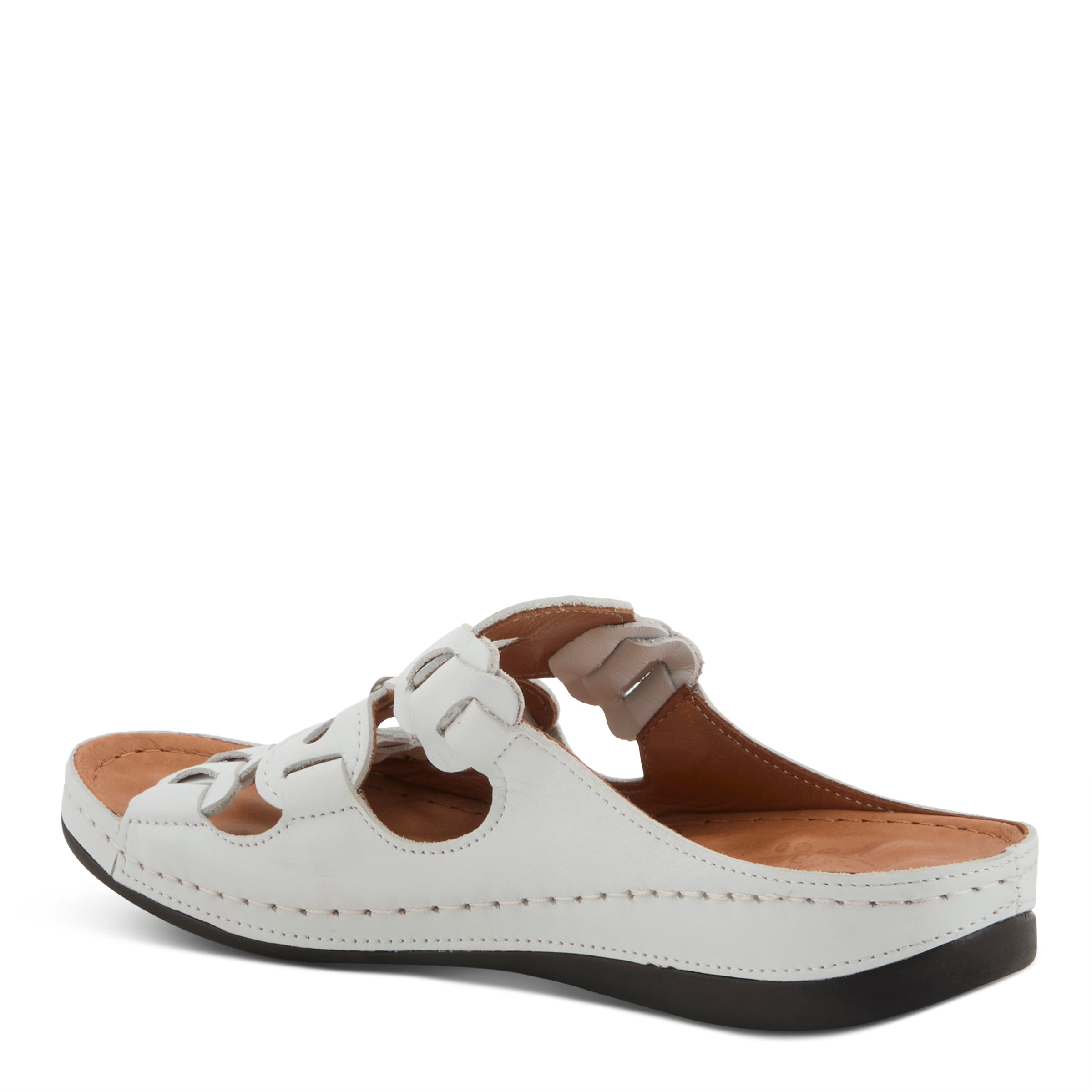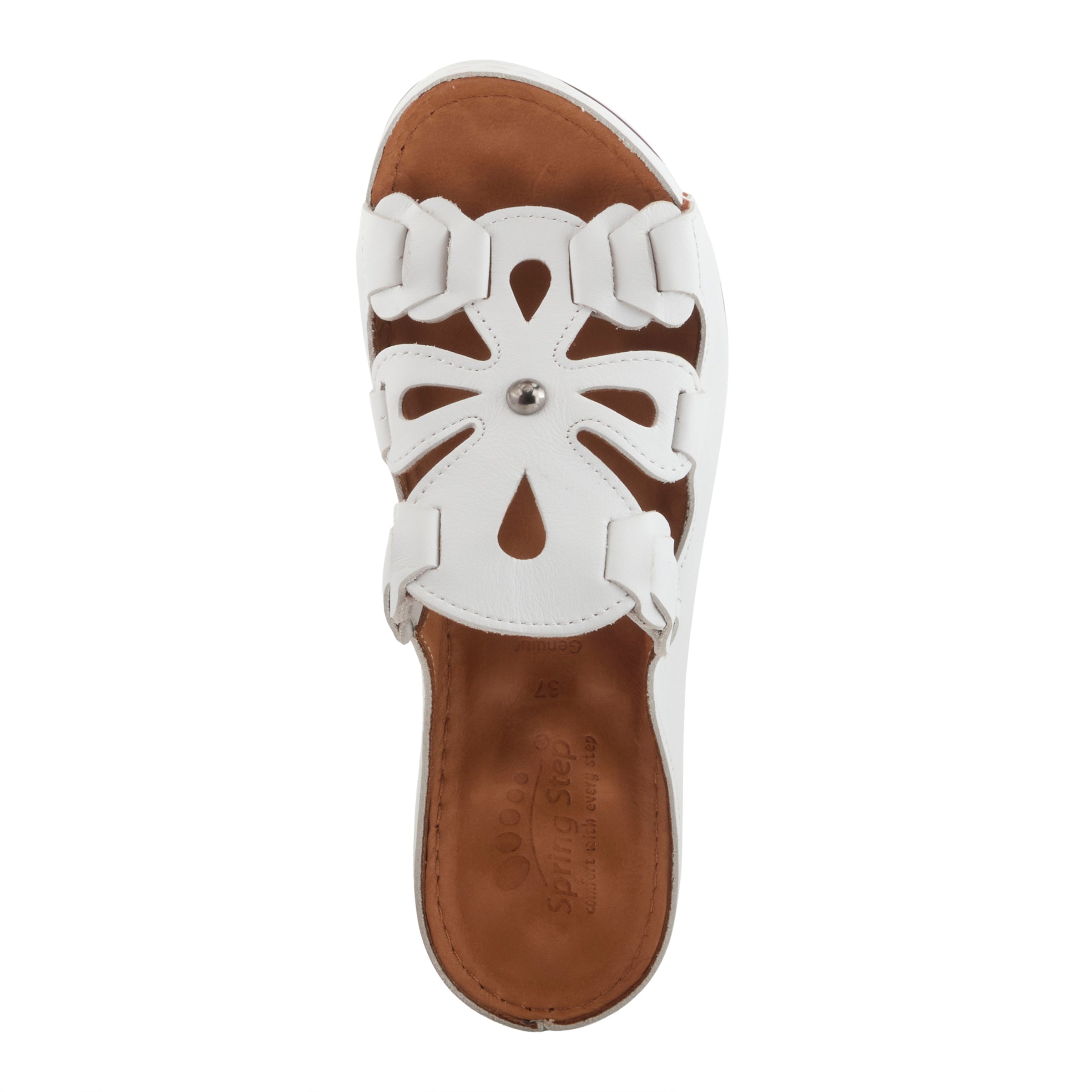 Step into style with these leather slip-on sandal, showcasing a charming flower cut-out design on the upper and complemented contrasting stitching. Perfect for those seeking a blend of elegance and comfort in their footwear choice.