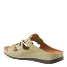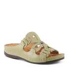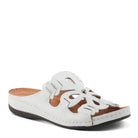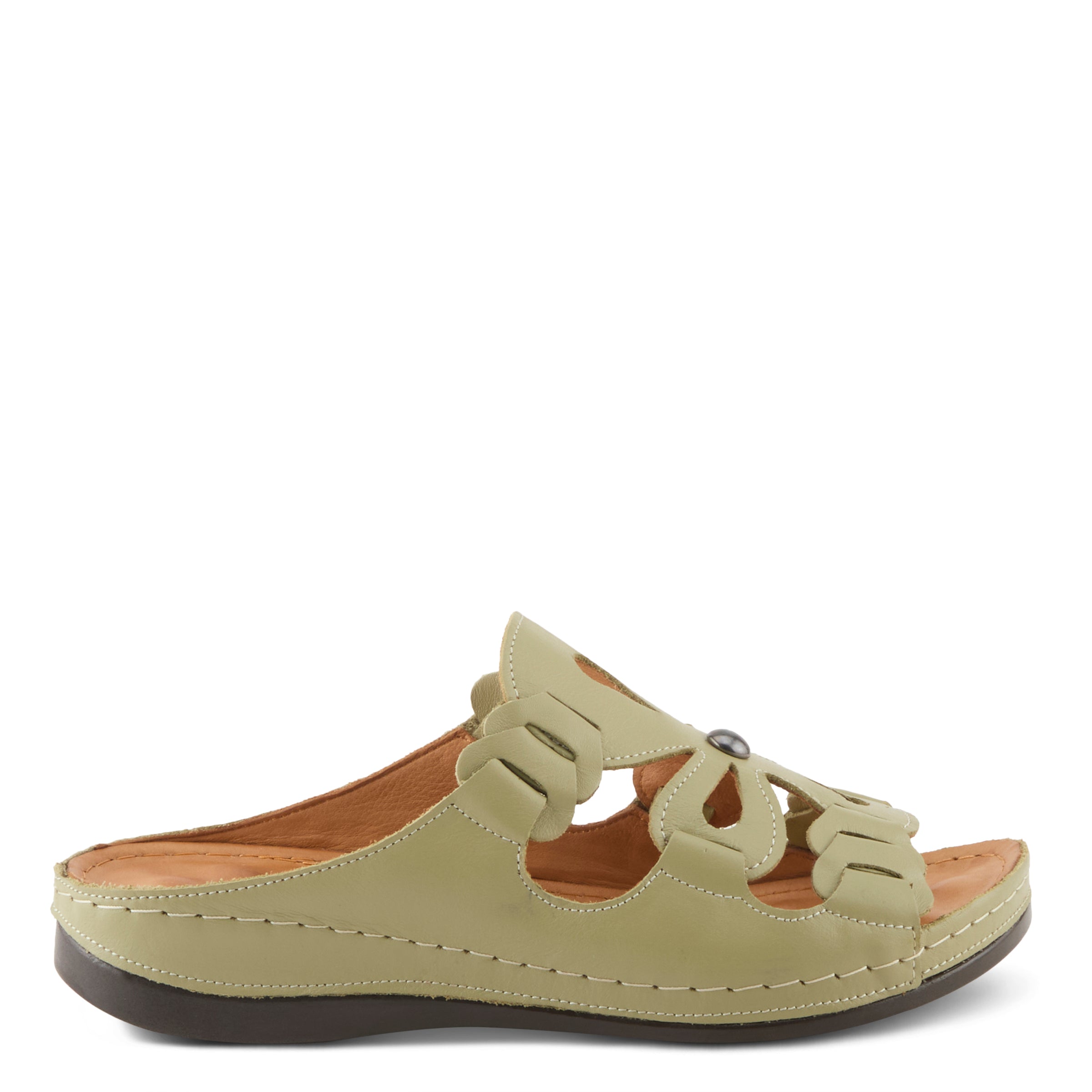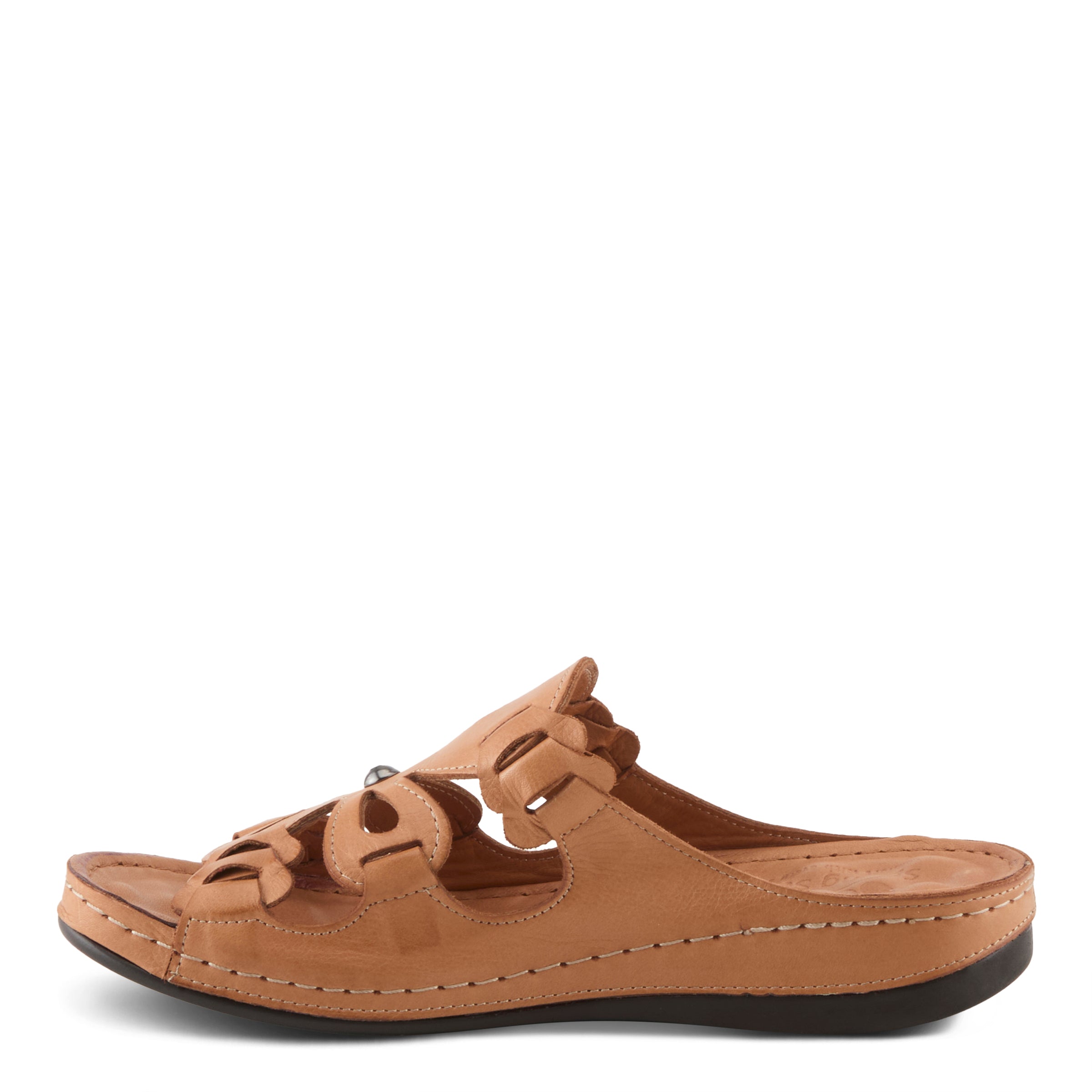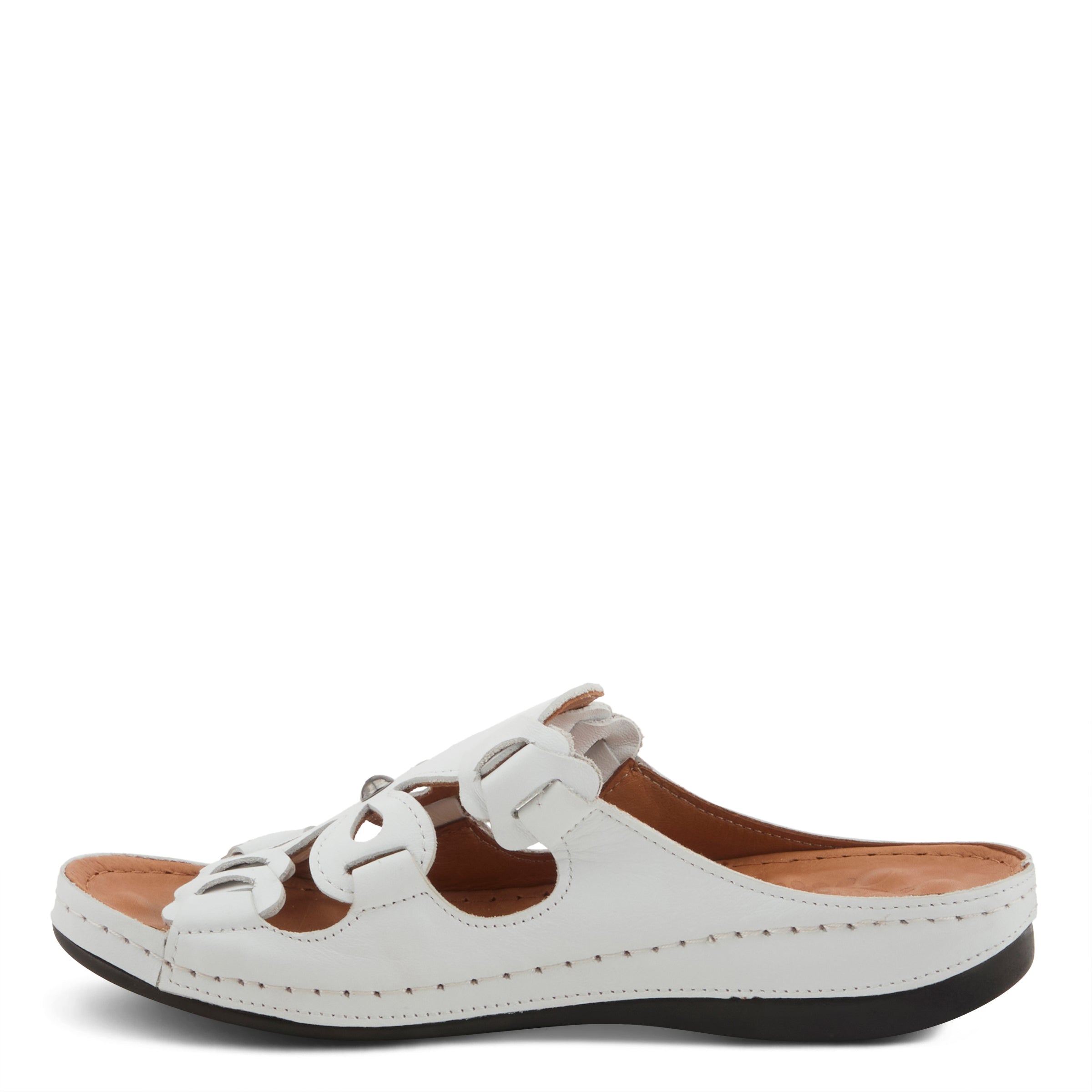 Step into style with these leather slip-on sandal, showcasing a charming flower cut-out design on the upper and complemented contrasting stitching. Perfect for those seeking a blend of elegance and comfort in their footwear choice.