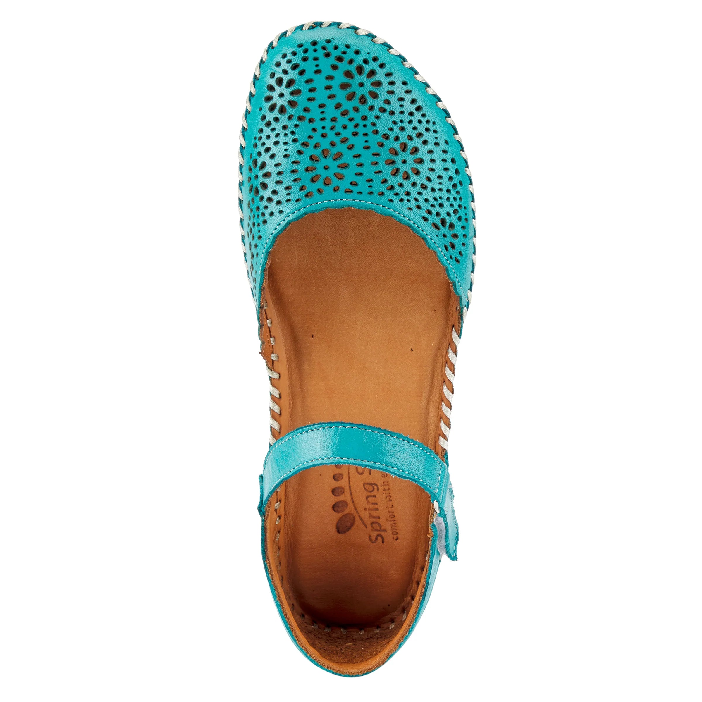 Bonita cuña peep toe con una correa de tobillo ajustable con velcro para mantener el pie en su lugar de forma segura en una plantilla moldeada, cómoda y flexible. Además de una parte superior festoneada, los recortes ayudan a aumentar la transpirabilidad y la flexibilidad.