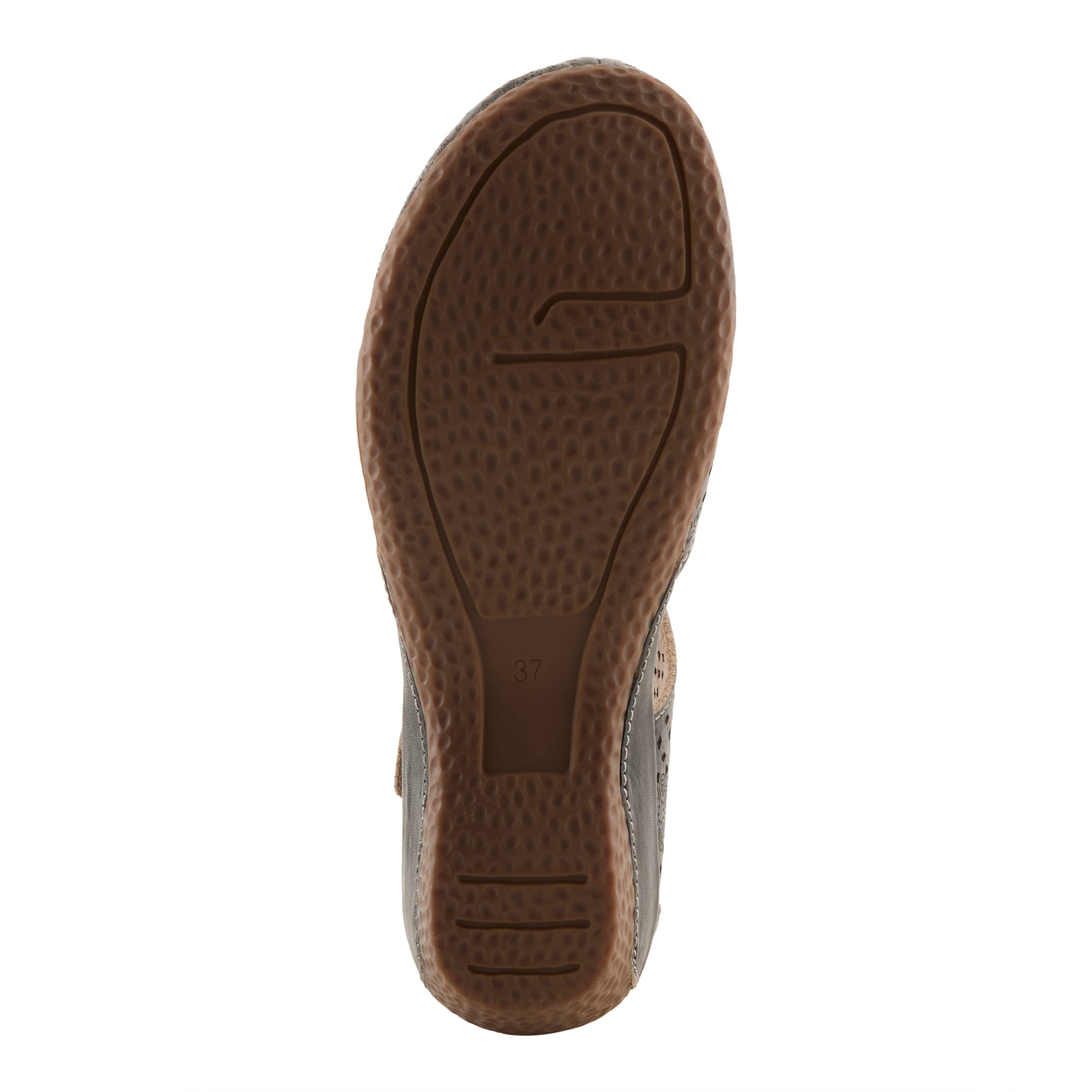 No hay sandalias aburridas aquí: la Americana agrega un toque único a su sandalia con cuña todos los días. Esta hebilla decorativa floral en relieve complementa el zapato, así como el patrón floral perforado y los recortes.